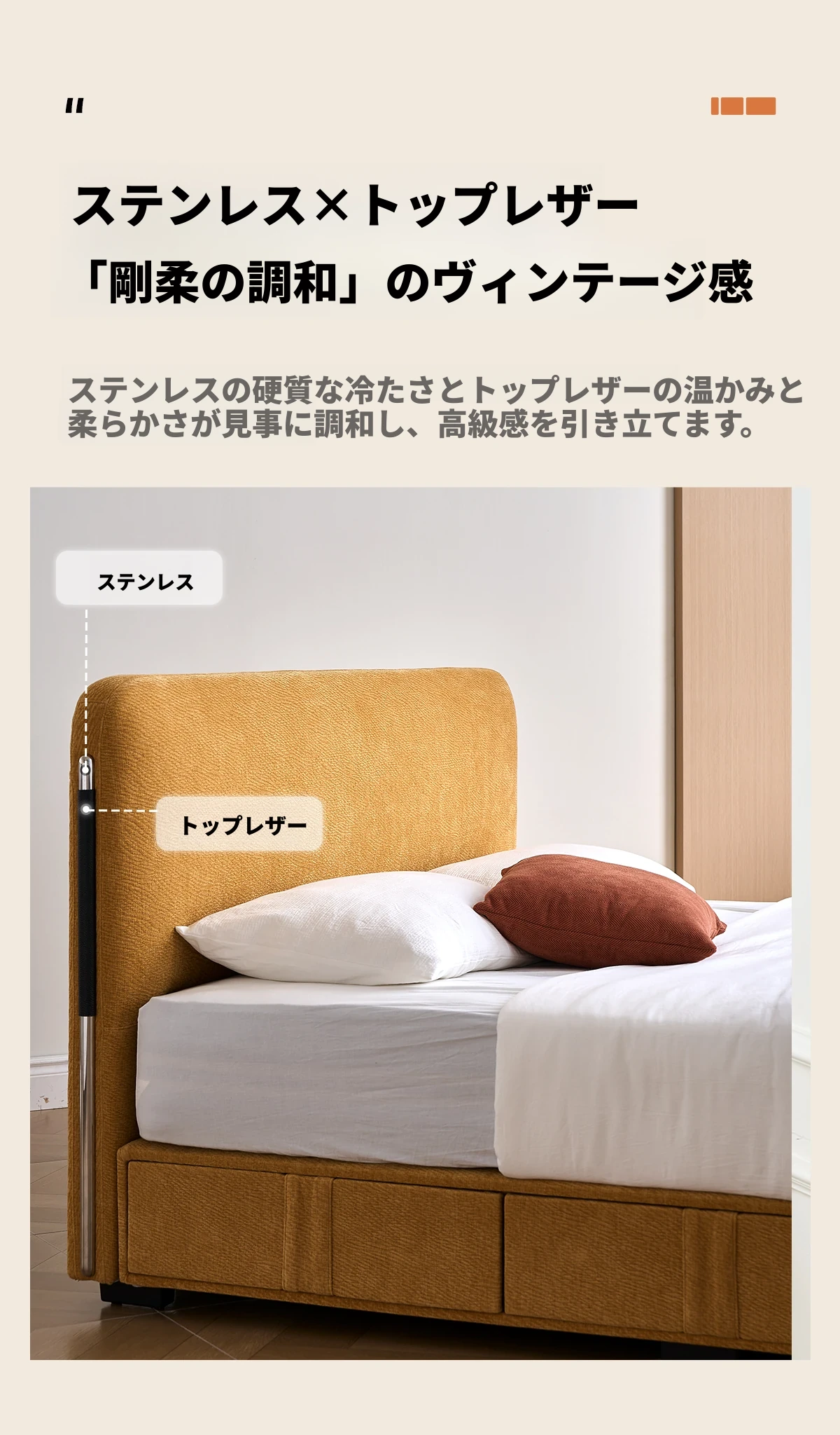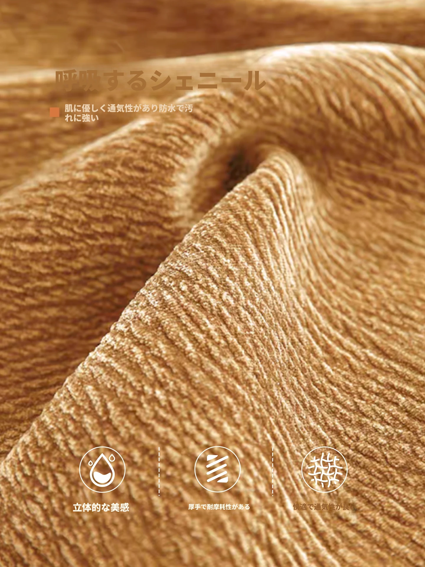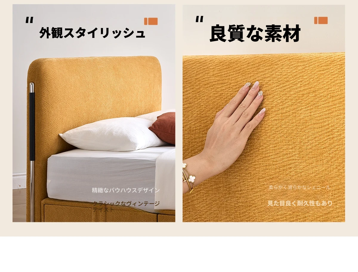 フラッグシップ版:シェニール布ベッド【厚手ブナ木製スラットフレーム】