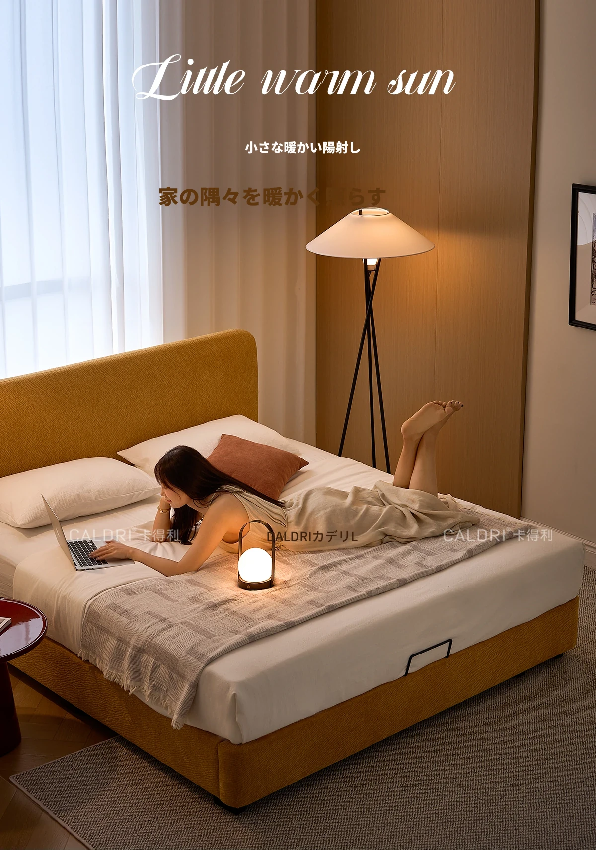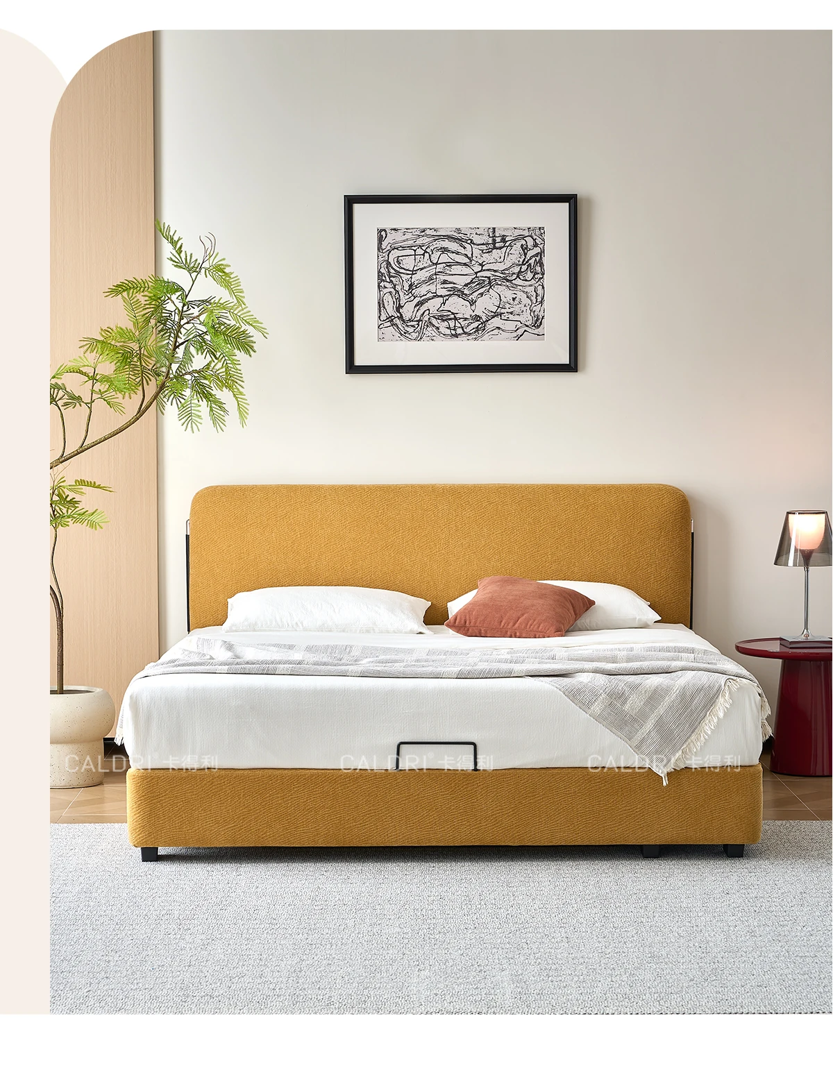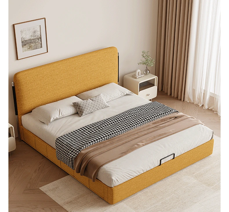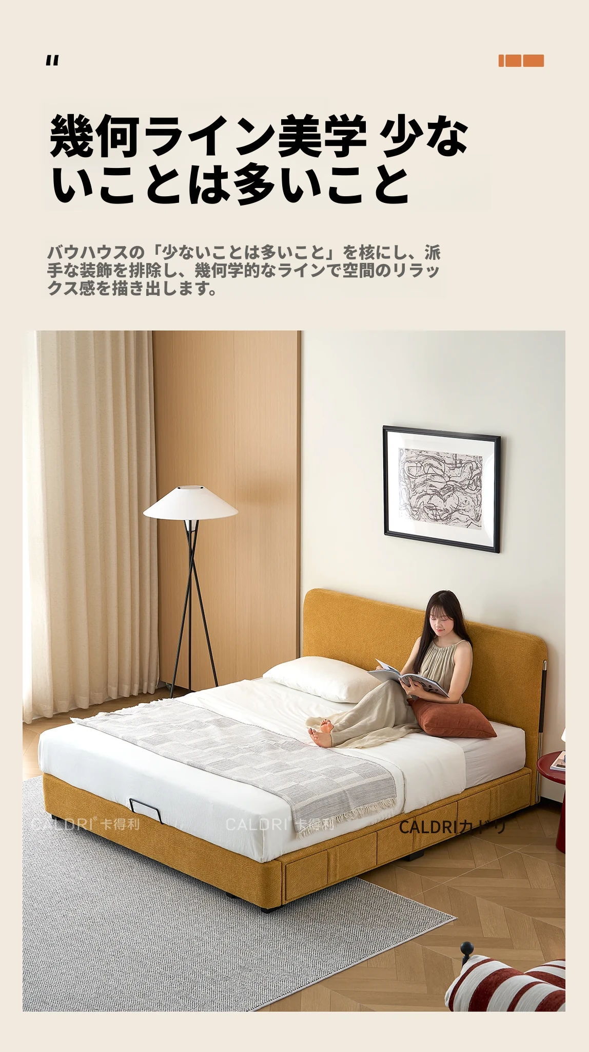 カデリ暖かいメープルのヴィンテージスタイル、超薄型ヘッドボード全木製ベッド。主寝室にぴったりのダブルサイズ、シェニールファブリック仕様!小型住宅にも最適です。