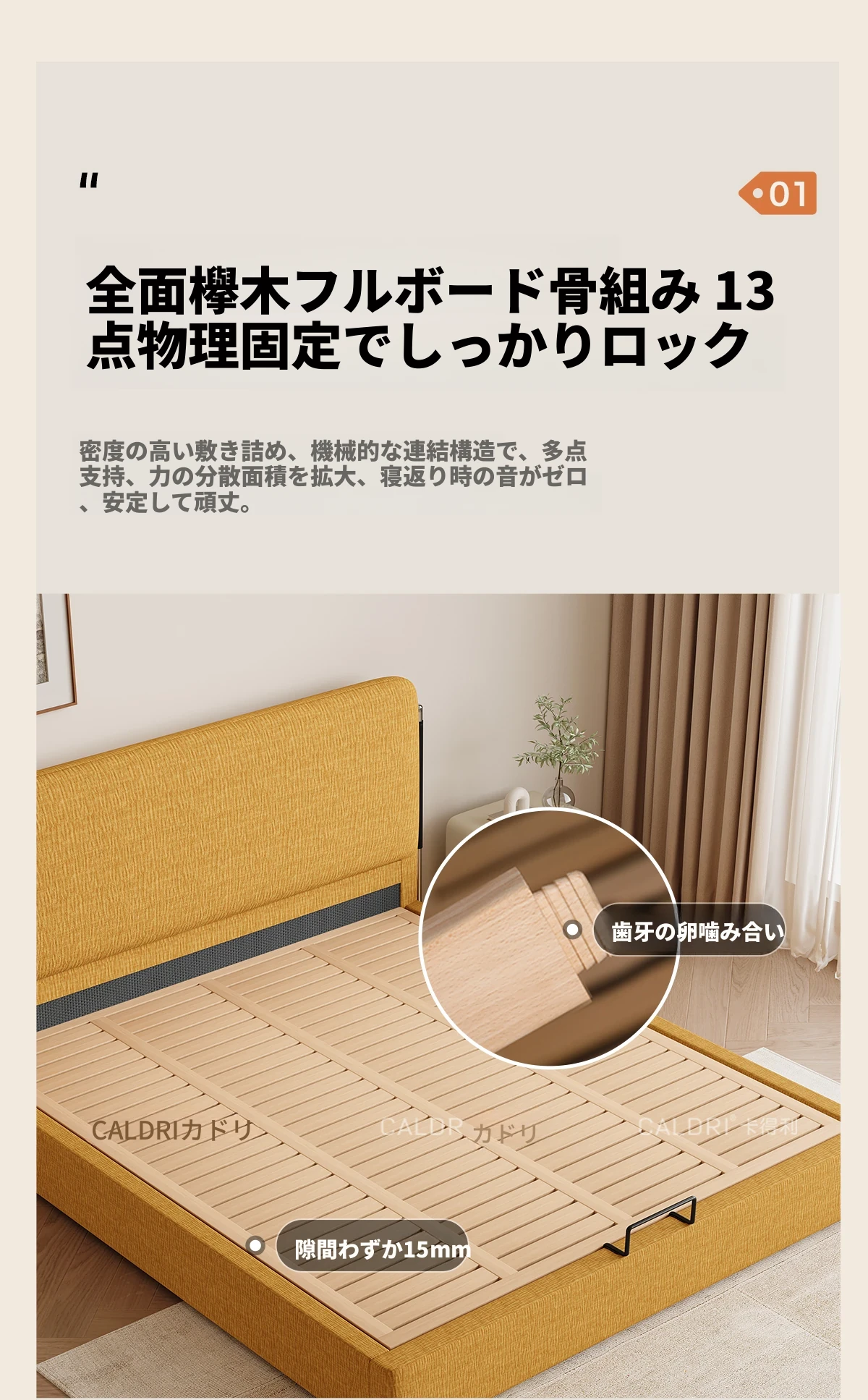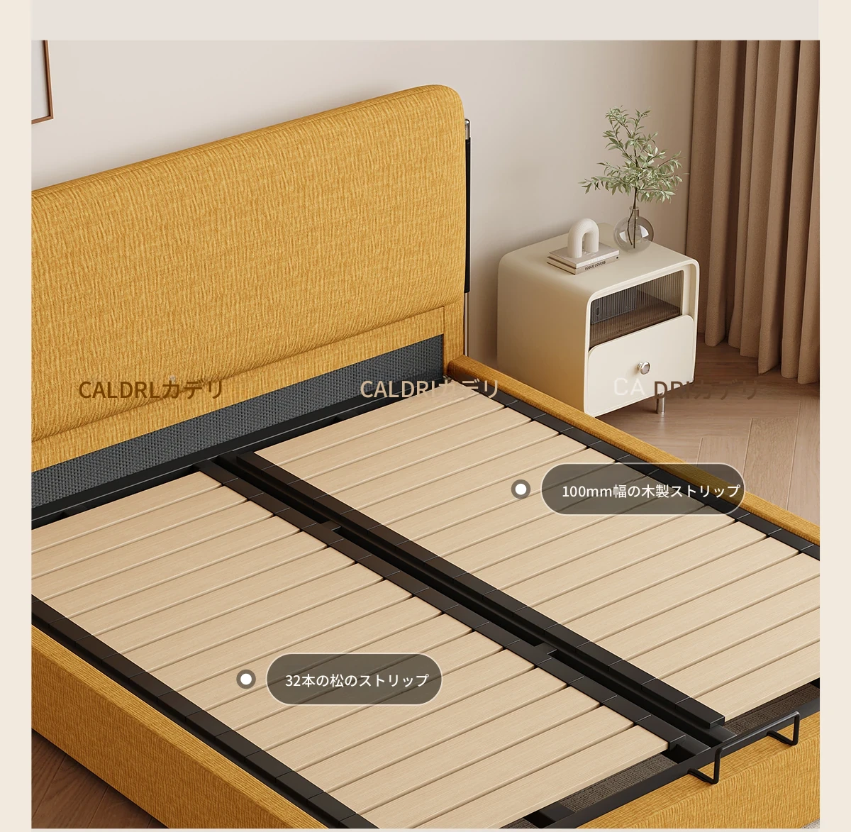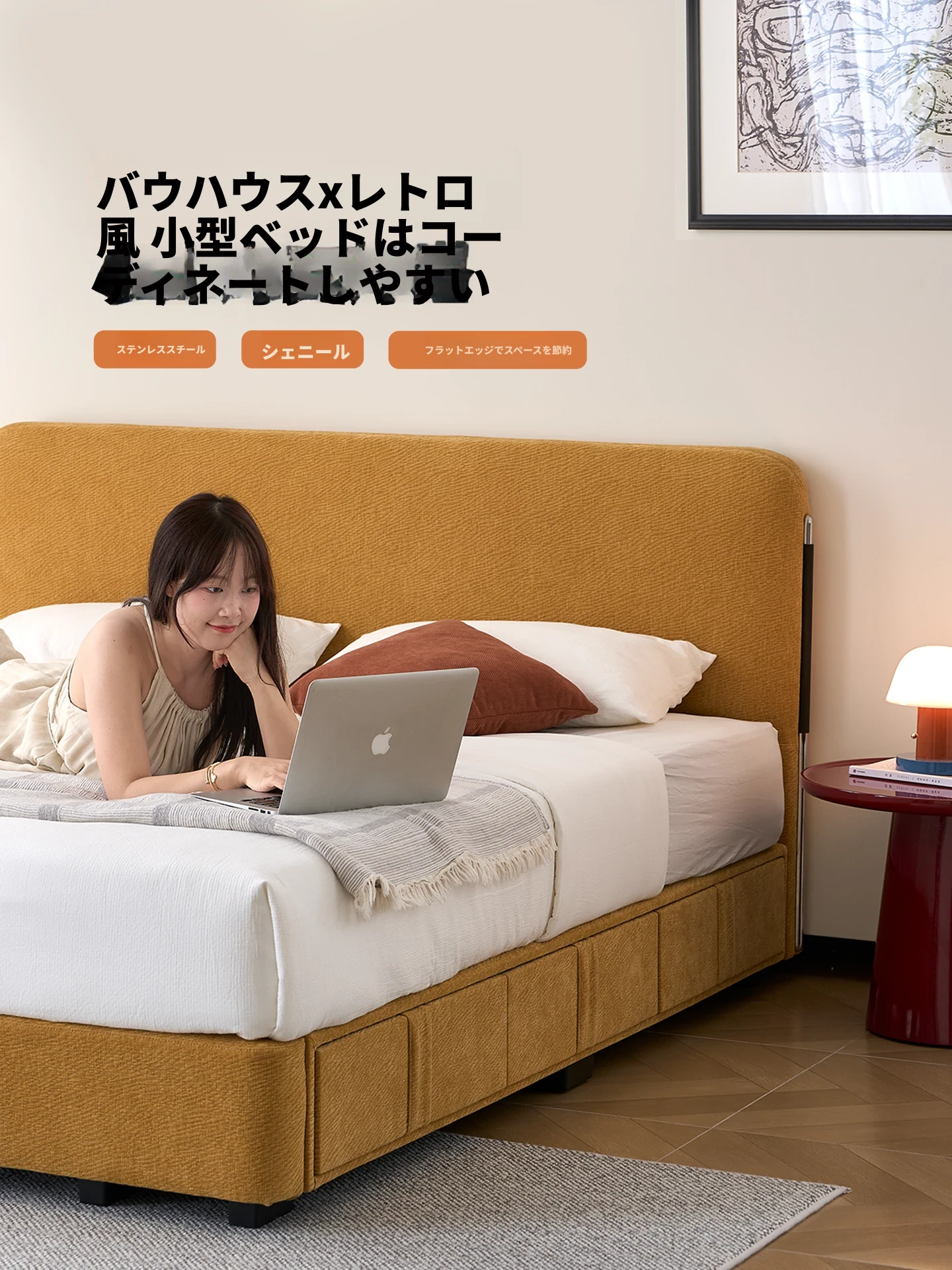 フラッグシップ版:シェニール布ベッド【厚手ブナ木製スラットフレーム】+環境保護脊椎黄麻マットレス