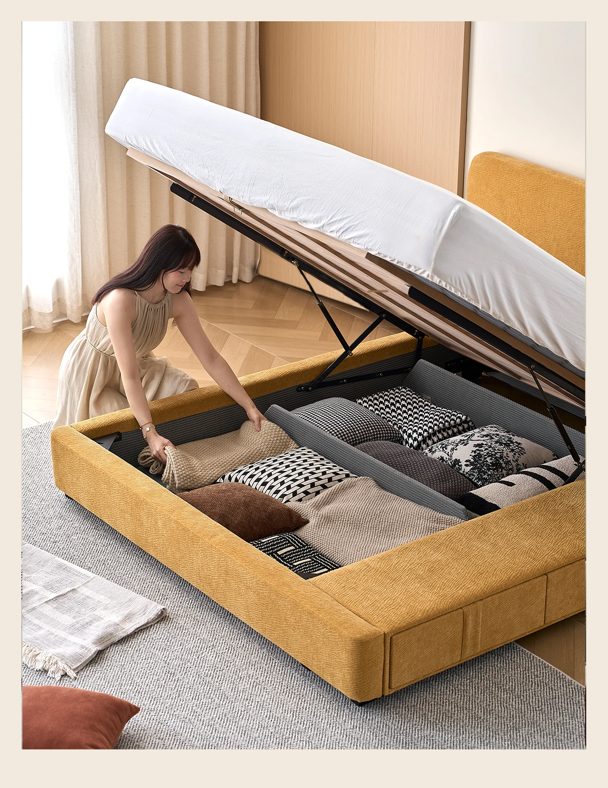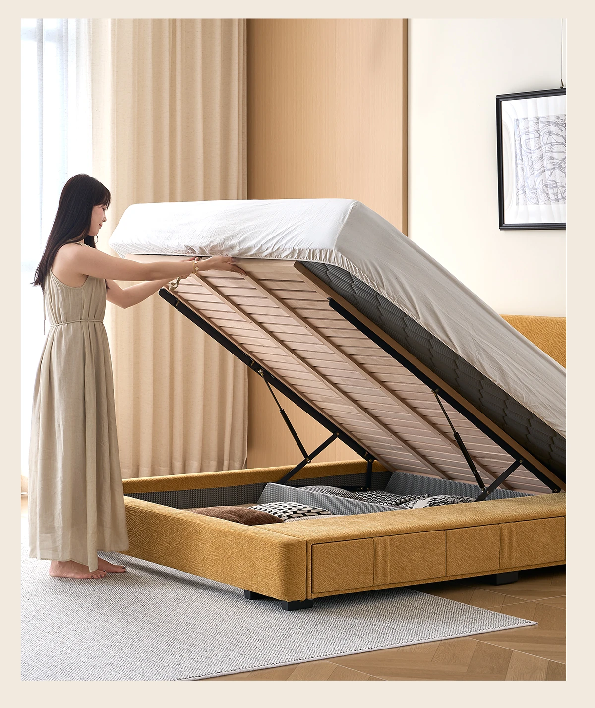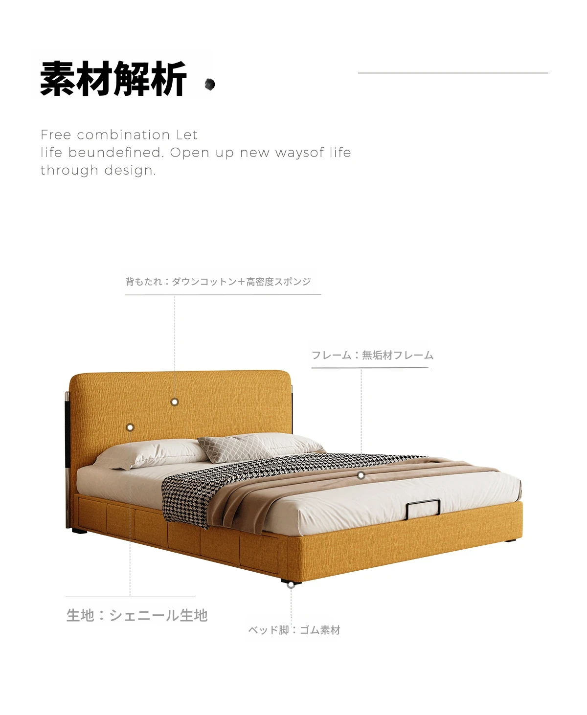 フラッグシップ版:シェニール布ベッド【厚手ブナ木製スラットフレーム】+環境保護脊椎黄麻マットレス