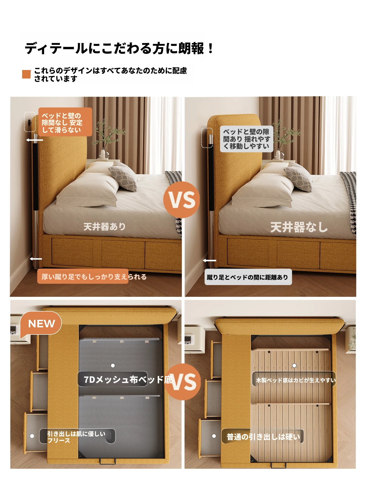 フラッグシップ版:シェニール布ベッド【厚手ブナ木製スラットフレーム】+七つ星独立スプリングメモリーフォームマットレス