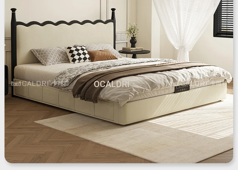 Kadeli Ripple Bed - French Cream Vintage Style Upholstered Double Bed with Solid Wood Storage for Small Spaces