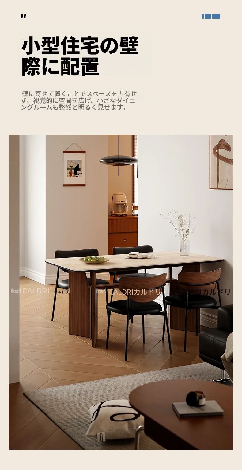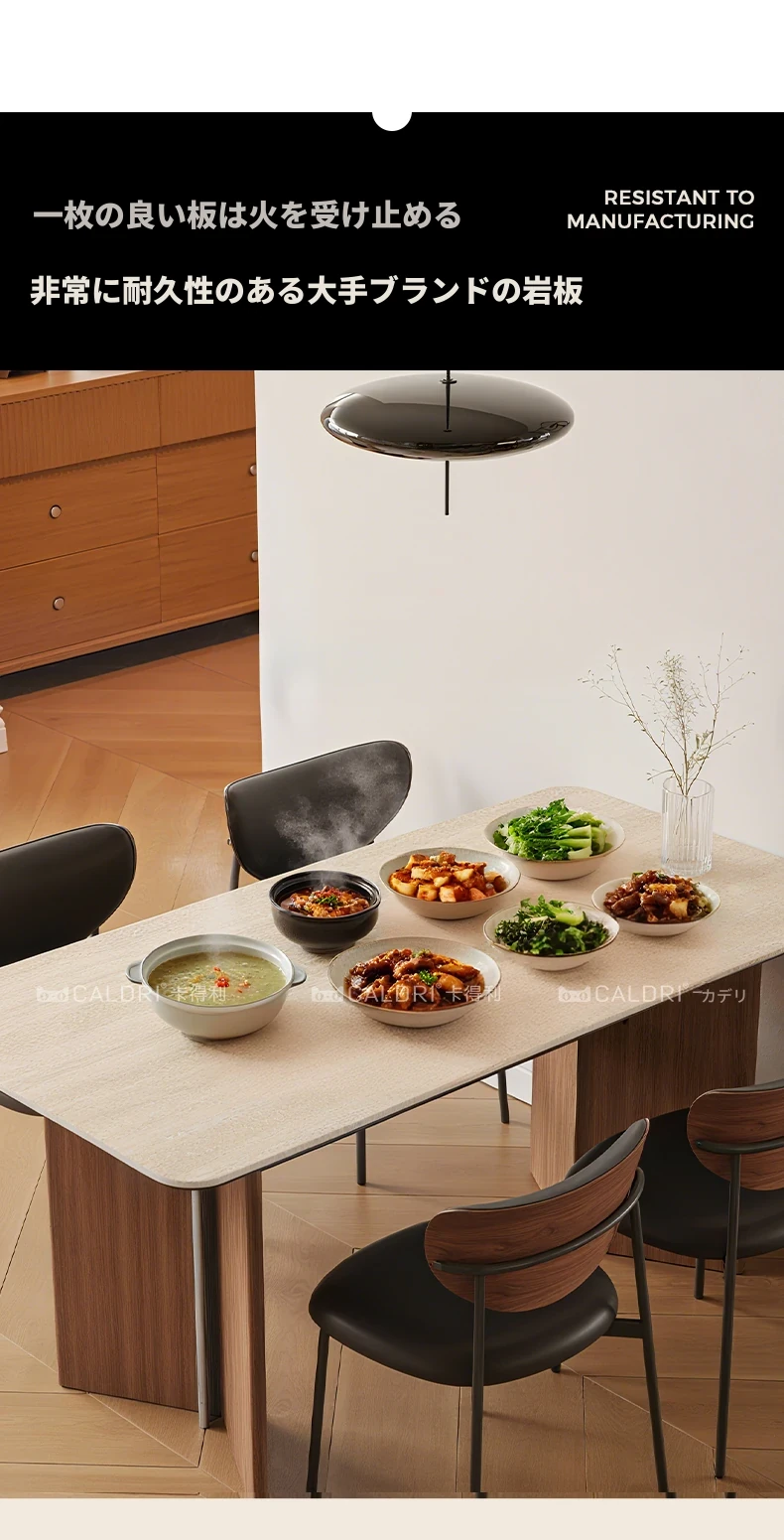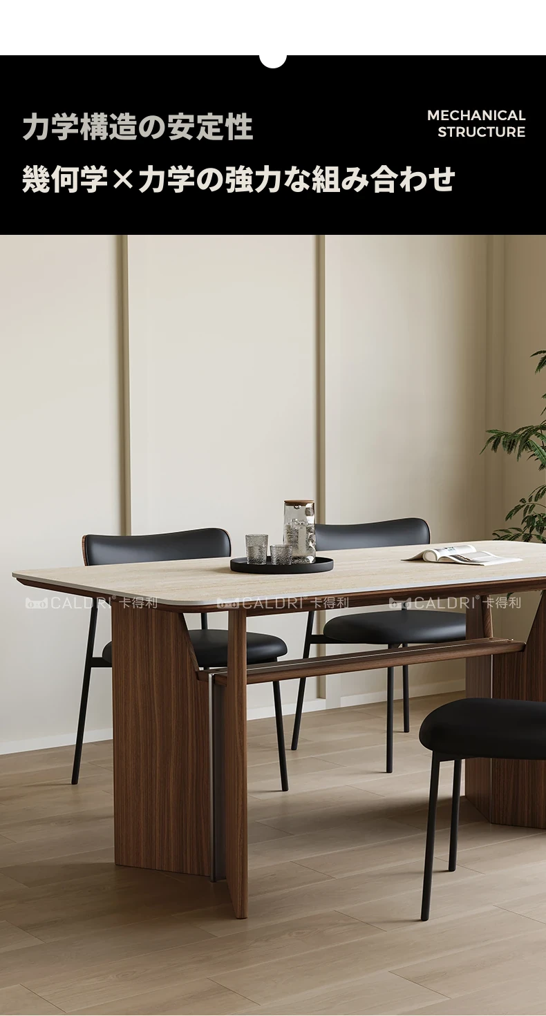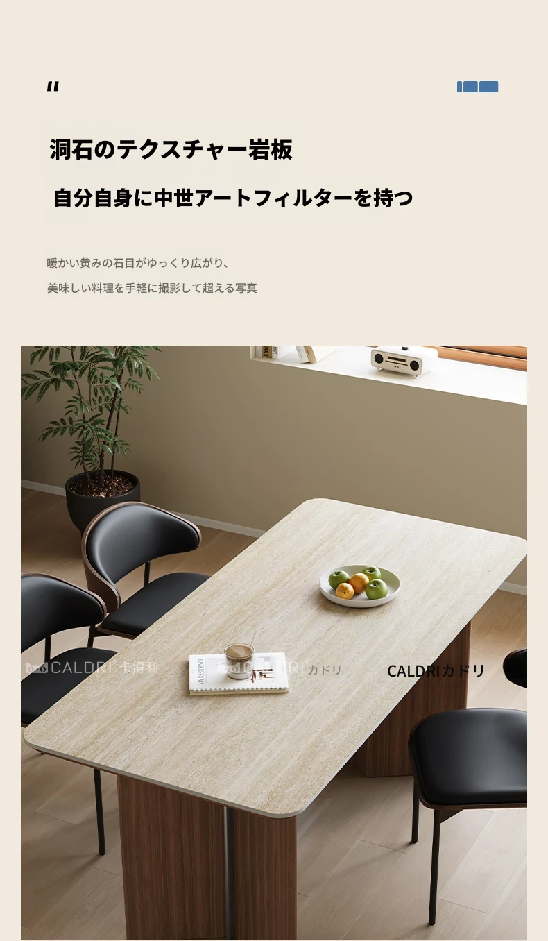 カデリ旧叙洞石長テーブル|アンティーク風の高級無垢材脚|シンプルでスタイリッシュな岩板ダイニングテーブル&チェアセット|お家のインテリアにぴったり!