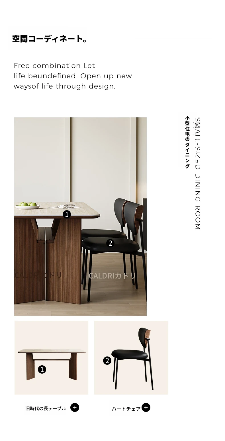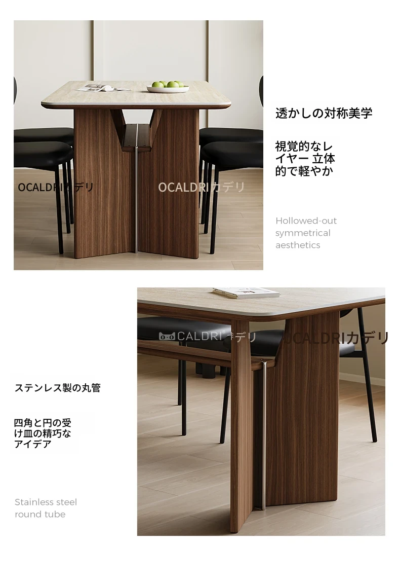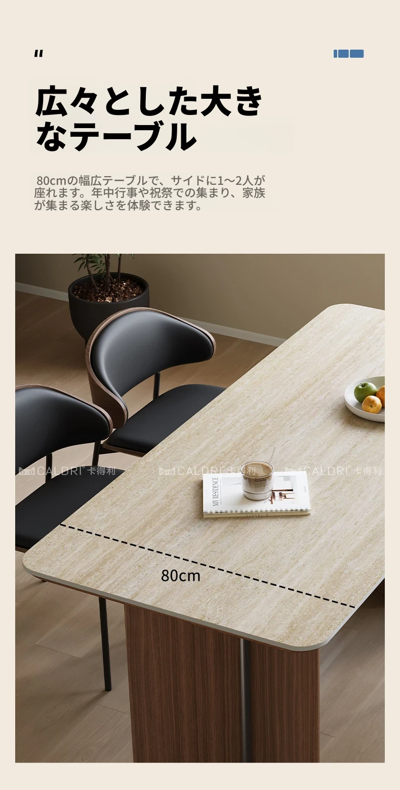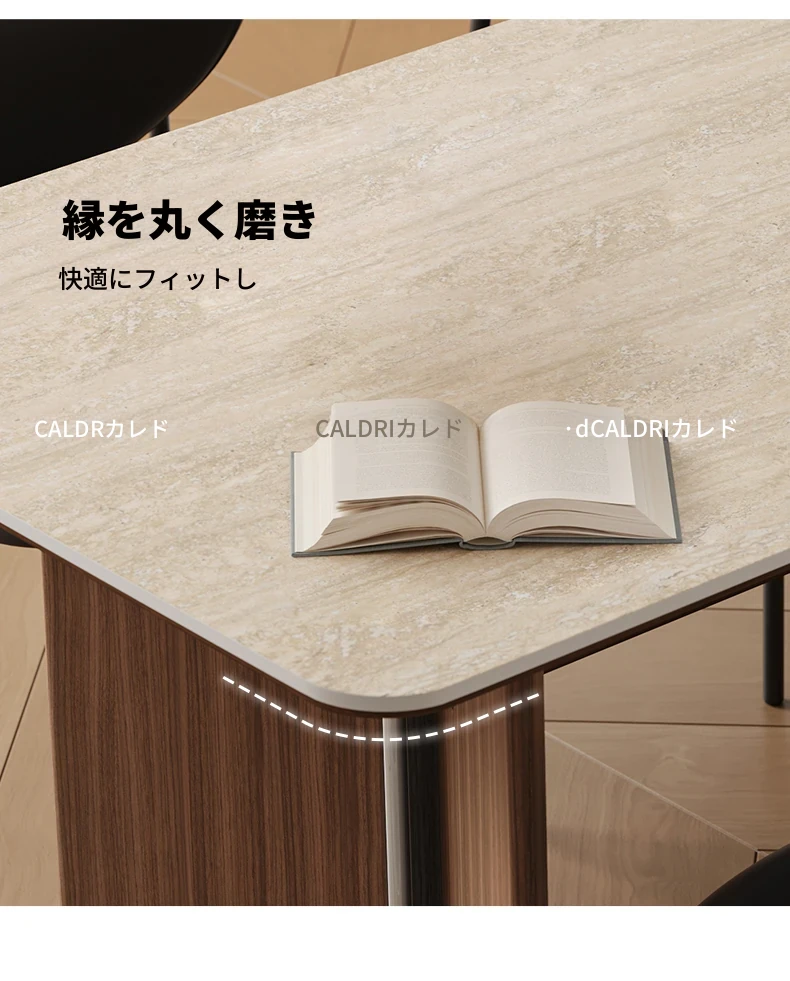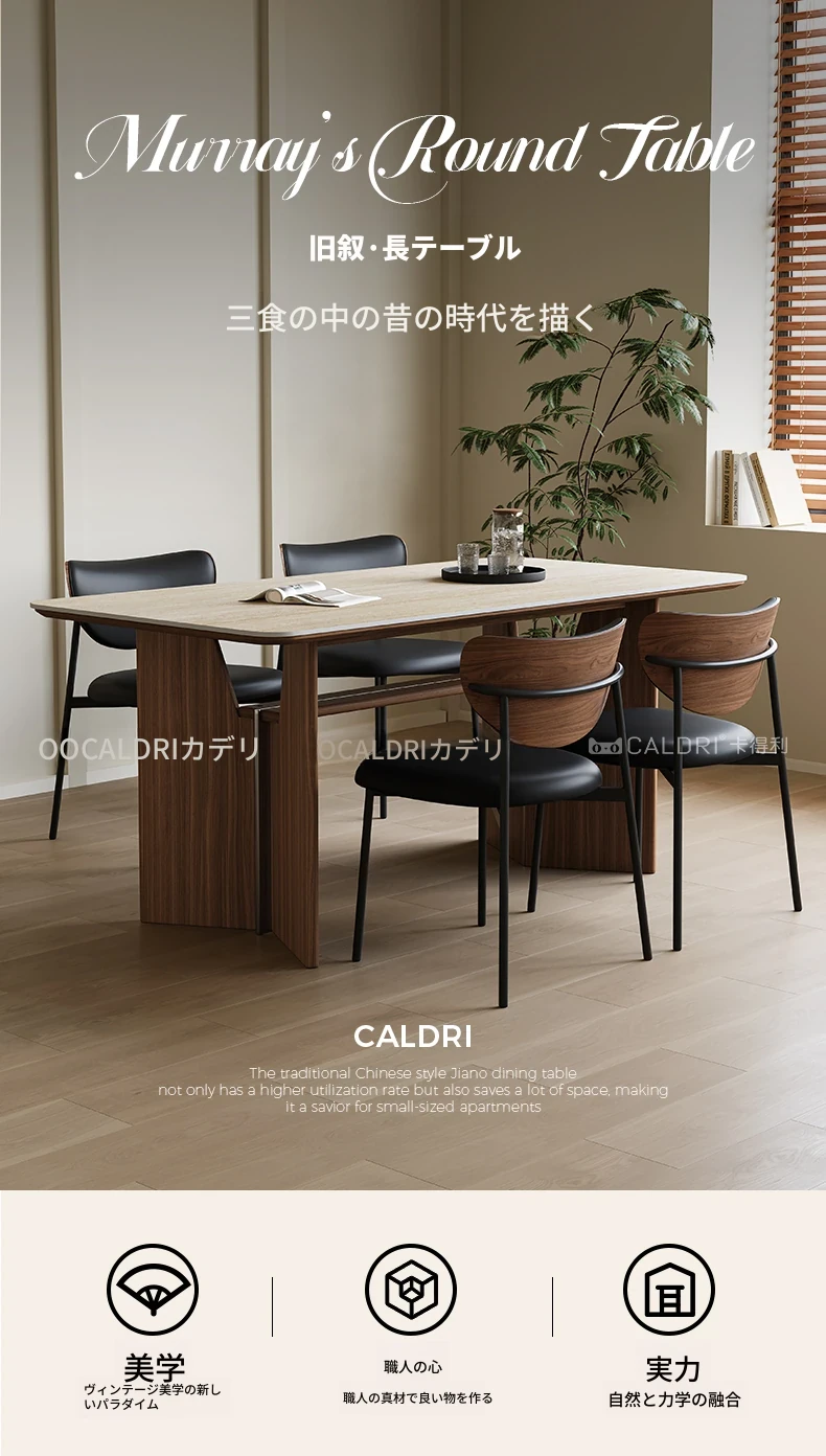 カデリ旧叙洞石長テーブル|アンティーク風の高級無垢材脚|シンプルでスタイリッシュな岩板ダイニングテーブル&チェアセット|お家のインテリアにぴったり!