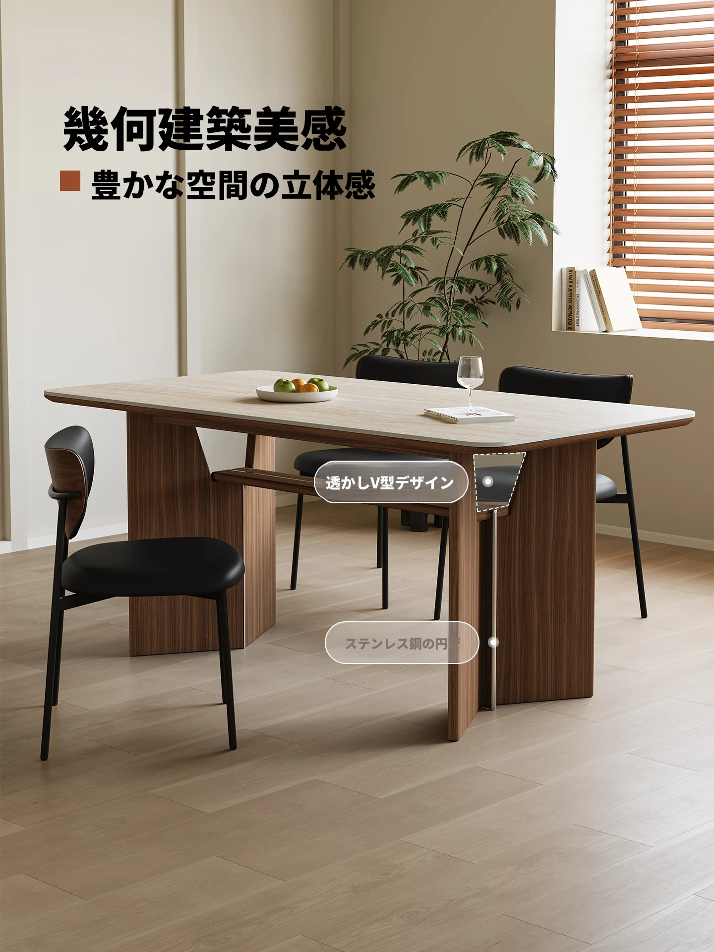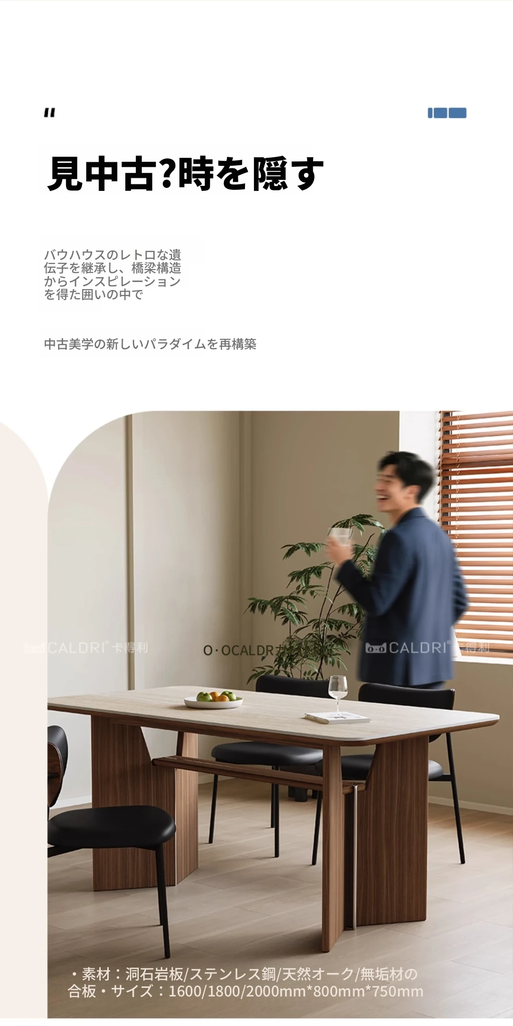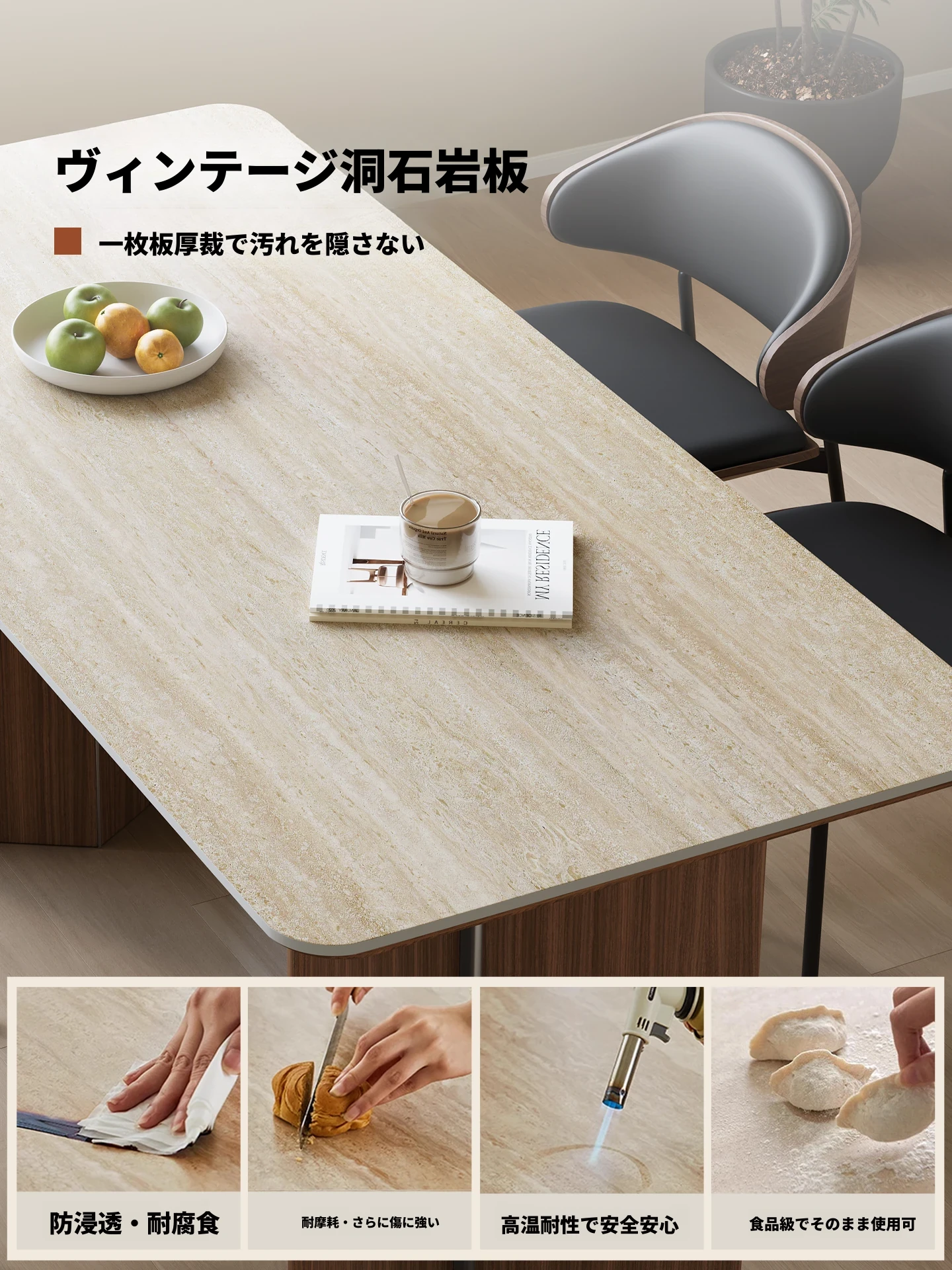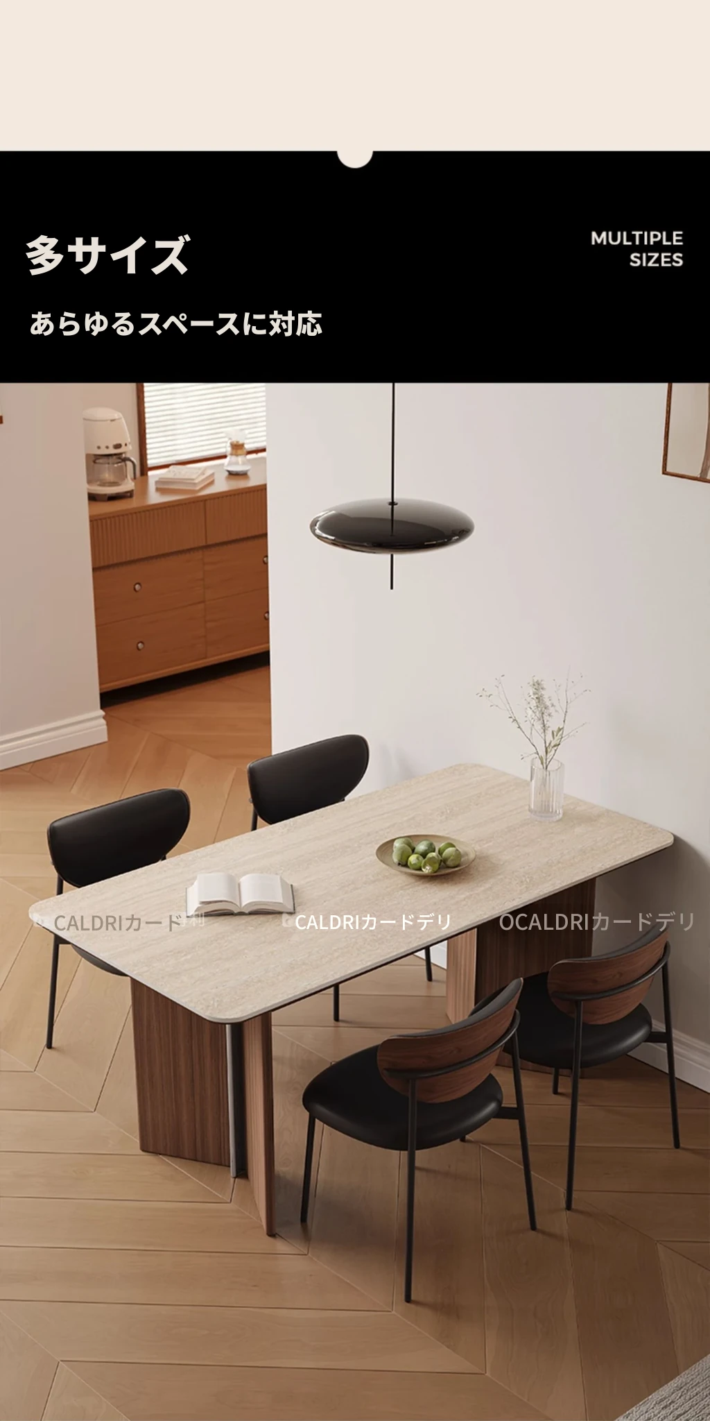 カデリ旧叙洞石長テーブル|アンティーク風の高級無垢材脚|シンプルでスタイリッシュな岩板ダイニングテーブル&チェアセット|お家のインテリアにぴったり!