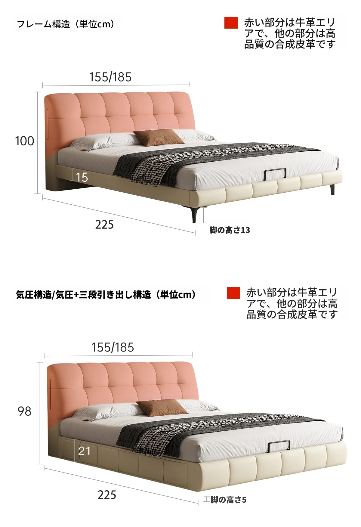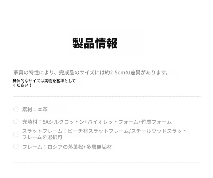 尊享版:洋東玲瓏玉-軽摔ナパ頭層牛皮【加密榉木排骨架】單床