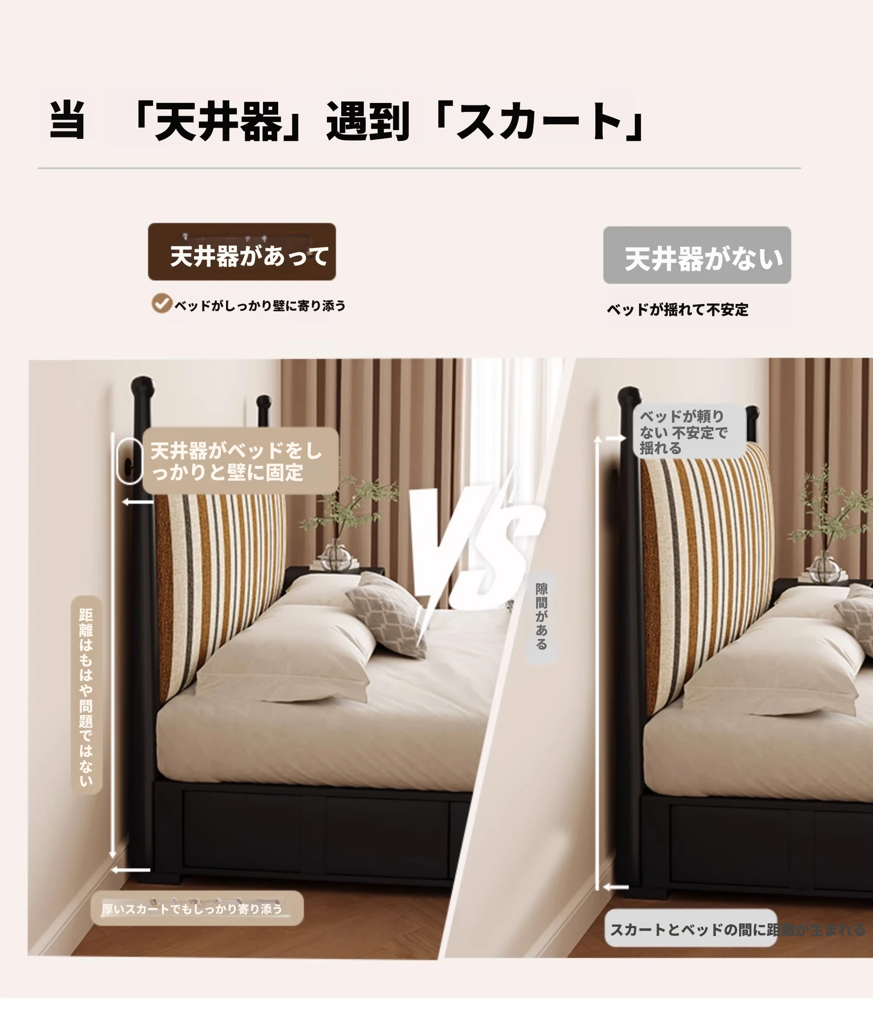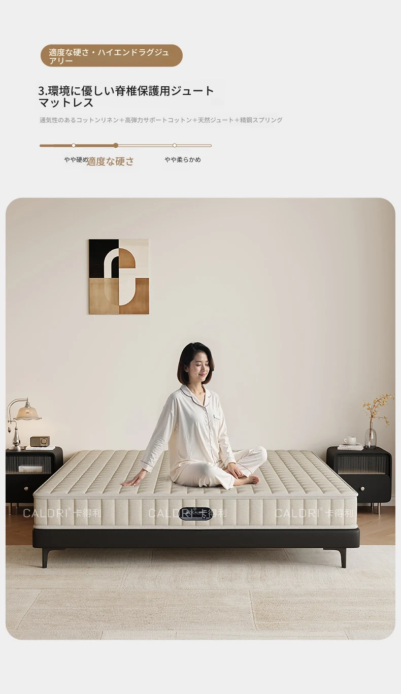 フラッグシップ版:リネン布製ベッド【厚手ブナスラットフレーム】+七つ星独立スプリングメモリーフォームマットレス