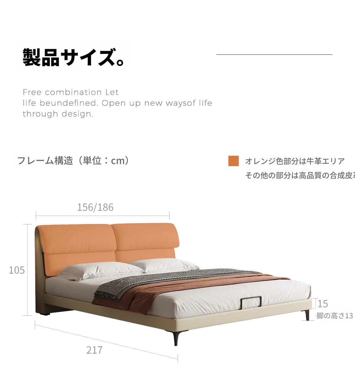 フラッグシップ版:洋東祥云-厚手スエードトップグレイン牛革【強化ビーチウッドスラットフレーム】シングルベッド