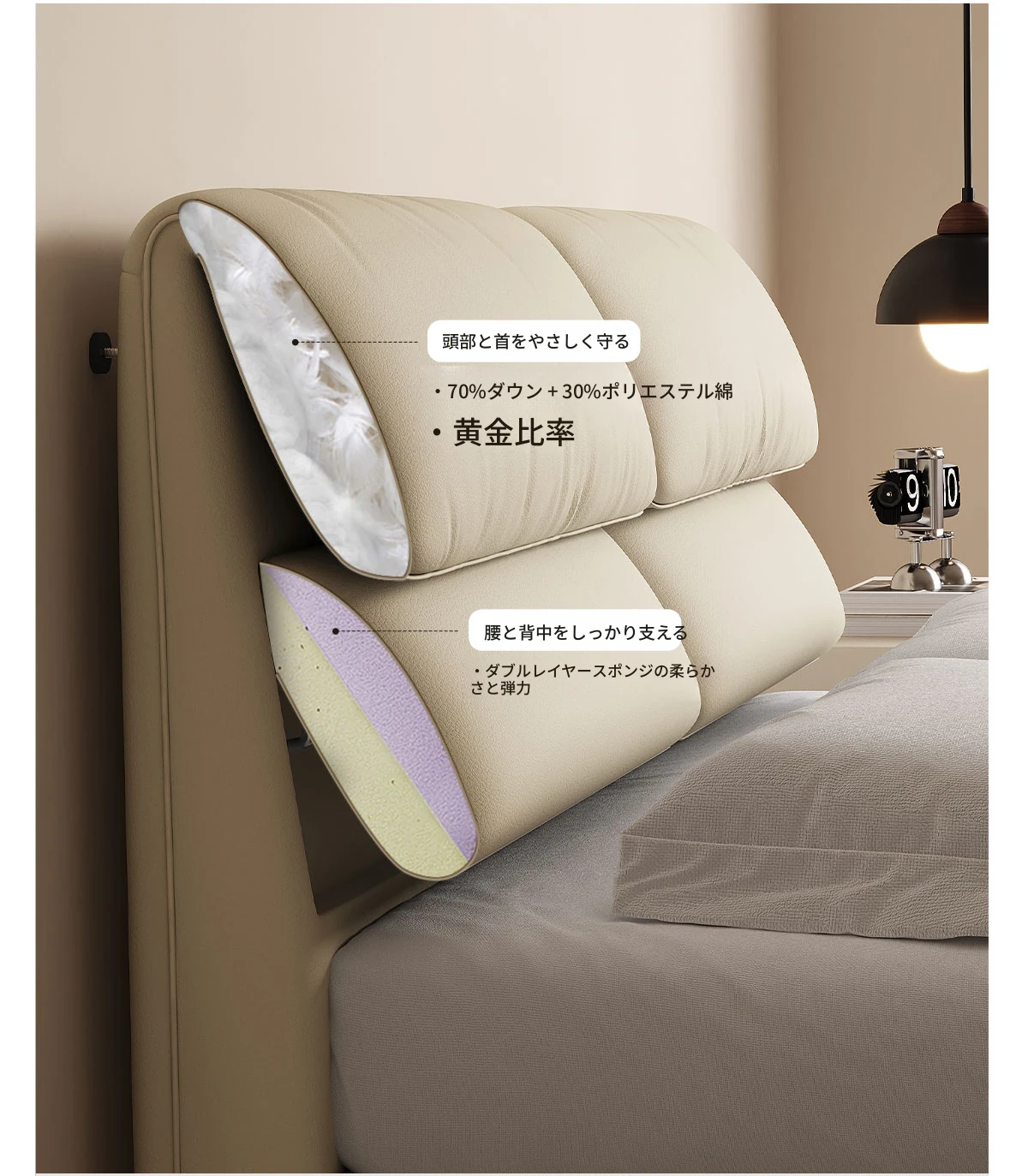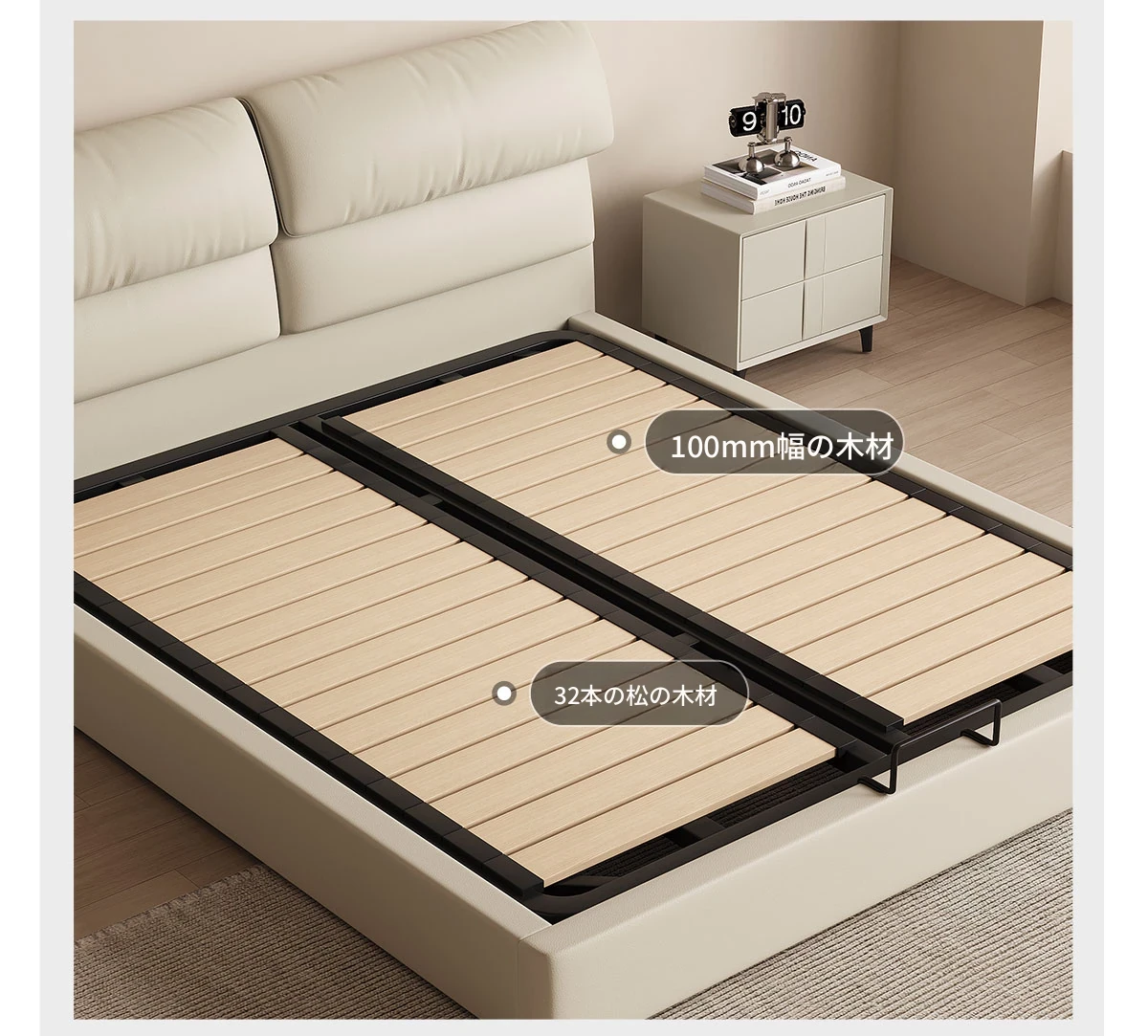 フラッグシップ版:洋東祥云-厚手スエードトップグレイン牛革【強化ビーチウッドスラットフレーム】シングルベッド+ナイトスタンド*1