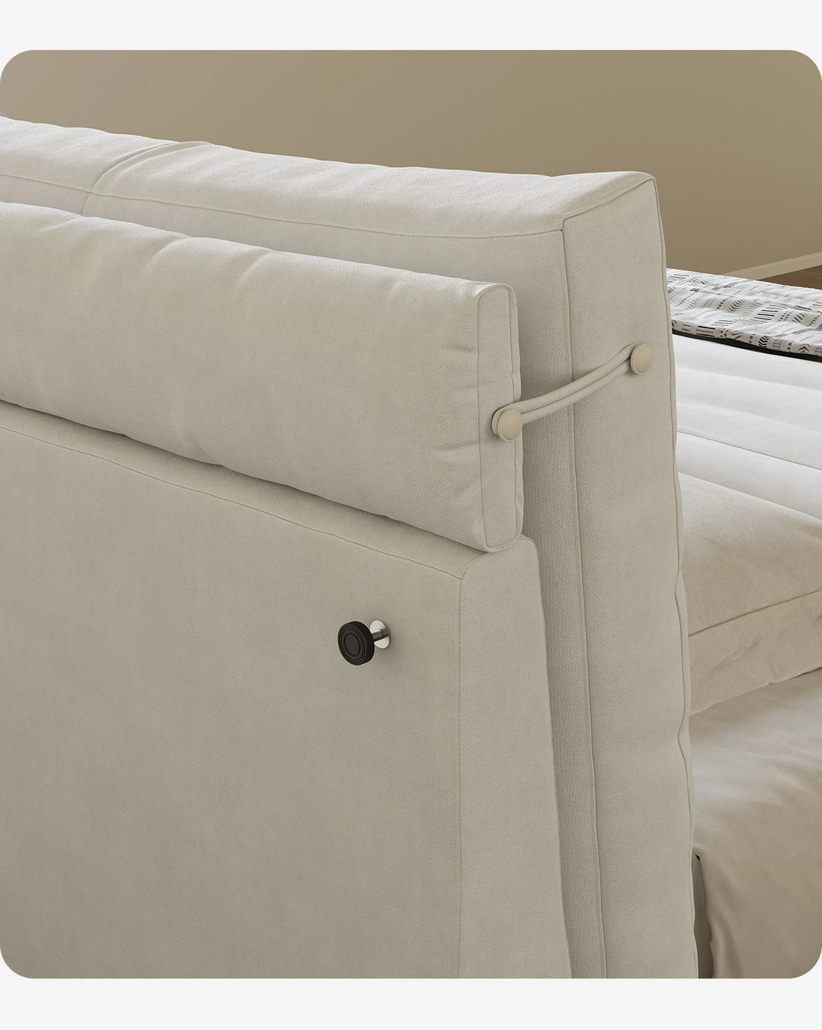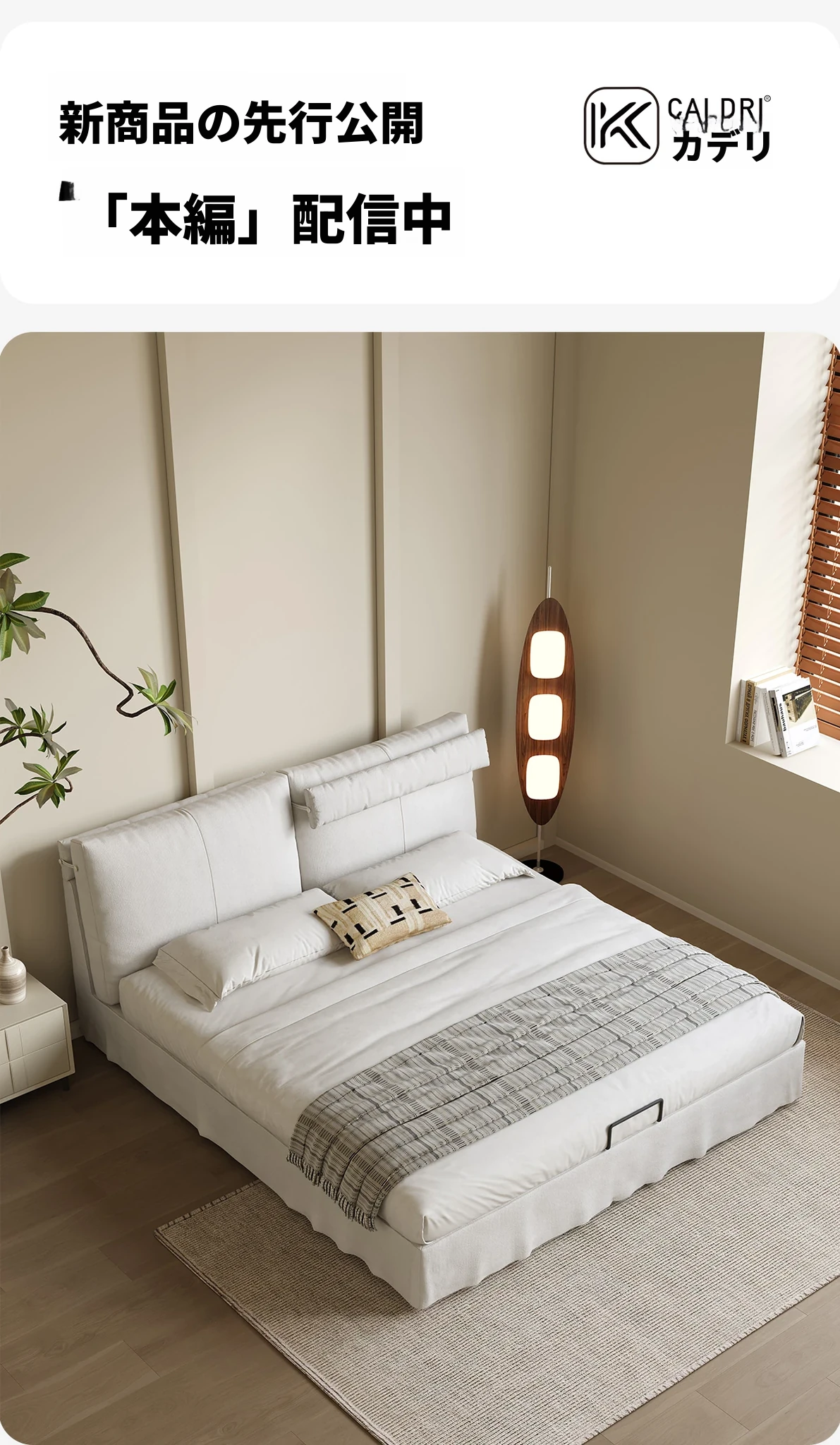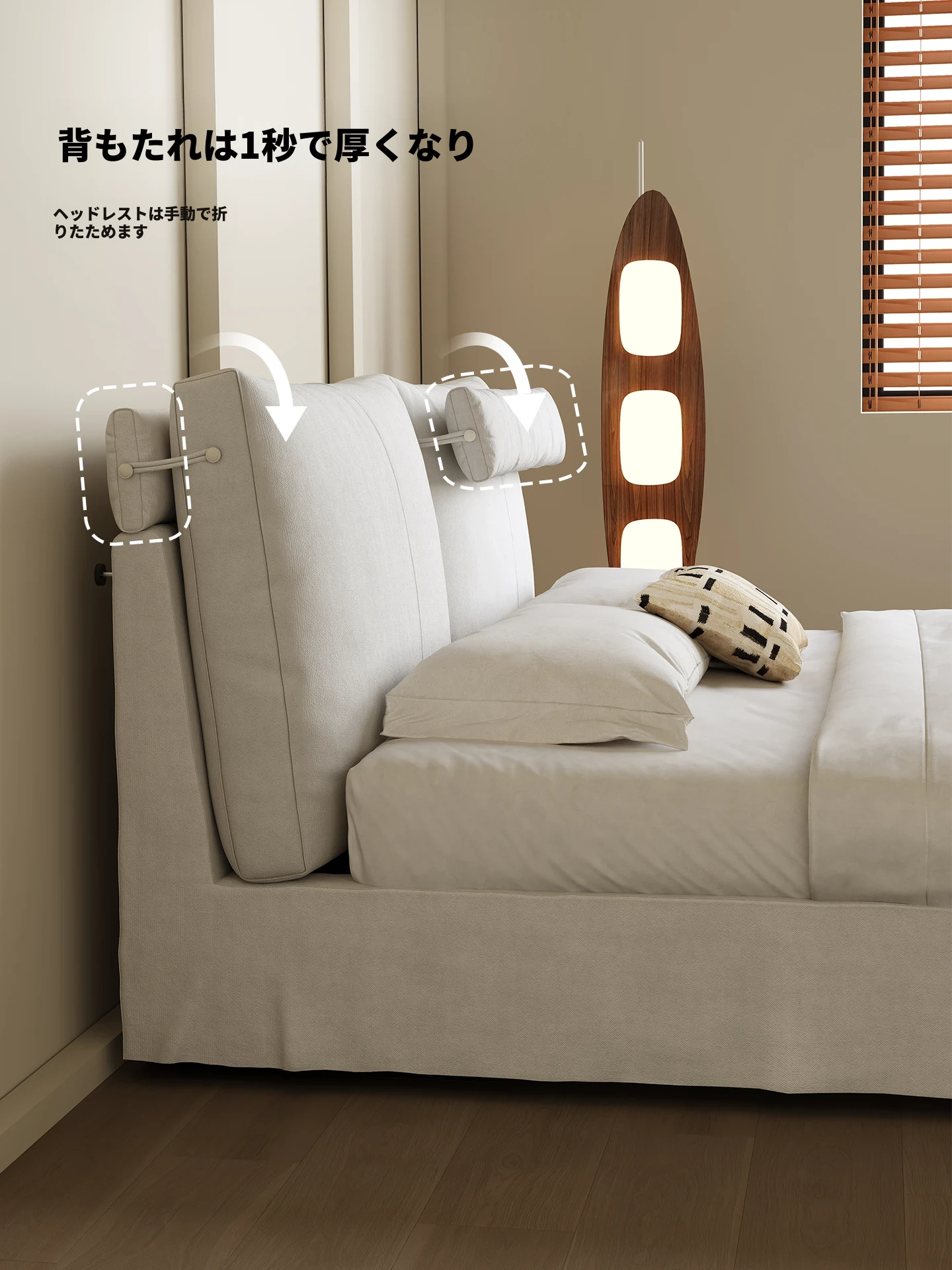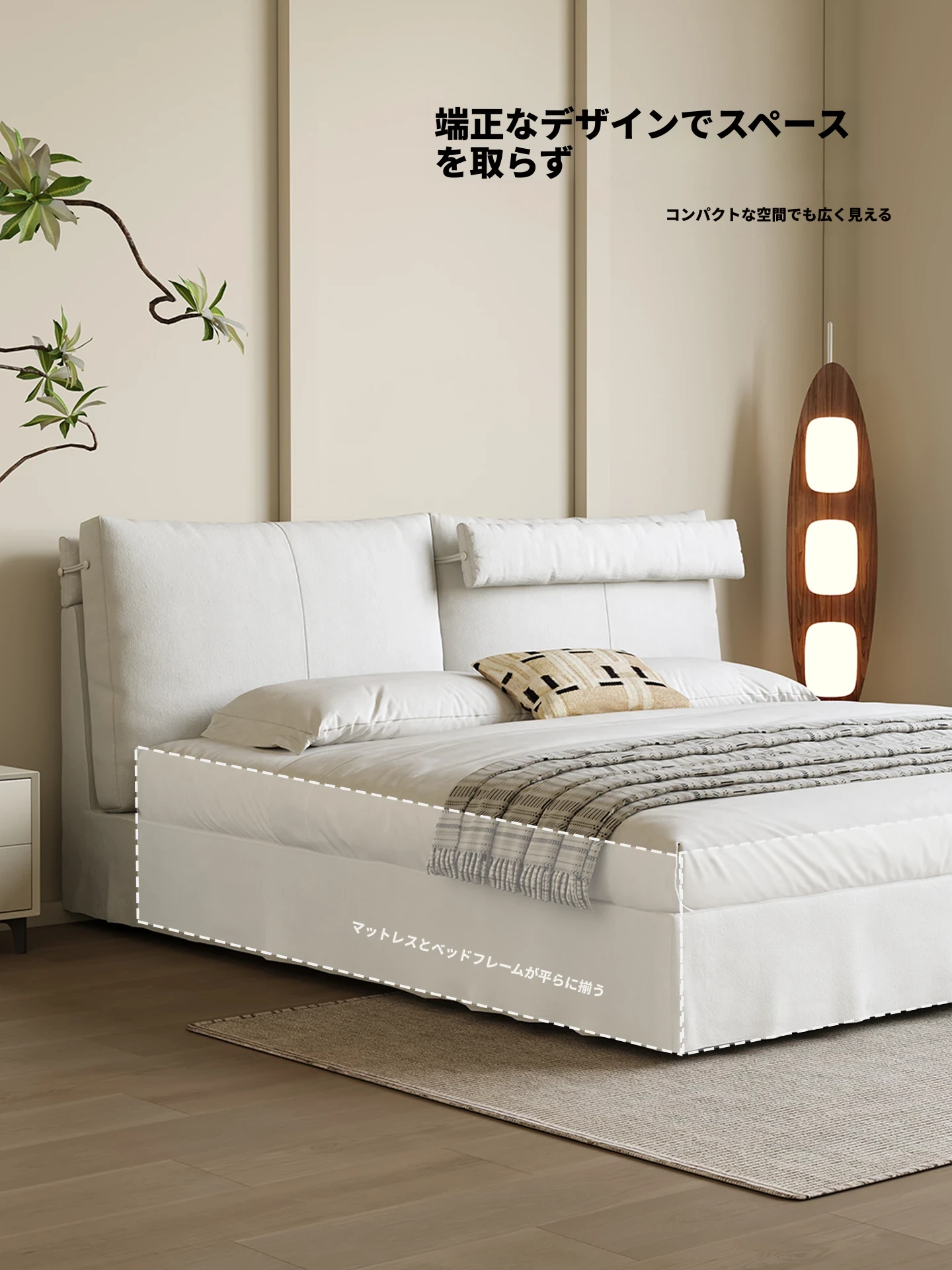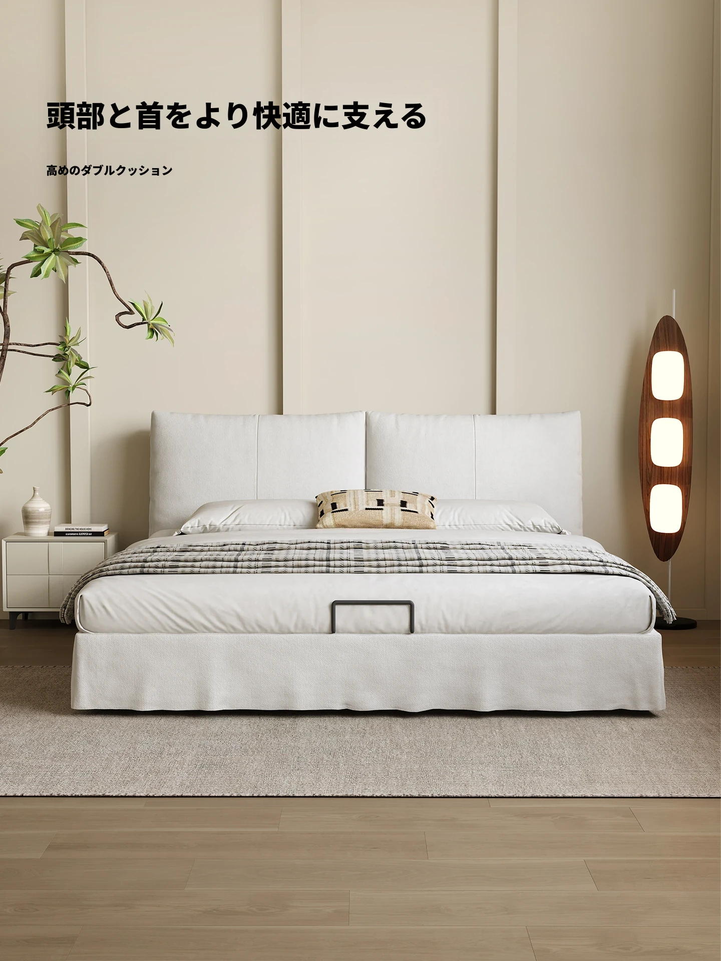 カデリ現代ミニマリスト全身洗えるリネン布侘寂風クリームホワイト収納主寝室ダブルファブリックベッド - シンプルでスタイリッシュ、心地よい空間を演出!