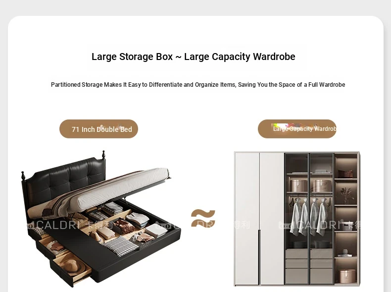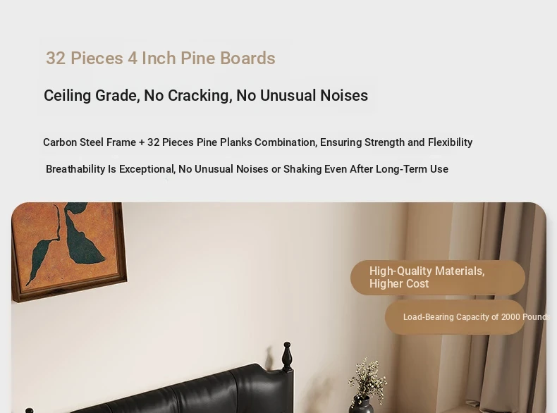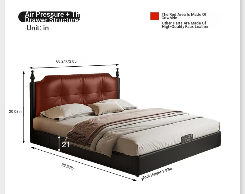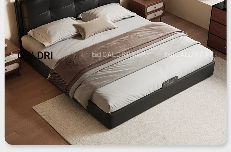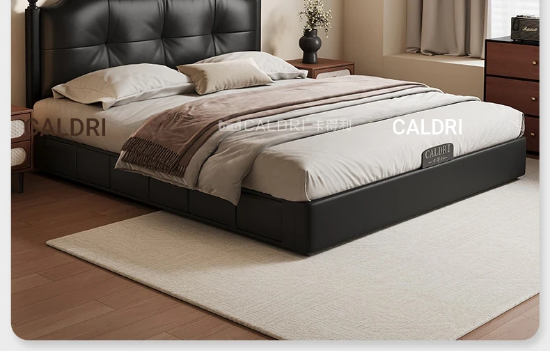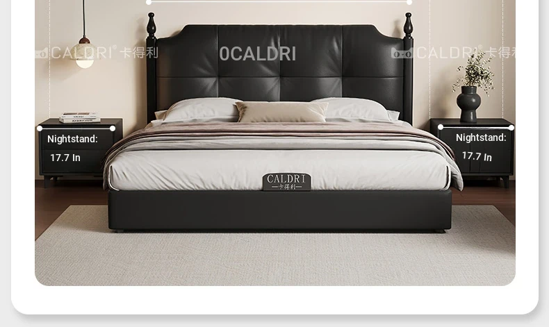 Deluxe Edition: Leather Bed [16-row Steel Wooden Row Skeleton + First Layer Calfskin] + Bedside Table * 1