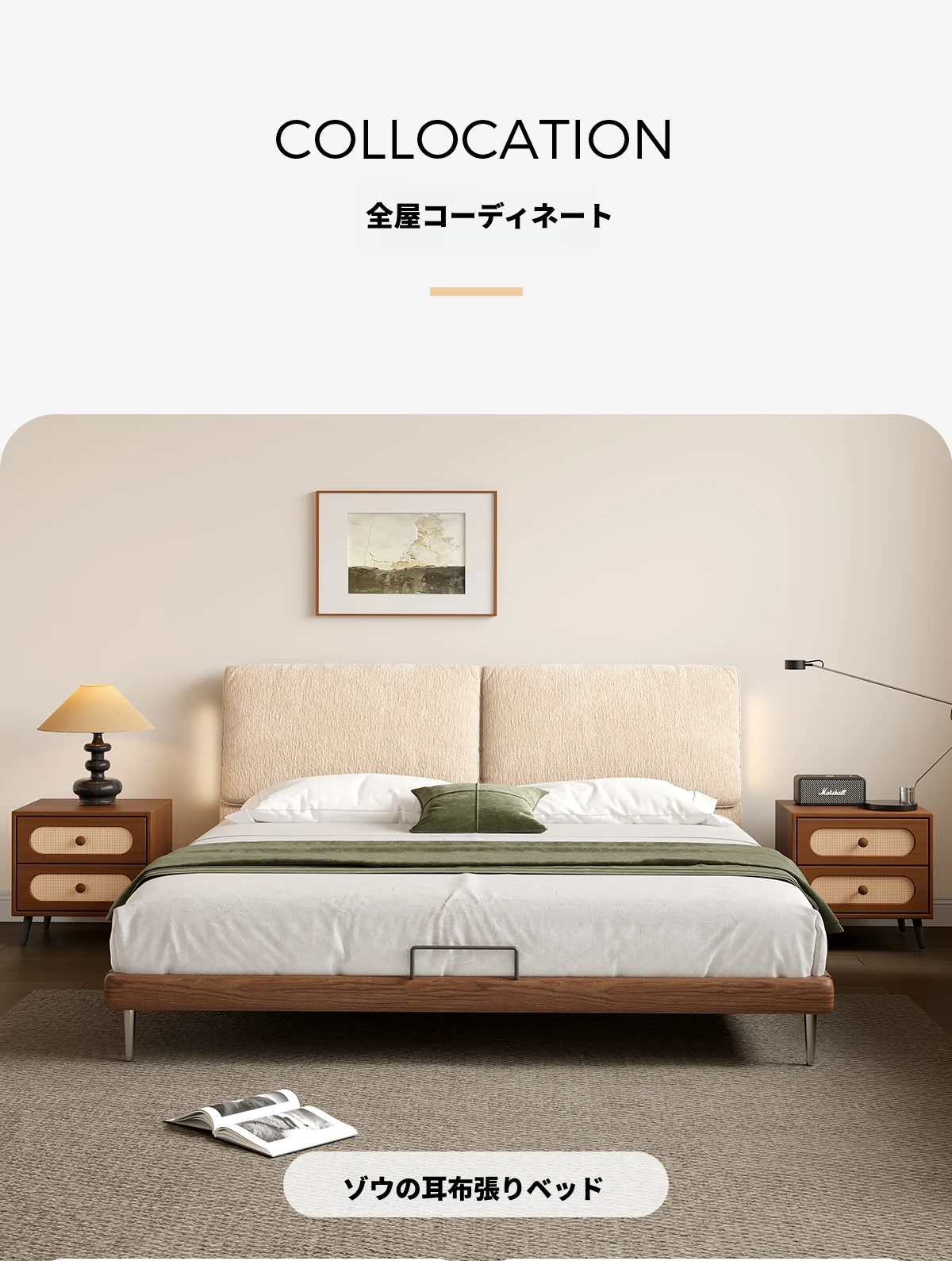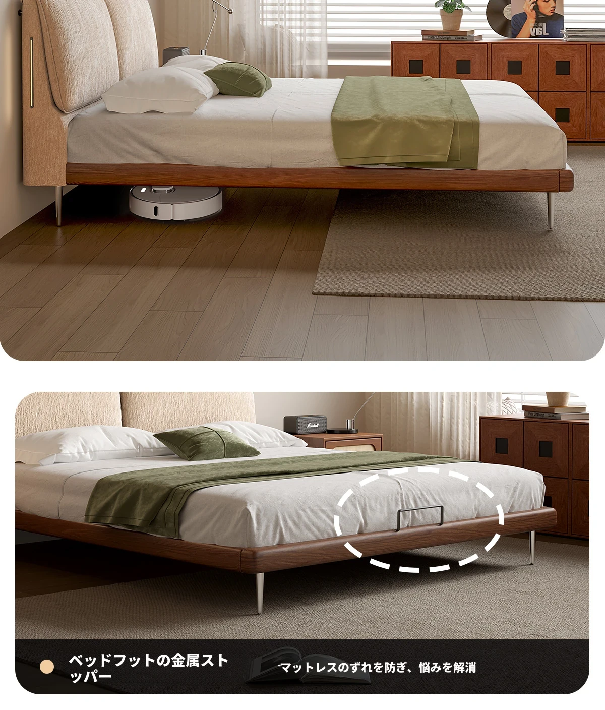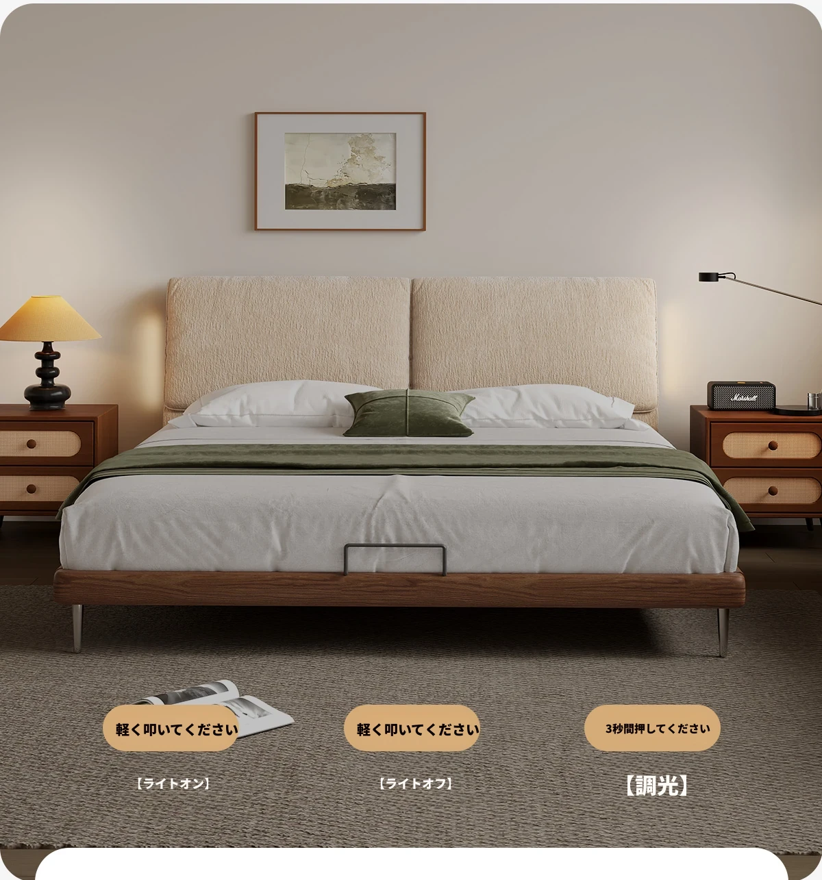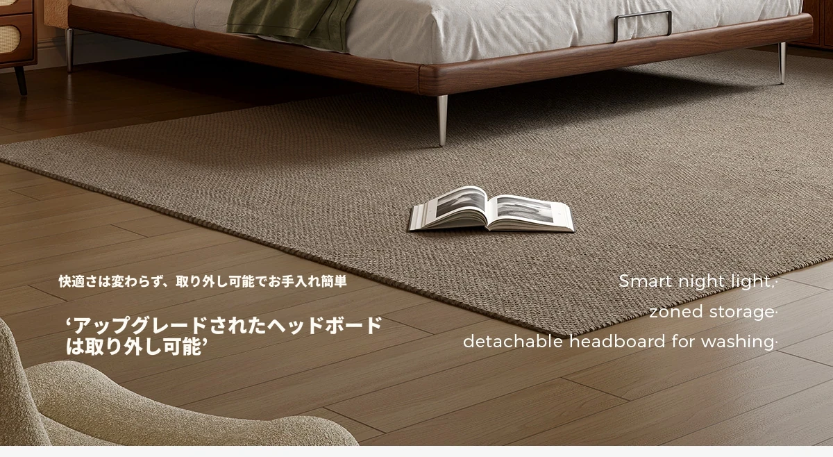 フラッグシップモデル:洗えるシェニール布ベッド【強化ビーチウッドスラット】+ナイトスタンド*1