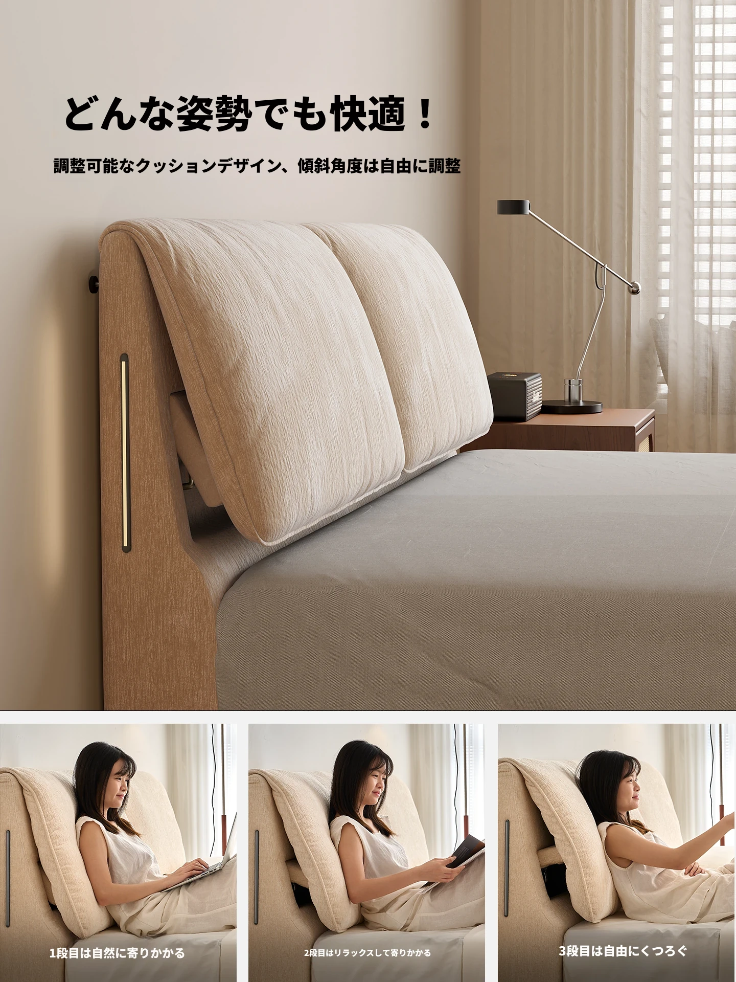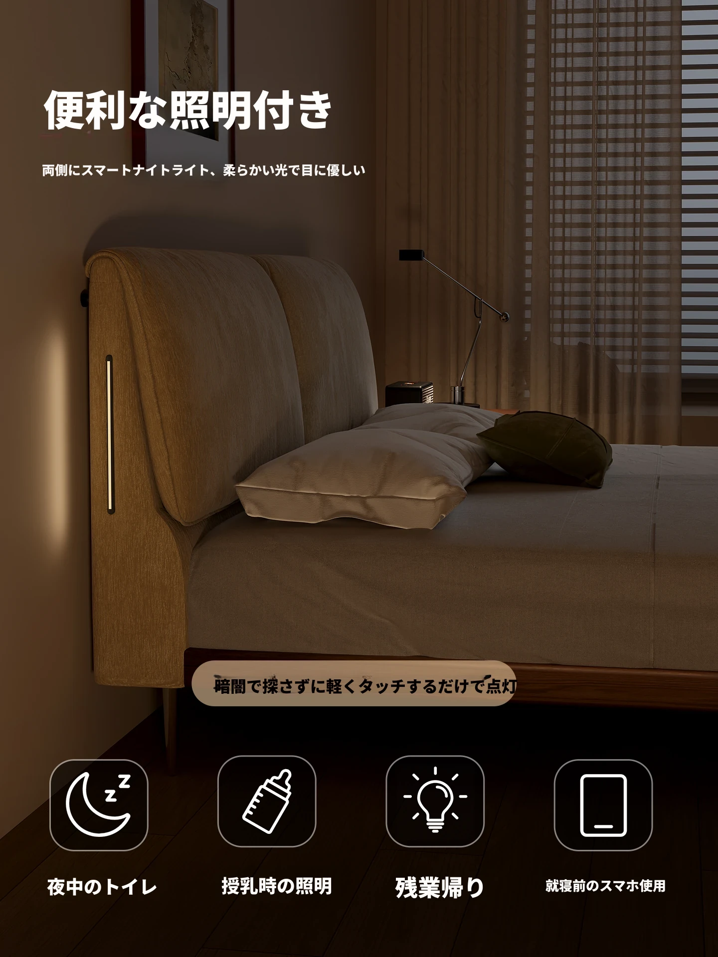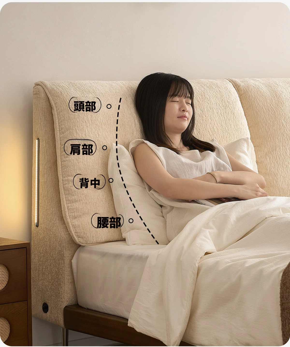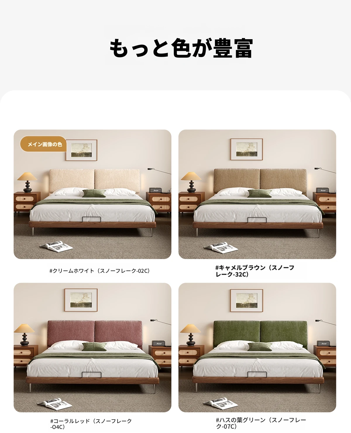 フラッグシップモデル:洗えるシェニール布ベッド【強化ビーチウッドスラット】+ナイトスタンド*1