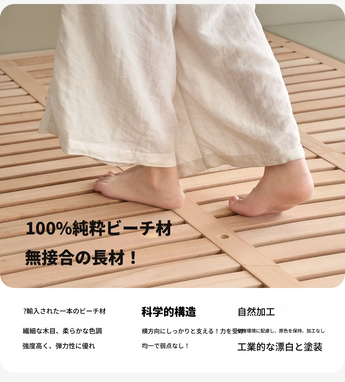 フラッグシップモデル:洗えるシェニール布ベッド【強化ビーチウッドスラット】