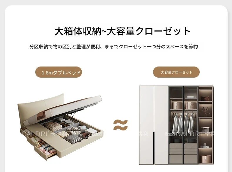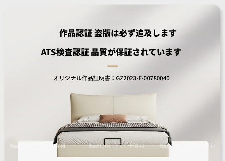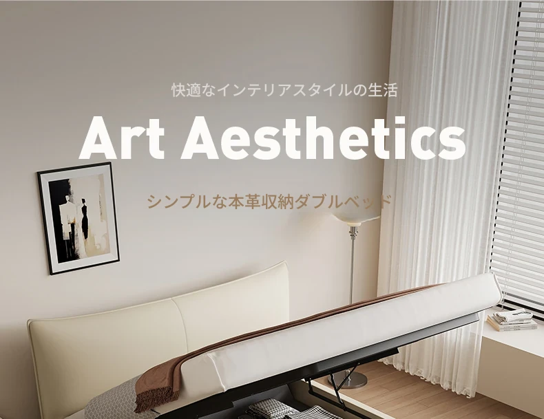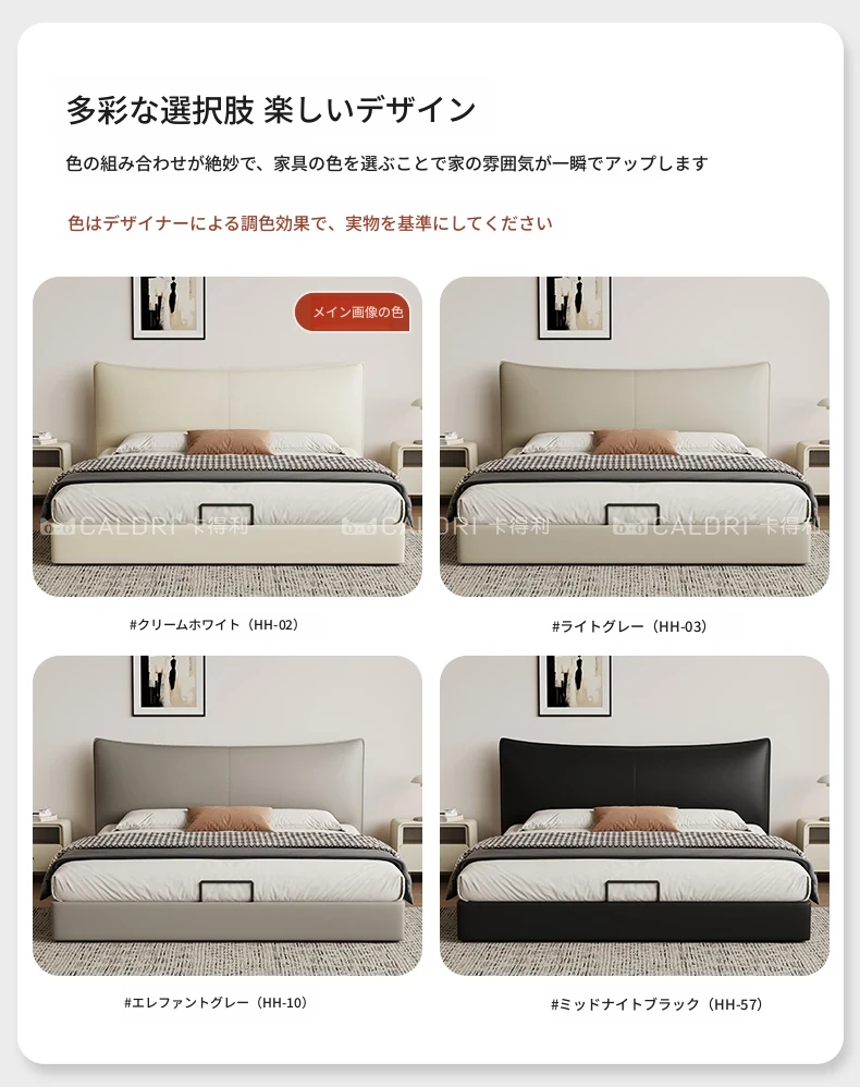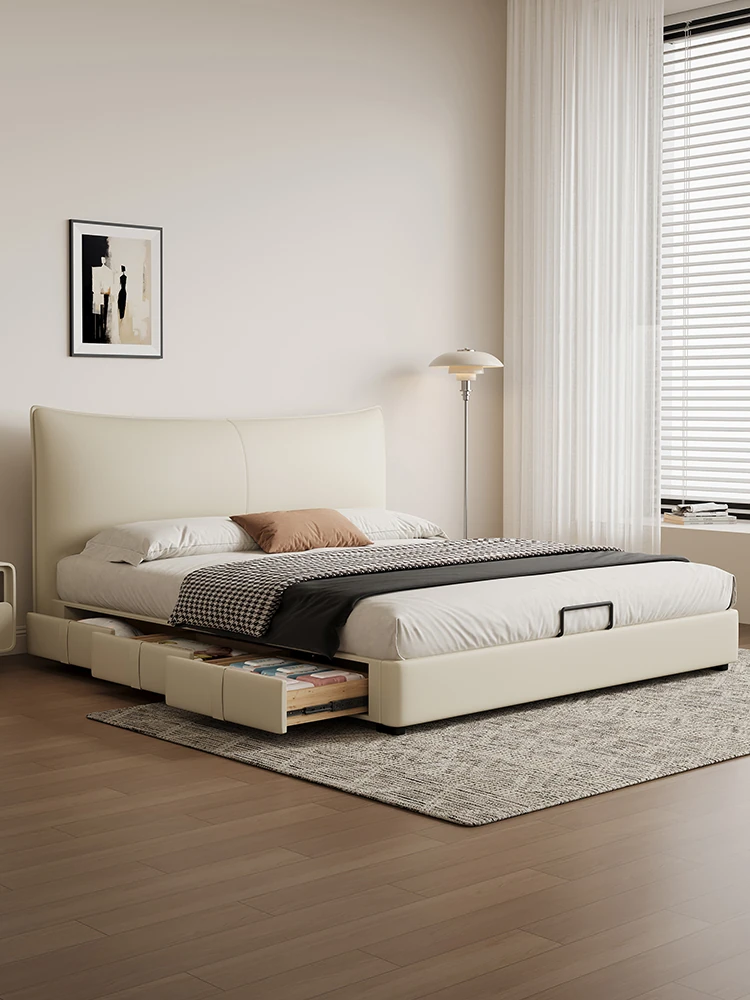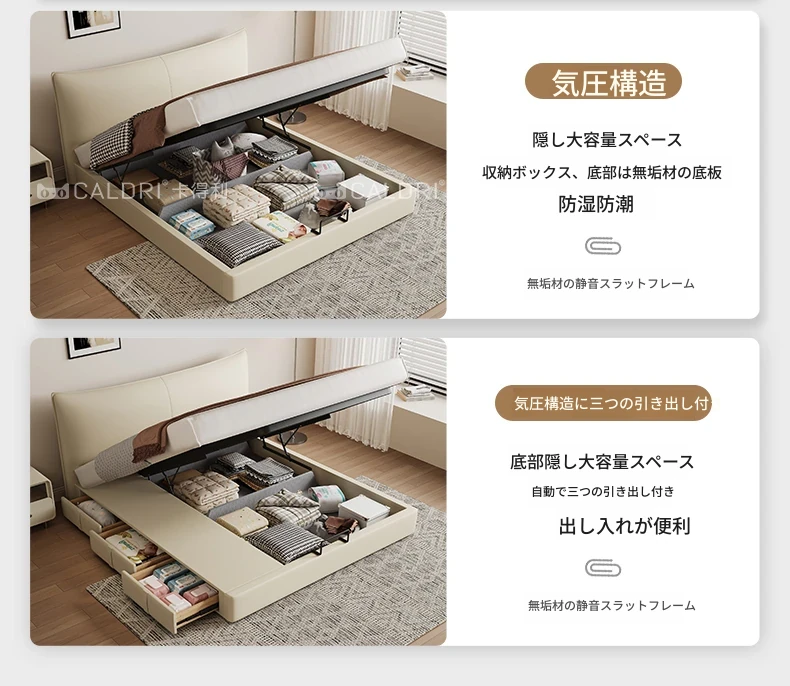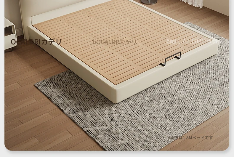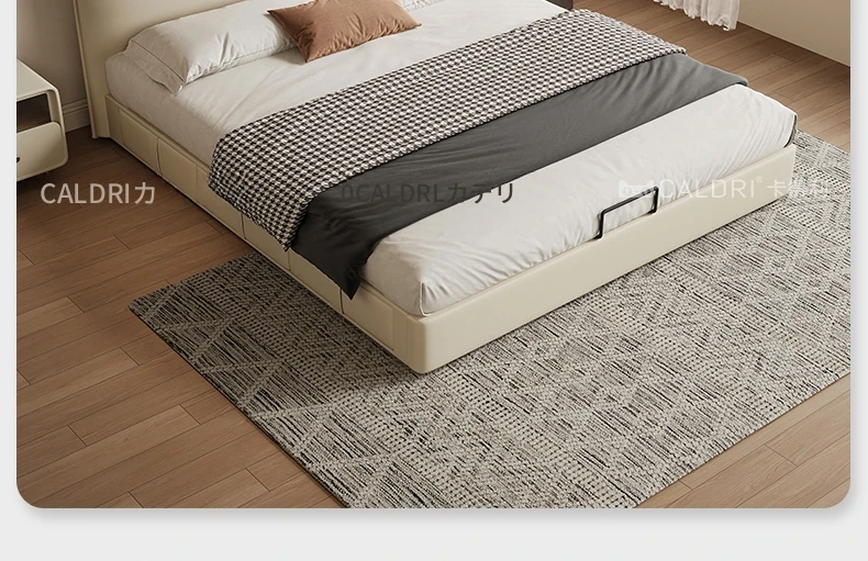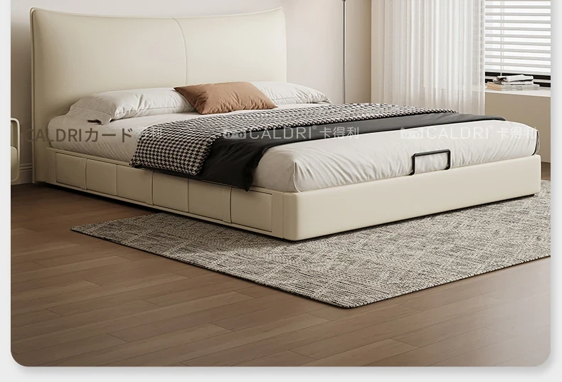 カデリ本革ベッド - 高級感溢れるモダンミニマリストデザインの収納付きホワイトイタリアンスタイルダブルベッド、シャネル風のエレガンスをあなたの寝室に。