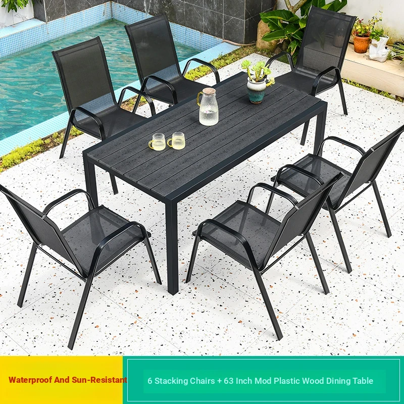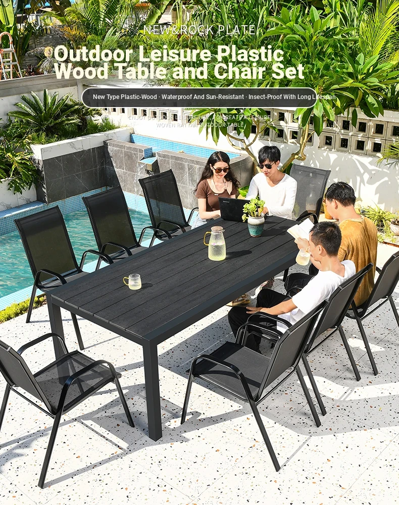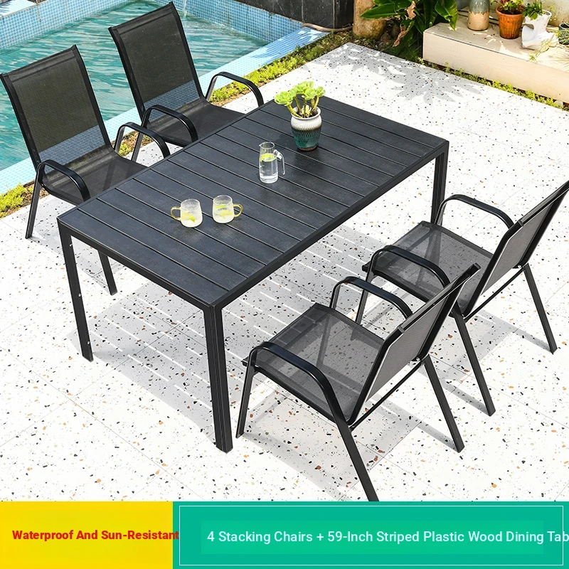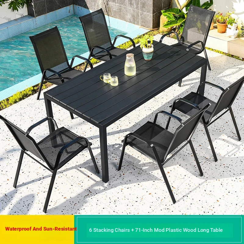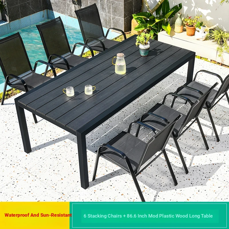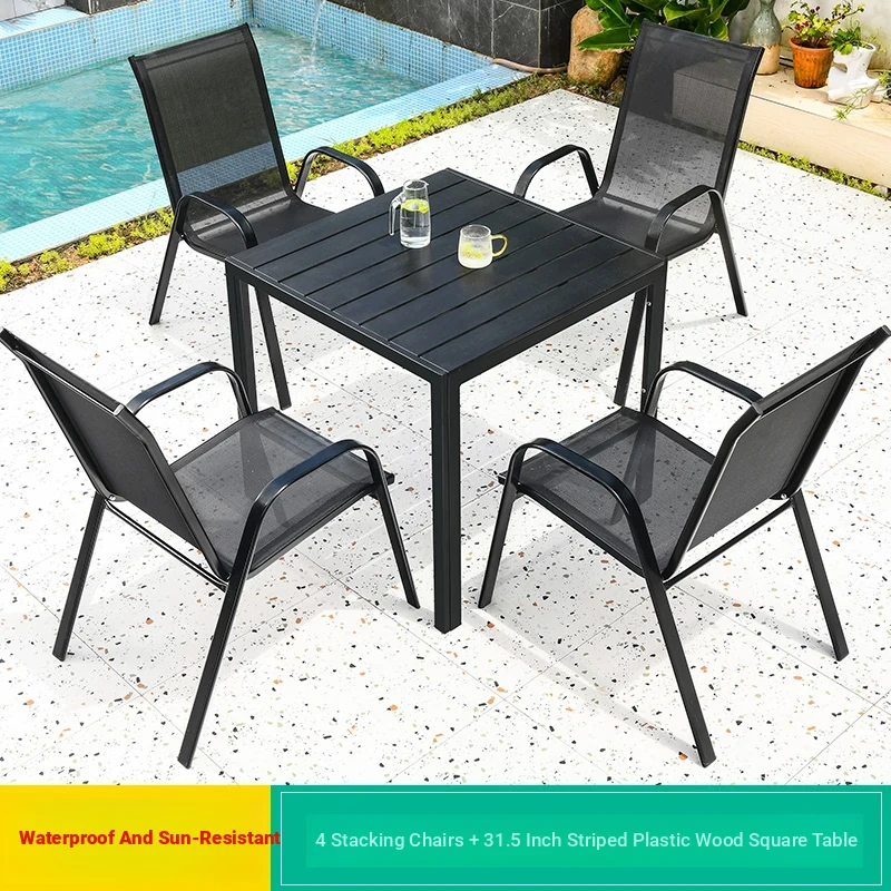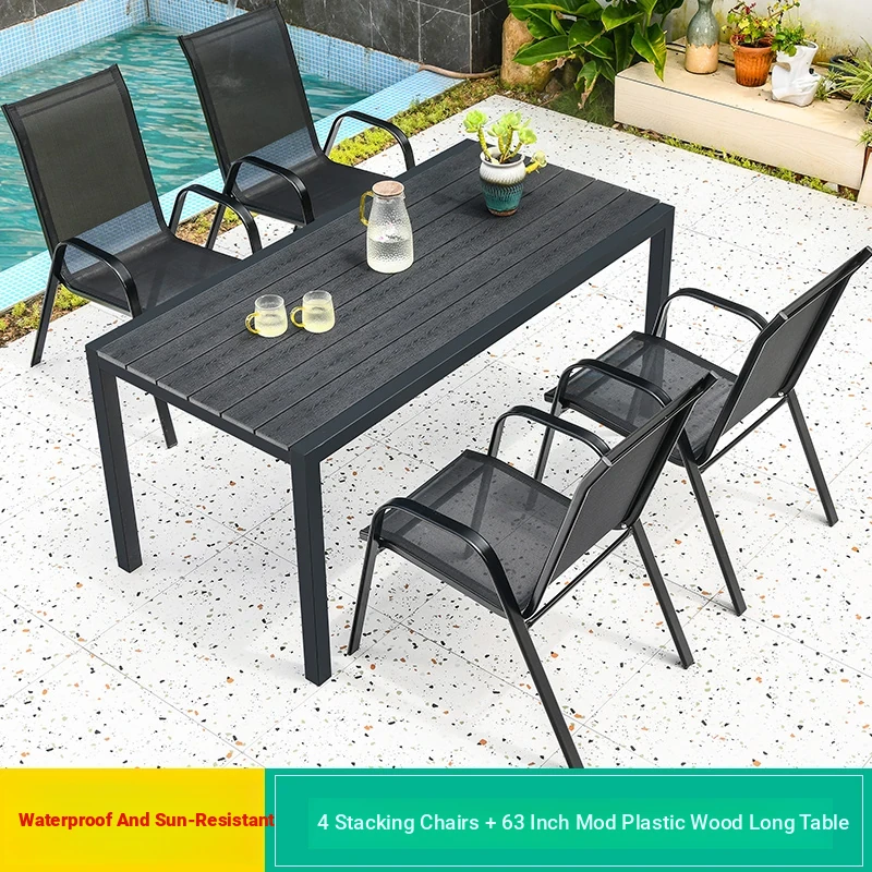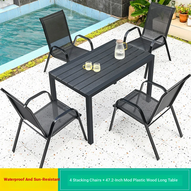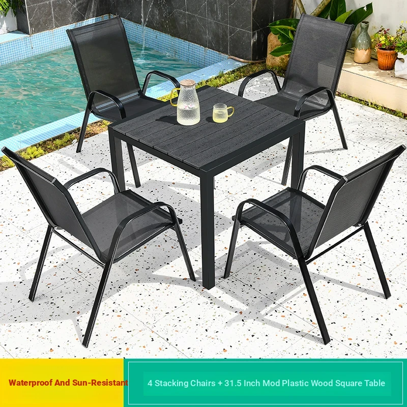 Mo Family Outdoor Furniture Set - Stylish Wooden Table and Chairs for Milk Tea Shops, Gardens, Patios, and Balconies - Minimalist Plastic-Wood Composite Design for Relaxation in Any Outdoor Space.