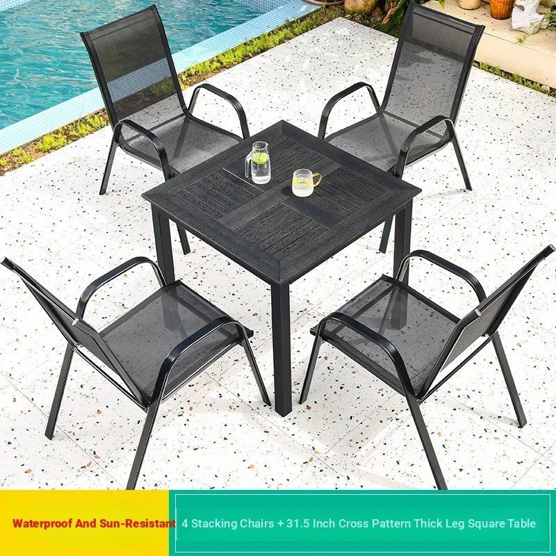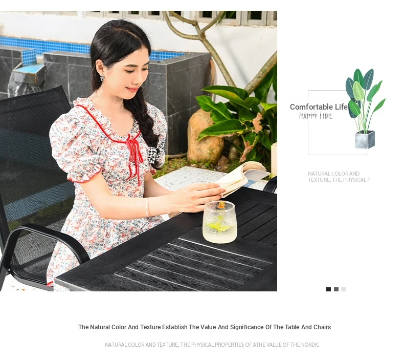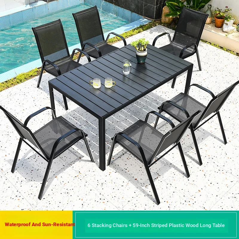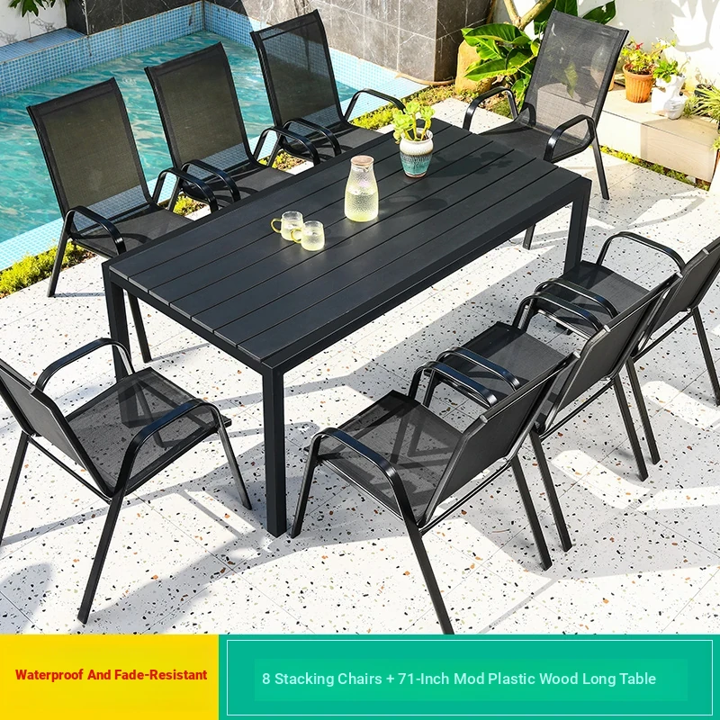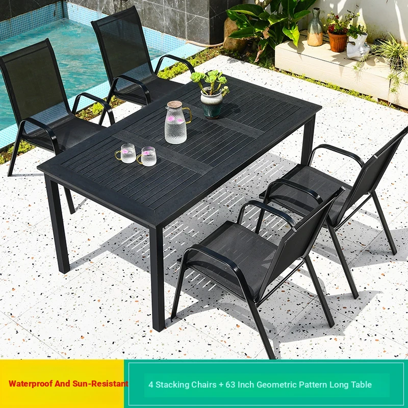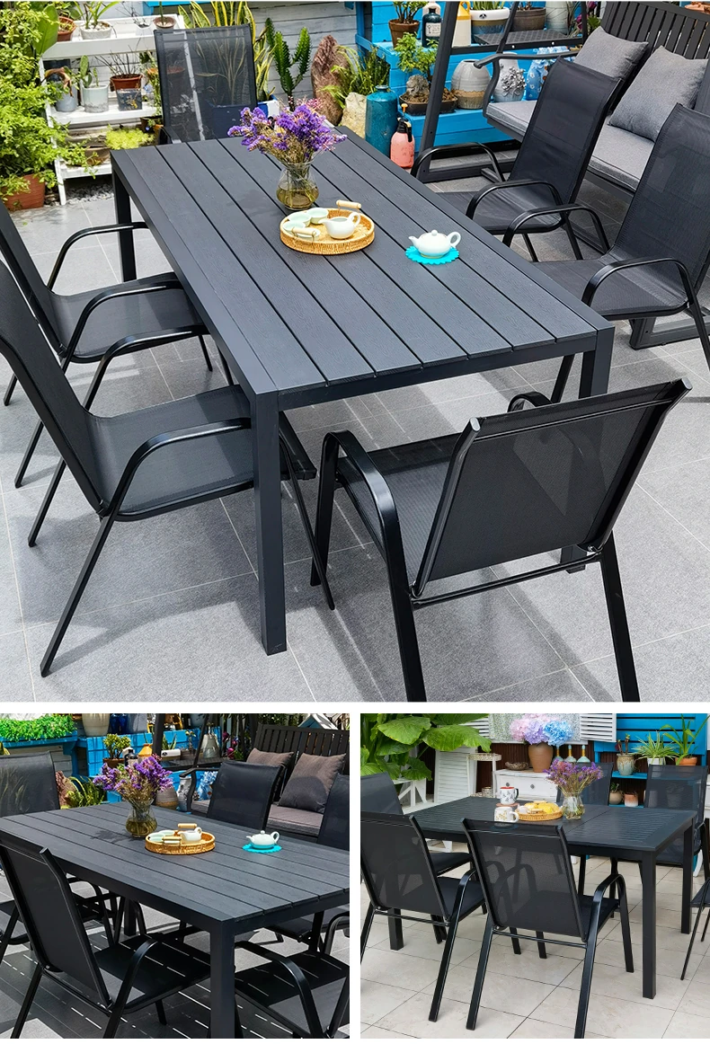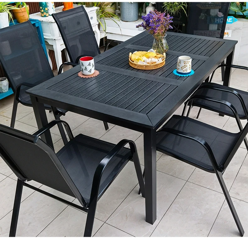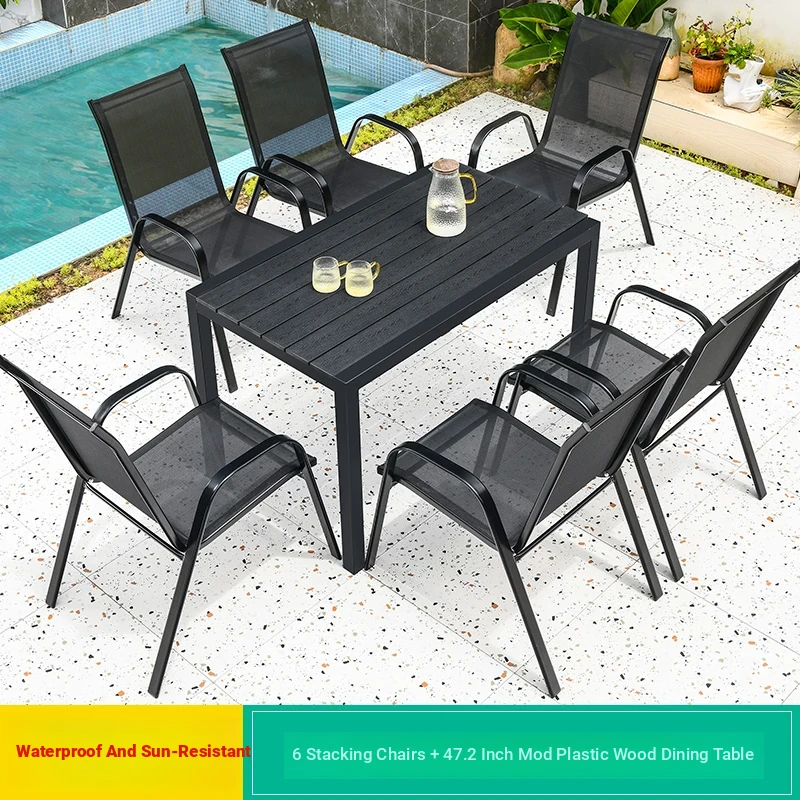 Mo Family Outdoor Furniture Set - Stylish Wooden Table and Chairs for Milk Tea Shops, Gardens, Patios, and Balconies - Minimalist Plastic-Wood Composite Design for Relaxation in Any Outdoor Space.