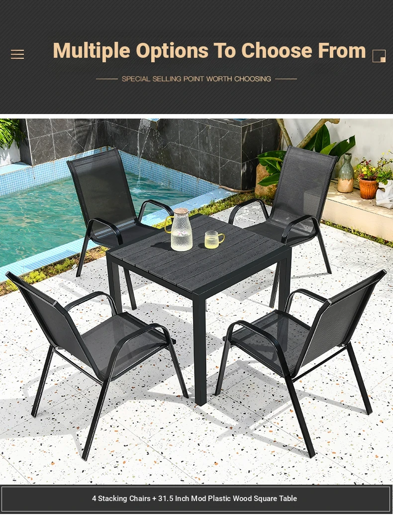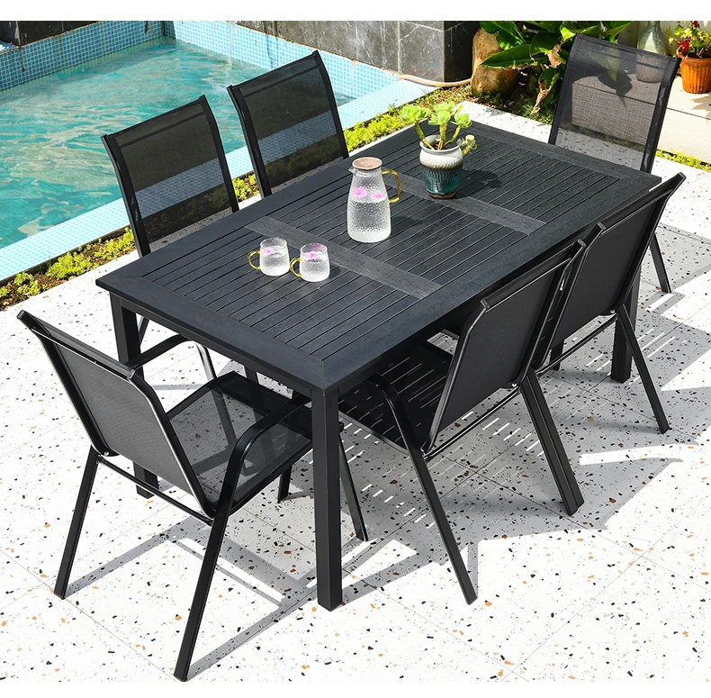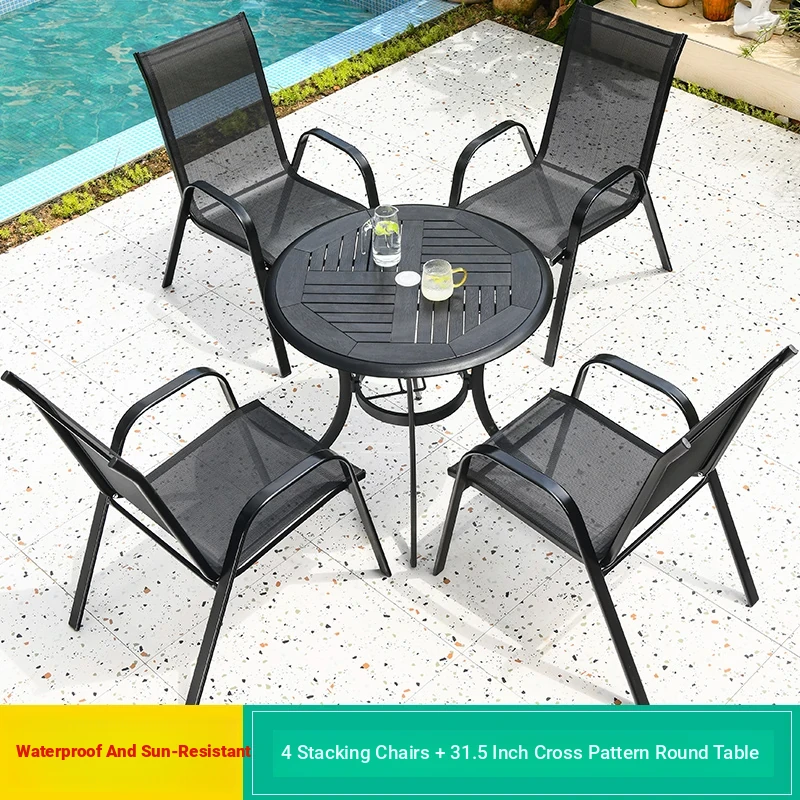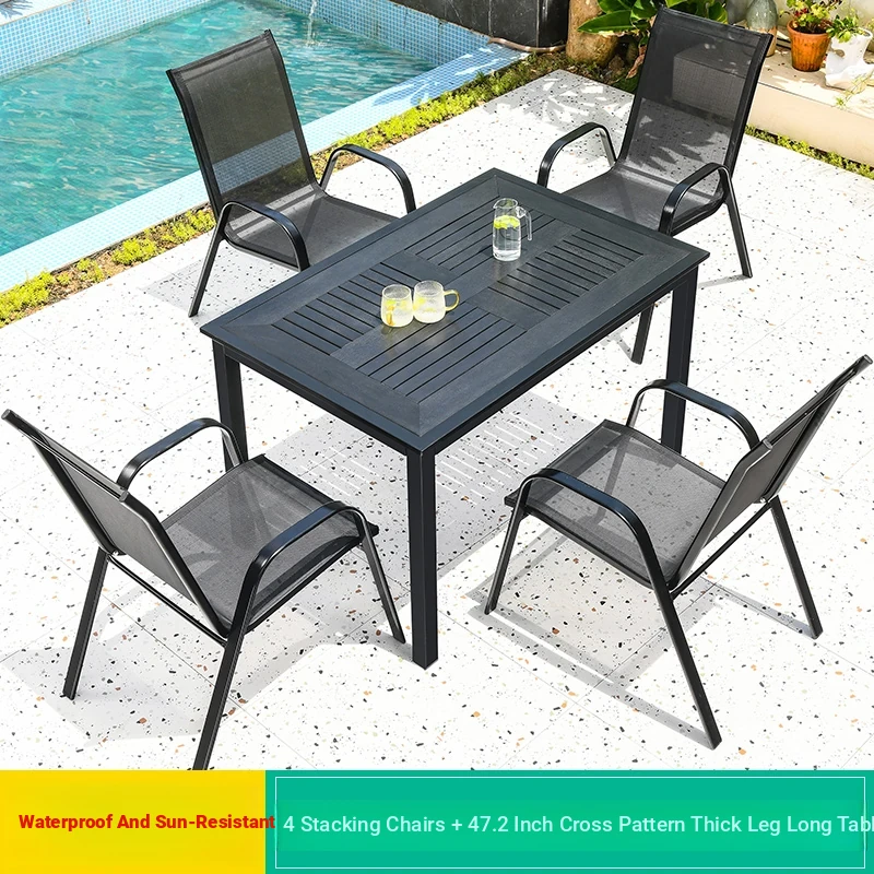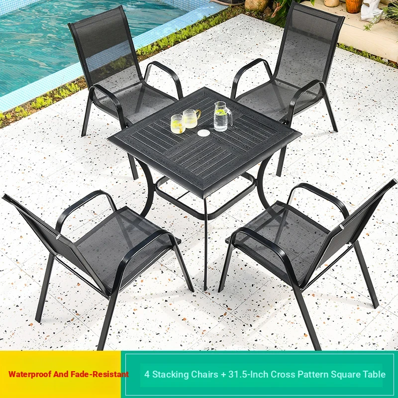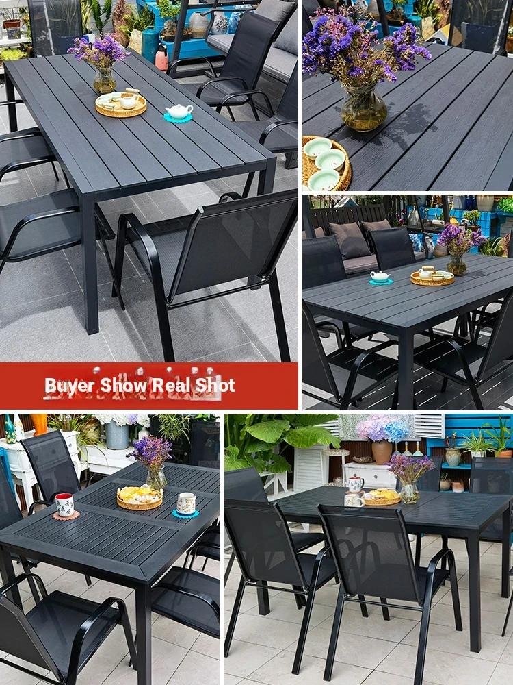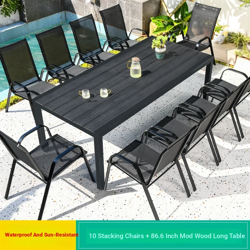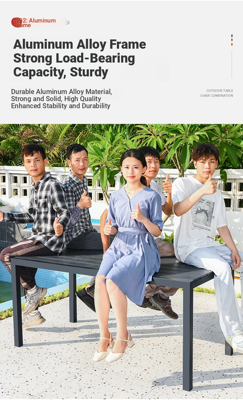 Mo Family Outdoor Furniture Set - Stylish Wooden Table and Chairs for Milk Tea Shops, Gardens, Patios, and Balconies - Minimalist Plastic-Wood Composite Design for Relaxation in Any Outdoor Space.