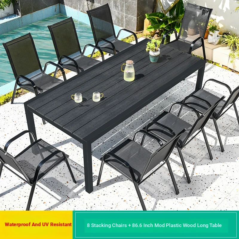 8+1 [86.61in Maud Plastic Wood Long Table]]