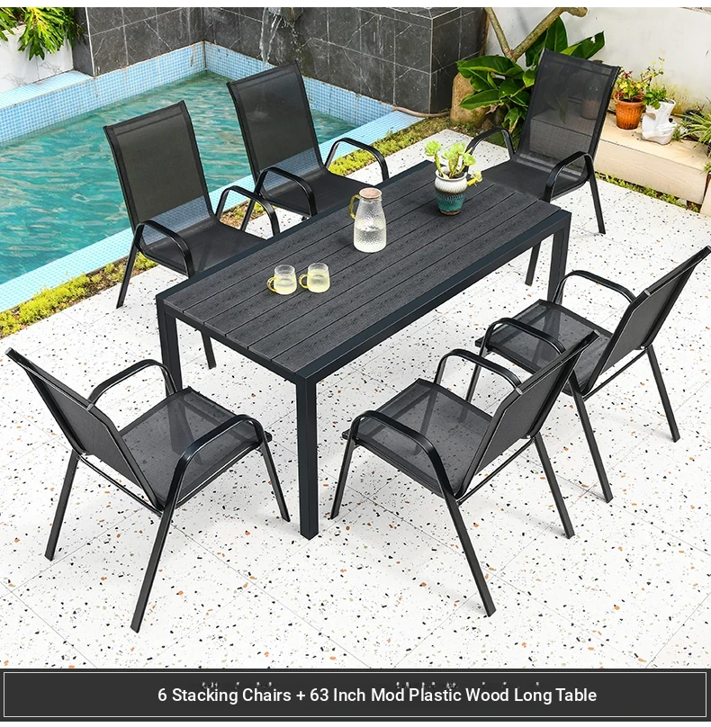 6+1 [86.61in Maud Plastic Wood Long Table]]