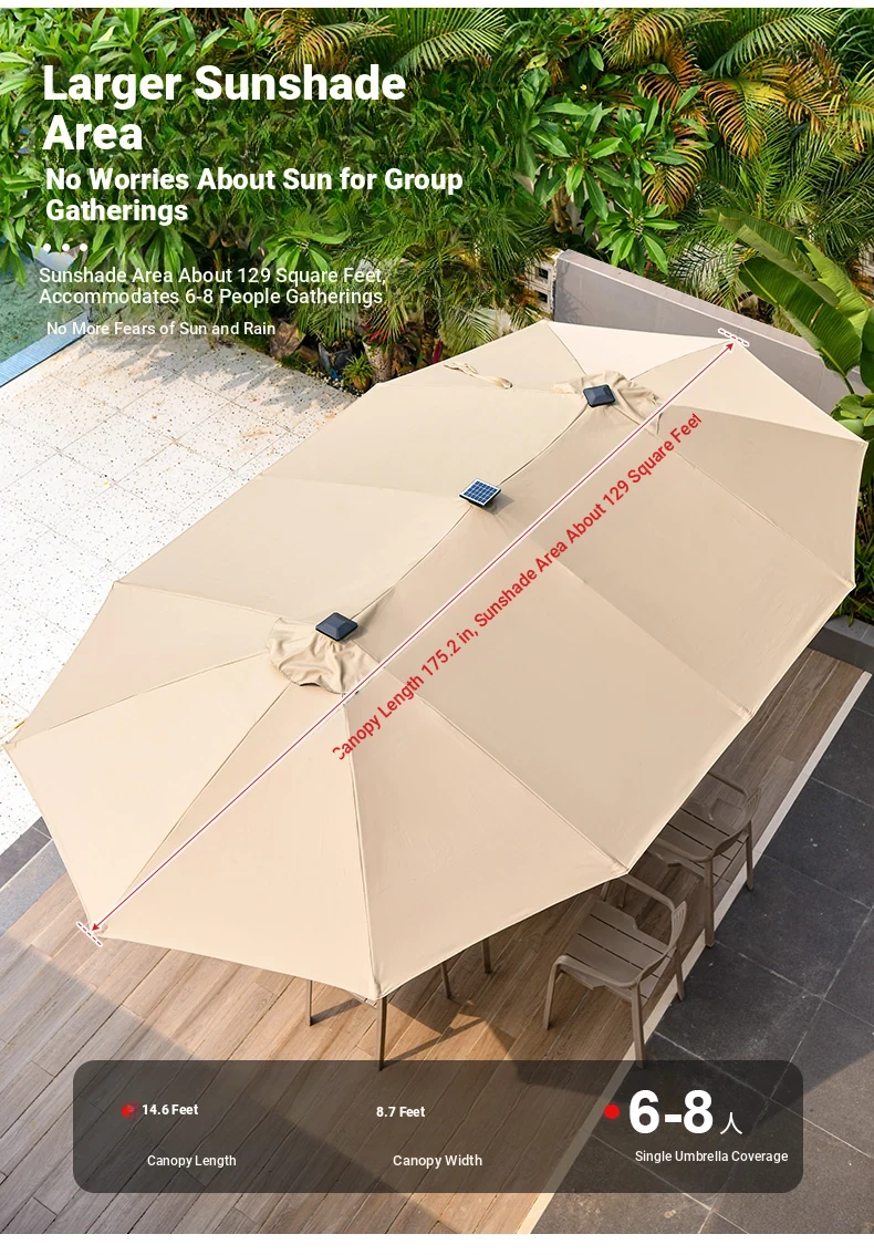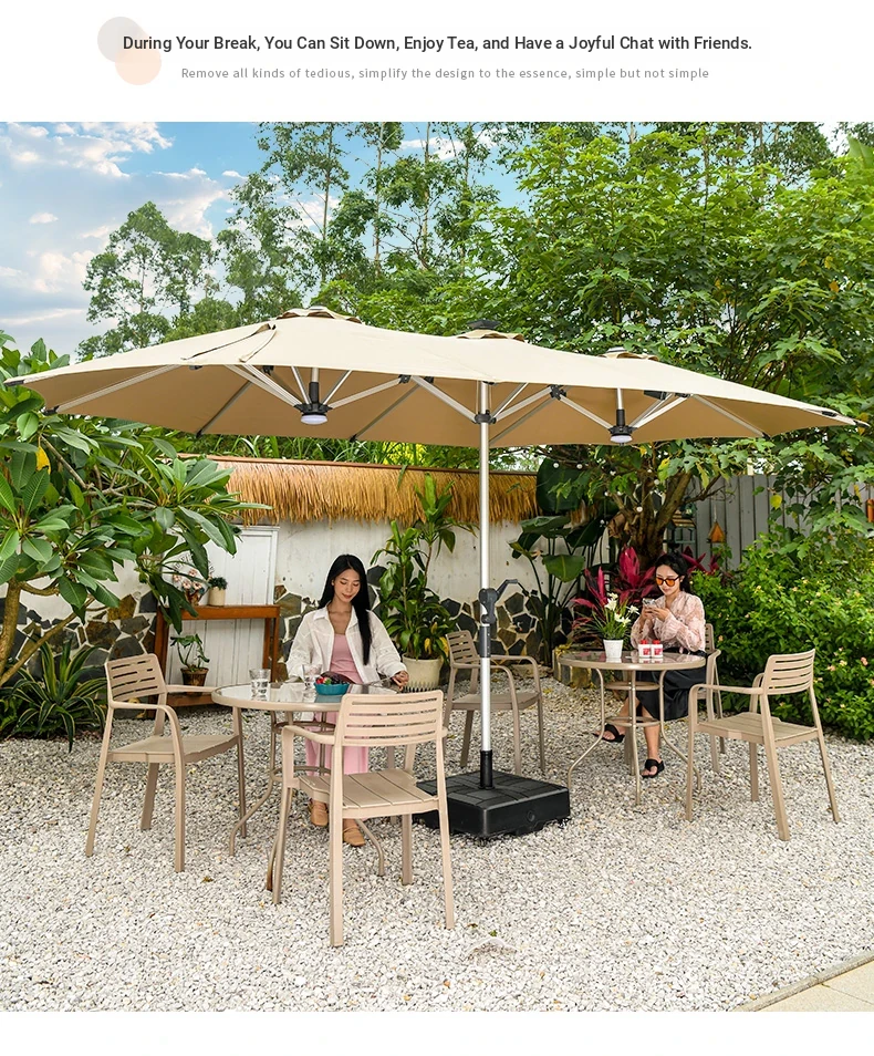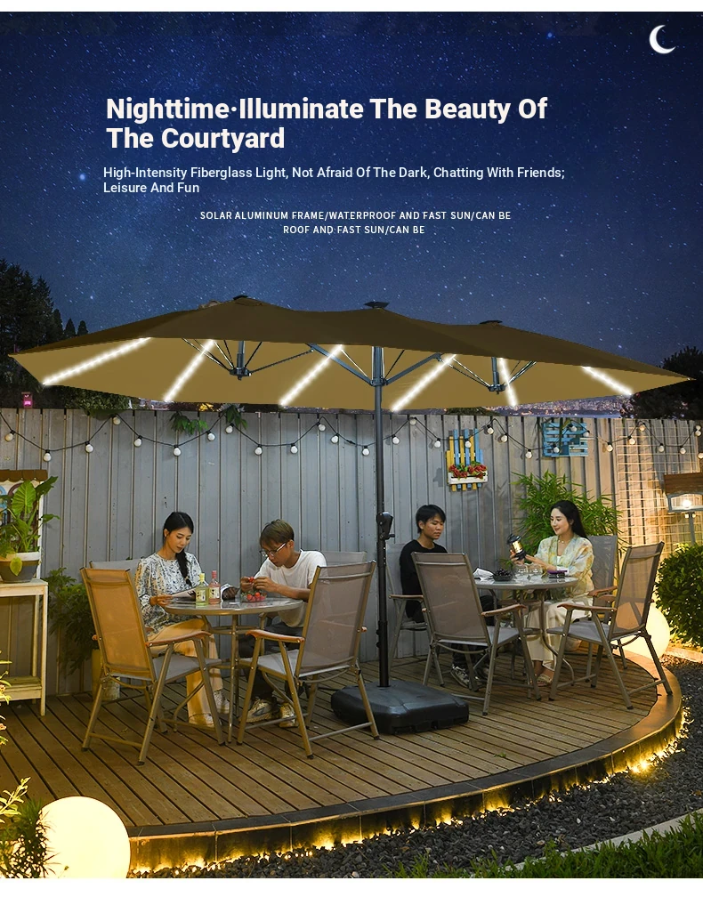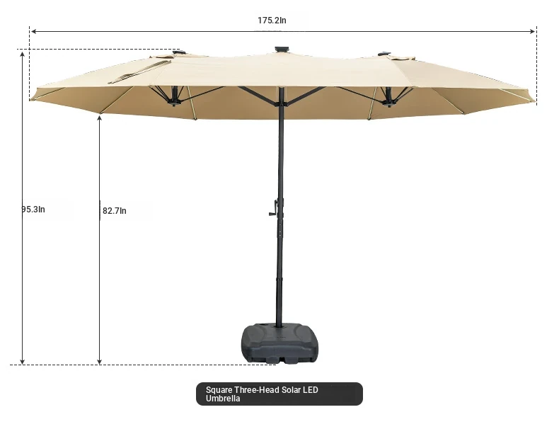 Three-headed solar-light bar umbrella with 60.00kg square wheeled base