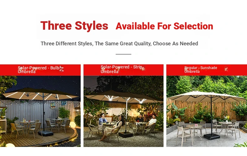 Three-headed solar-lamp-bead umbrella with 60.00kg square wheeled base