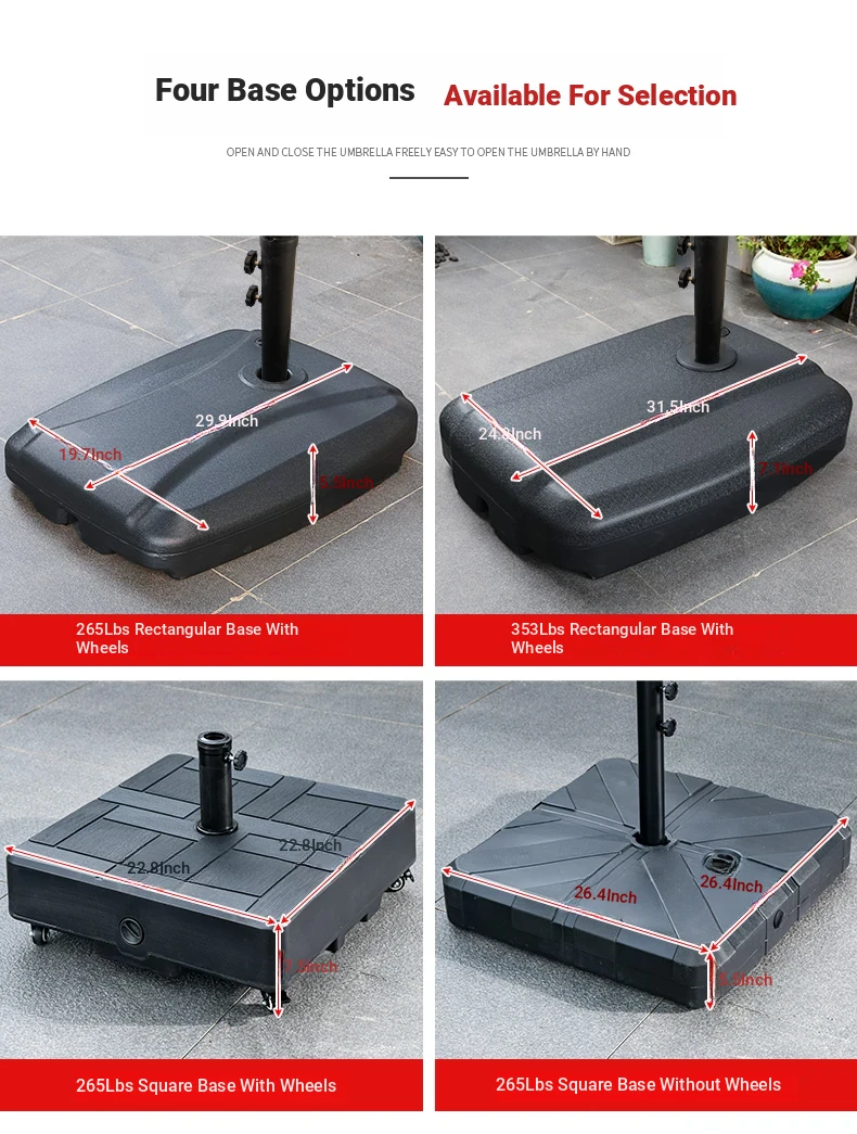 Three ordinary-sunshade with 80.00kg rectangular wheeled base