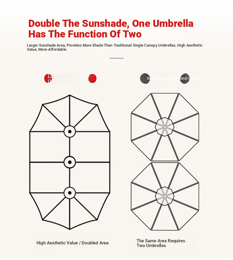 Three-headed ordinary-sunshade with 60.00kg Square non-wheeled base