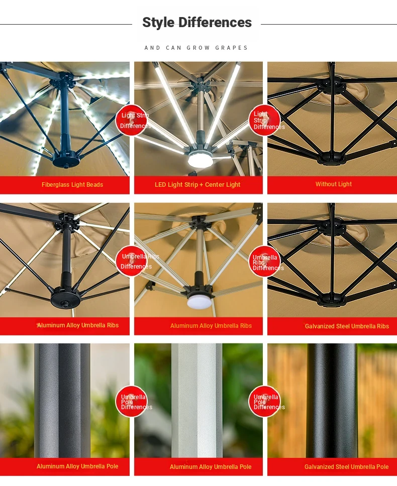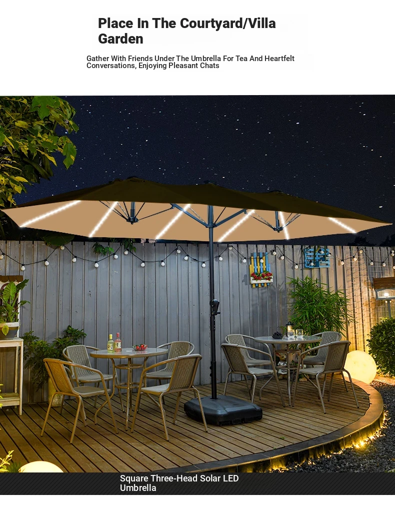 Three-headed solar-light bar umbrella with 60.00kg Square non-wheeled base