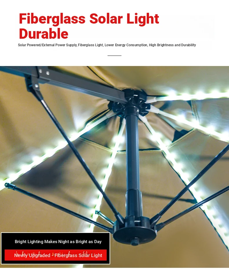 Three solar-bulb umbrella with 60.00kg rectangular wheeled base