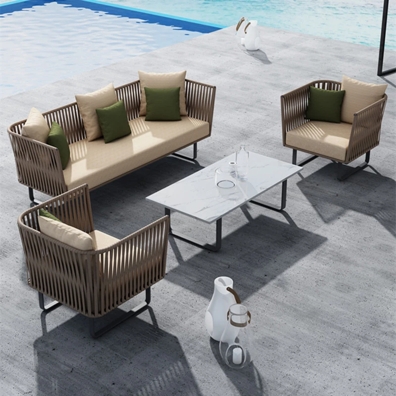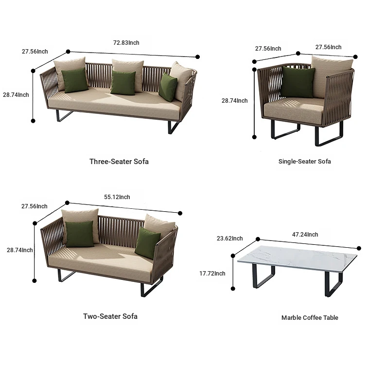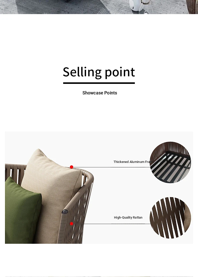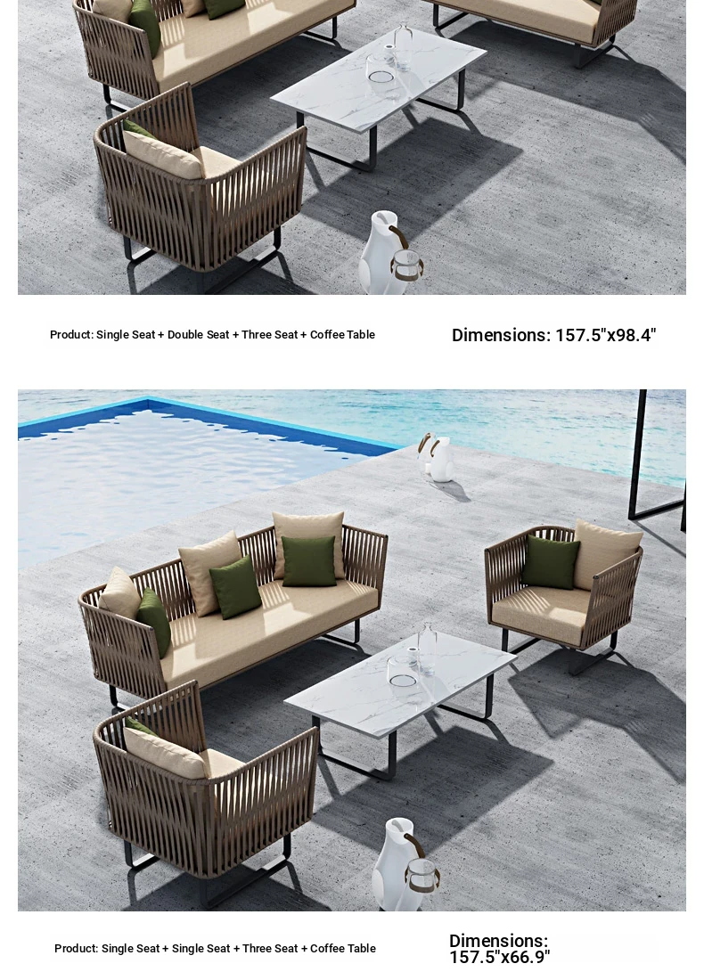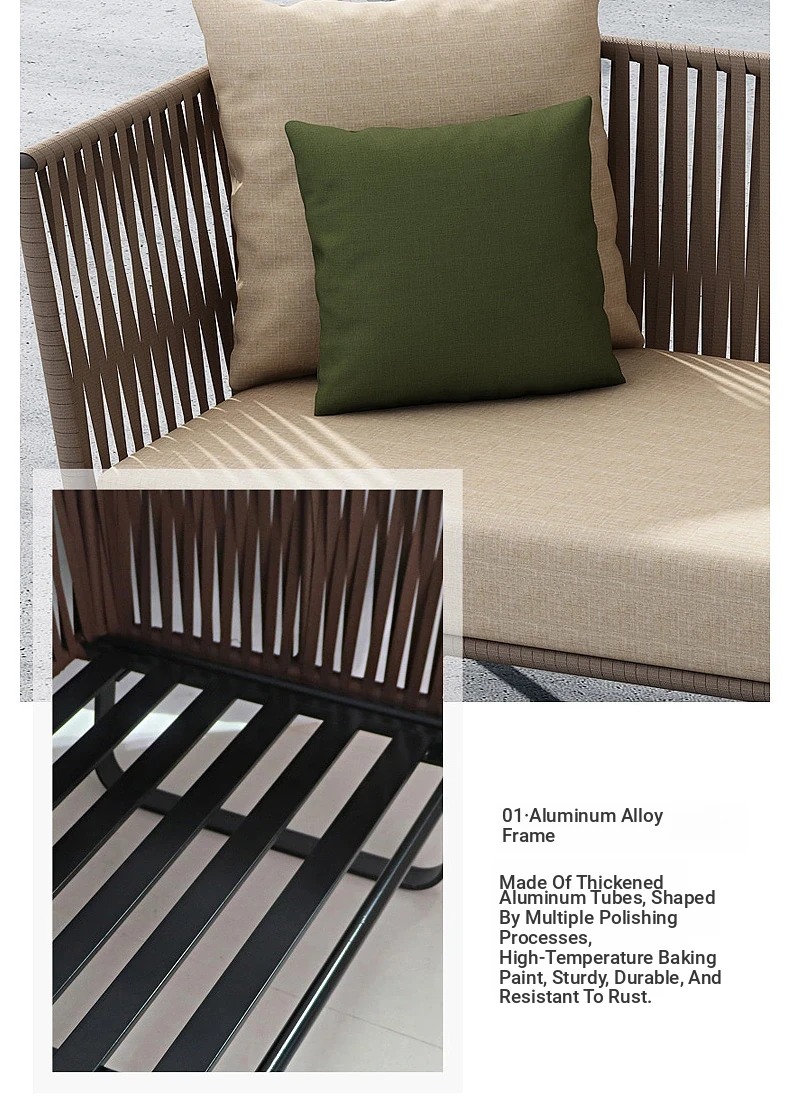 Single + Single + double + tea table (rattan + aluminum frame)
