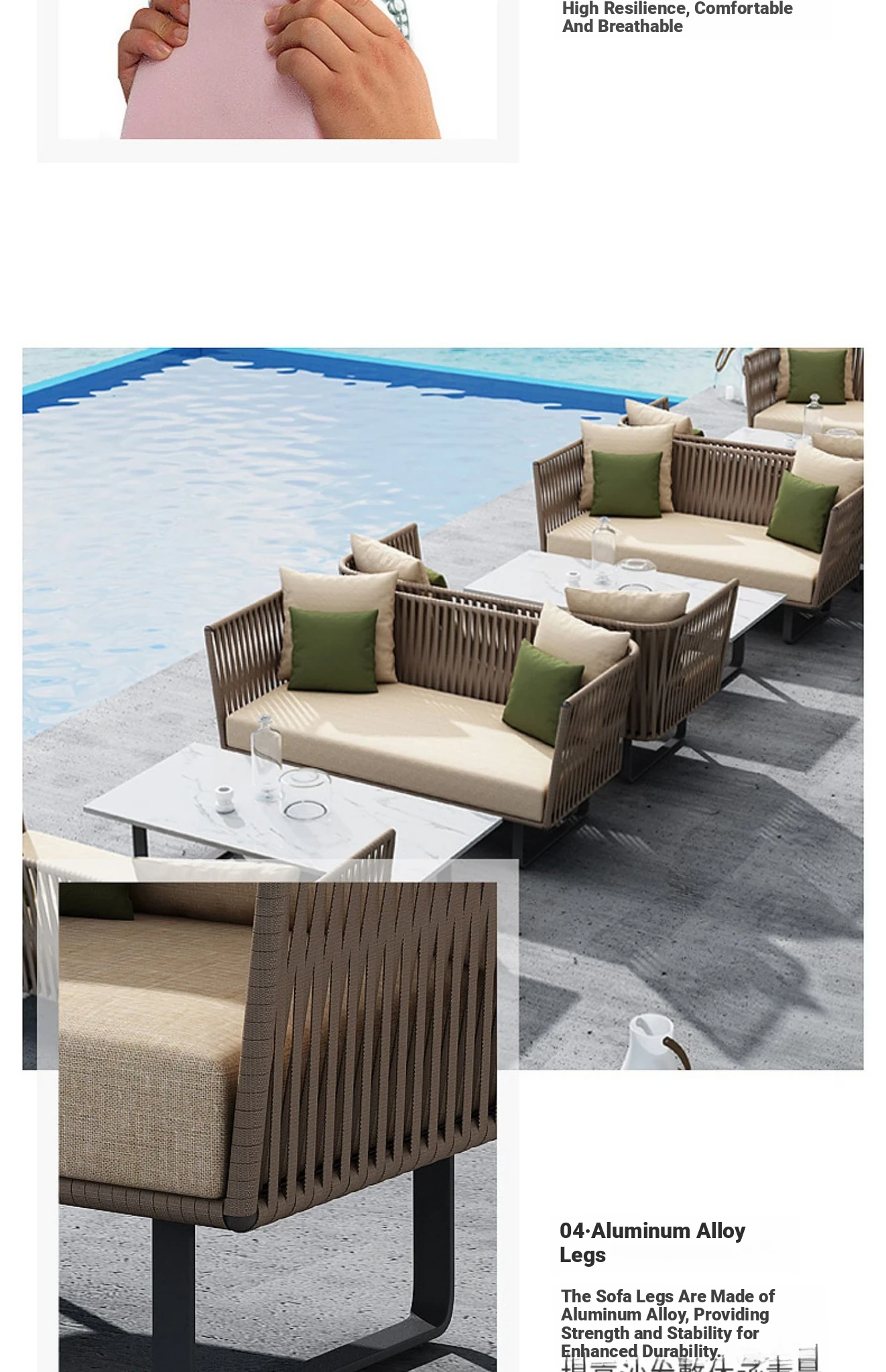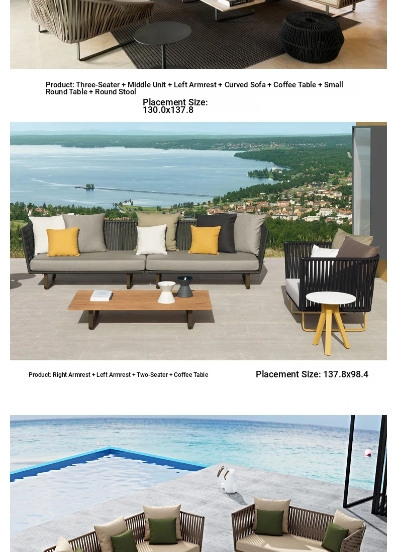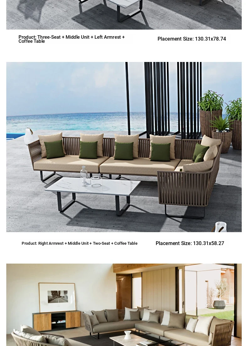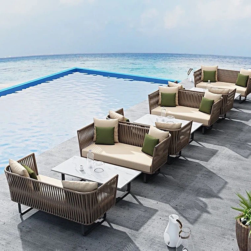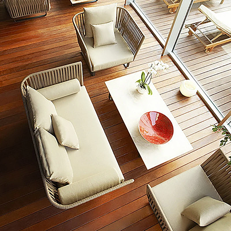 Single + Single + double + tea table (rattan + aluminum frame)