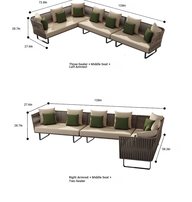 L-type set (rattan + aluminum frame)