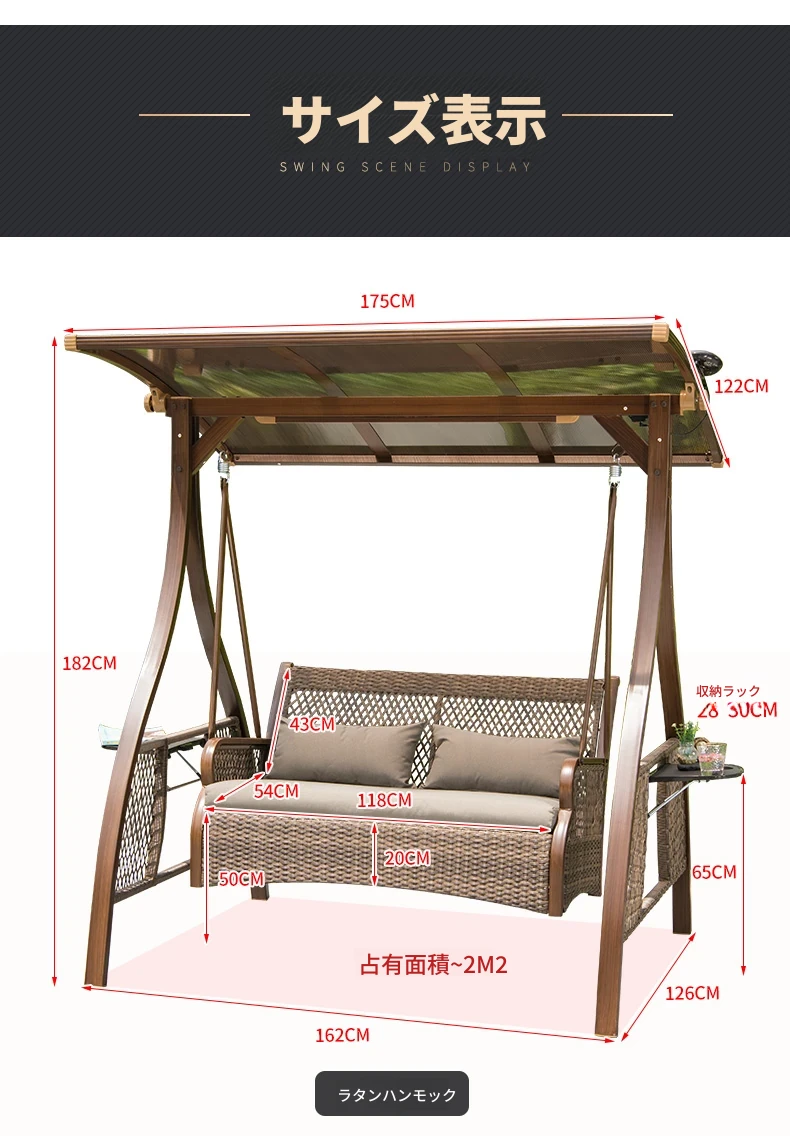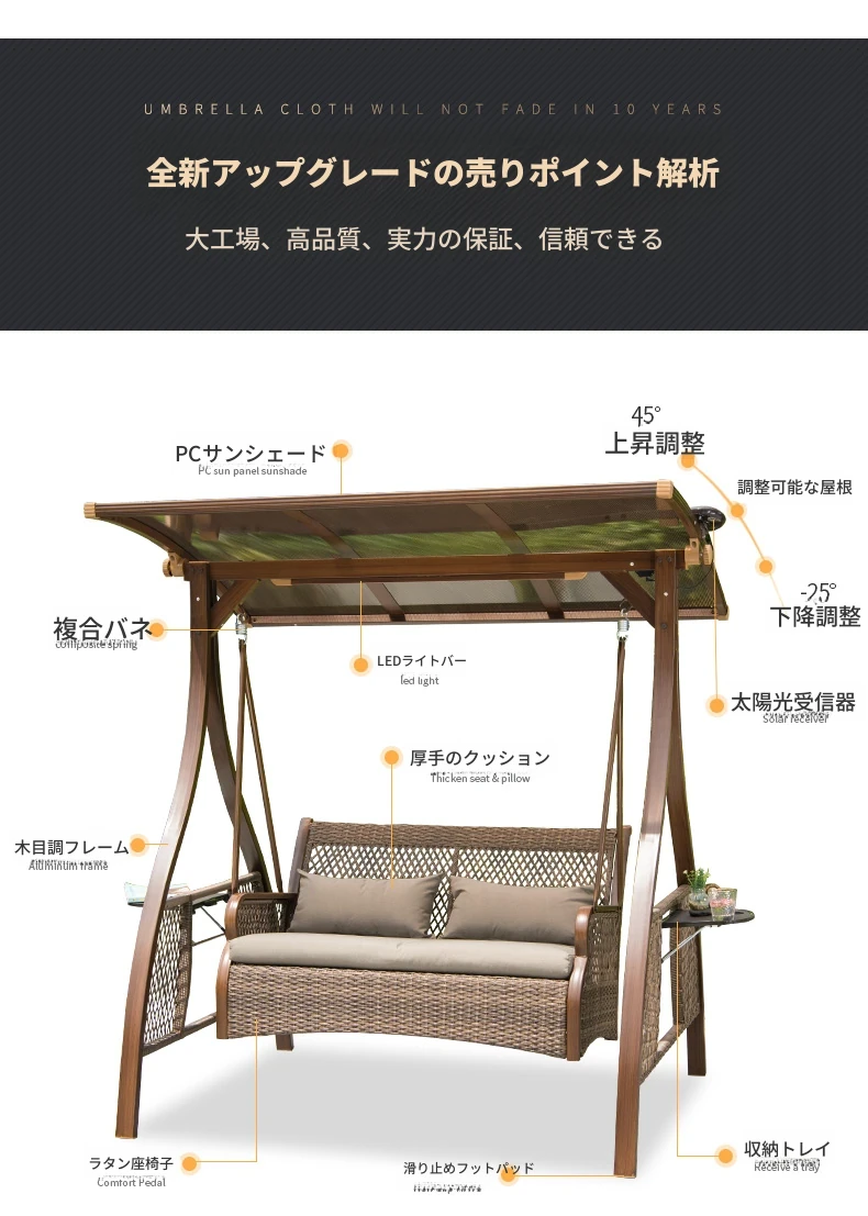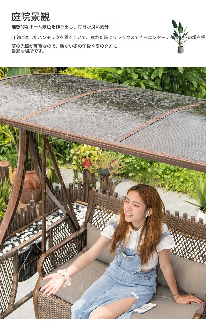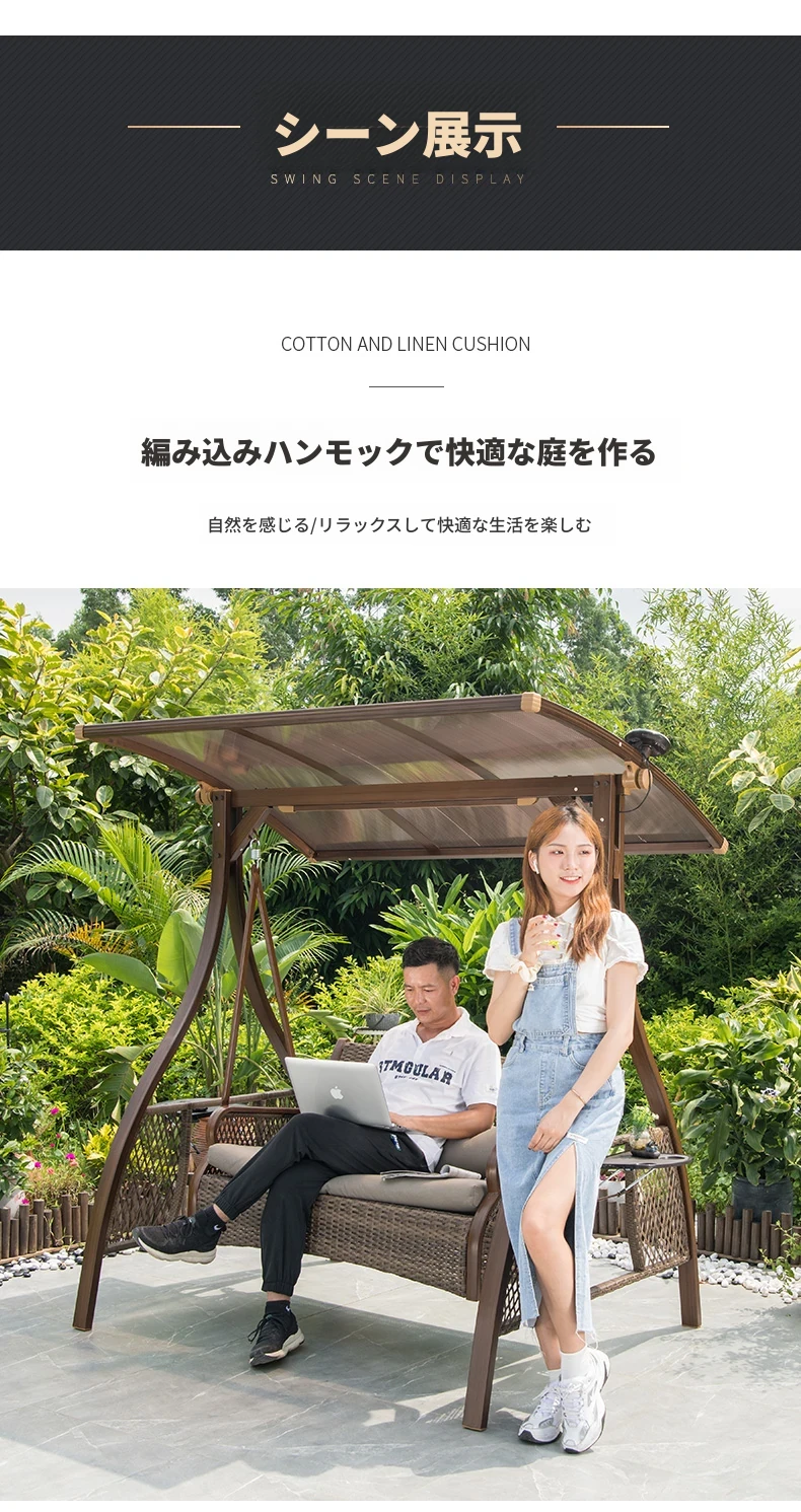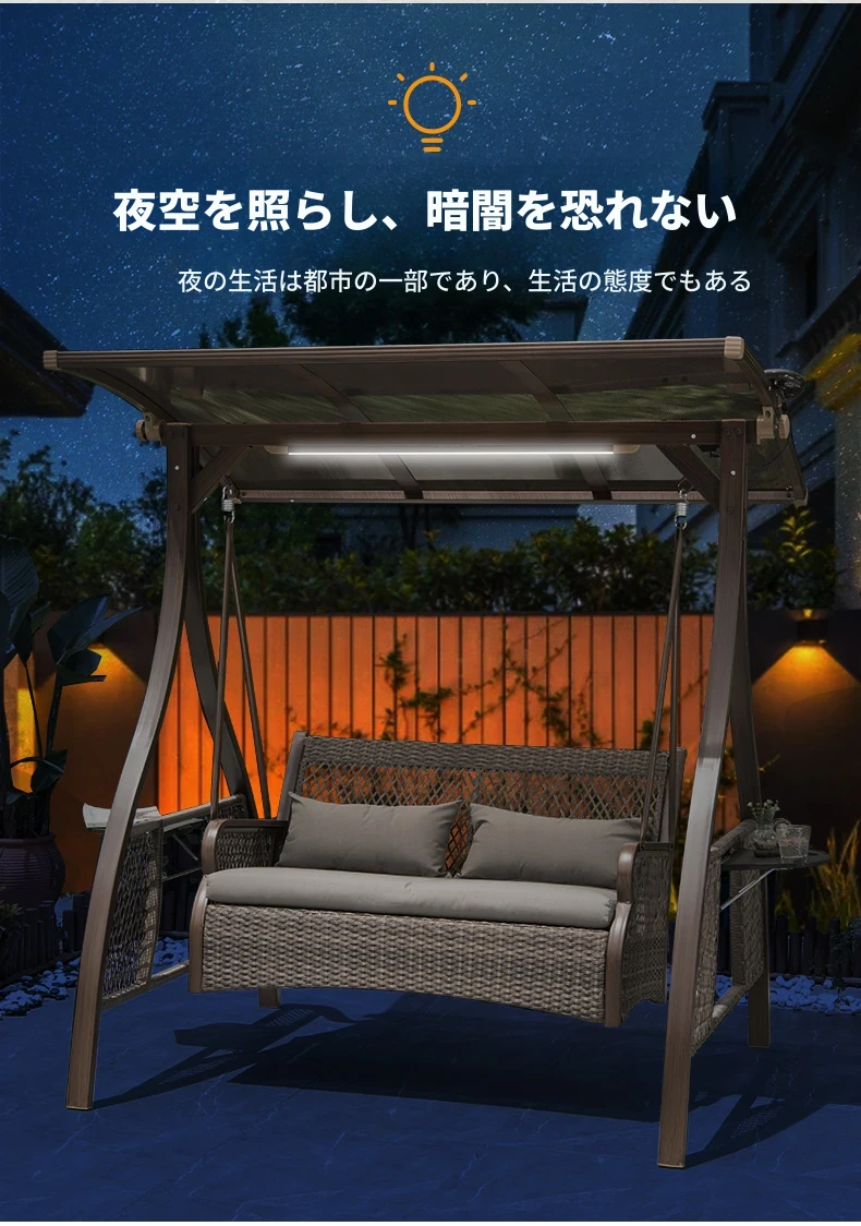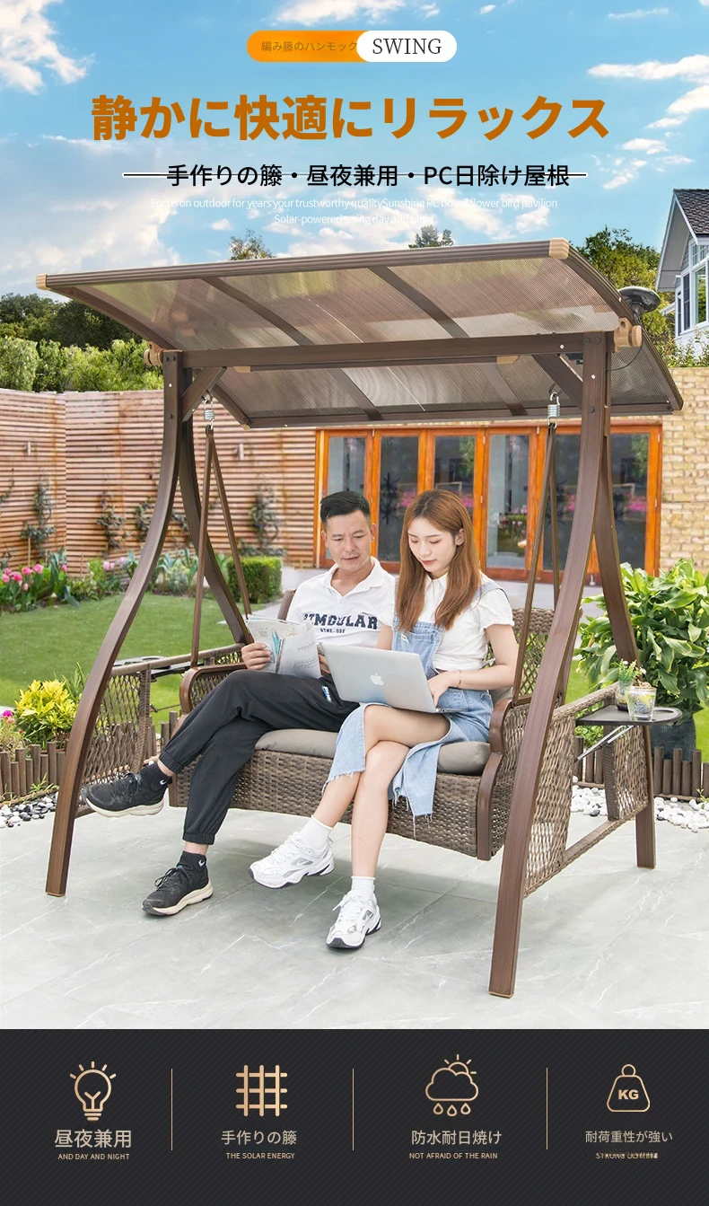 モ家アウトドア秋千サンライトパネル太陽光発電ハンモックバルコニー用屋外ダブルシートリクライニングチェア大人用庭園用