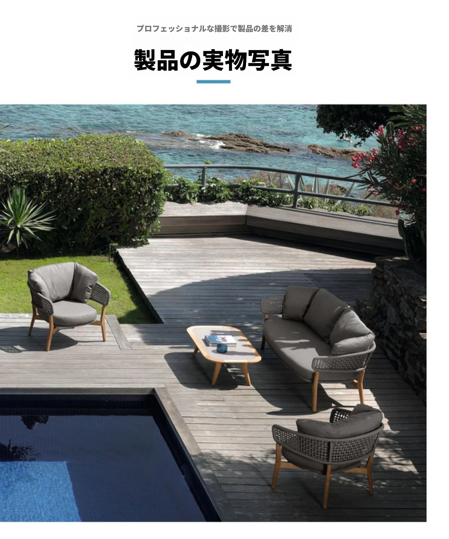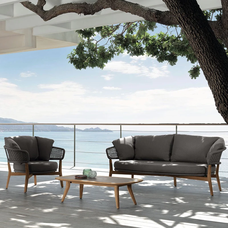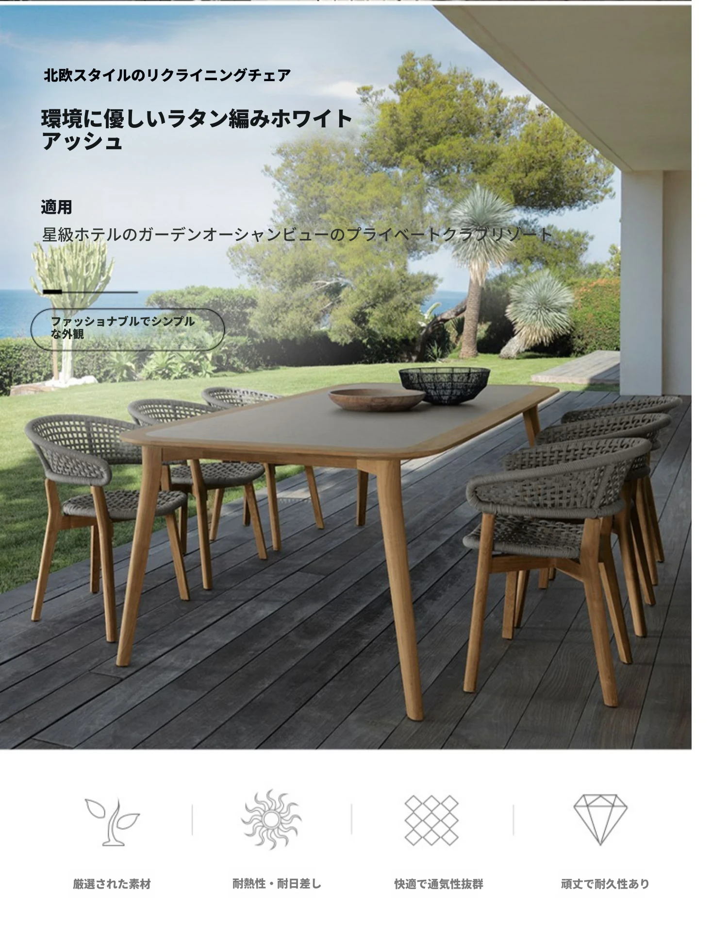 モ家のアウトドアテーブルセット - 創造的なラタン椅子とソファ、別荘のサンルームや庭に最適なリラックス空間を提供します。おしゃれで快適なひとときをお楽しみください!