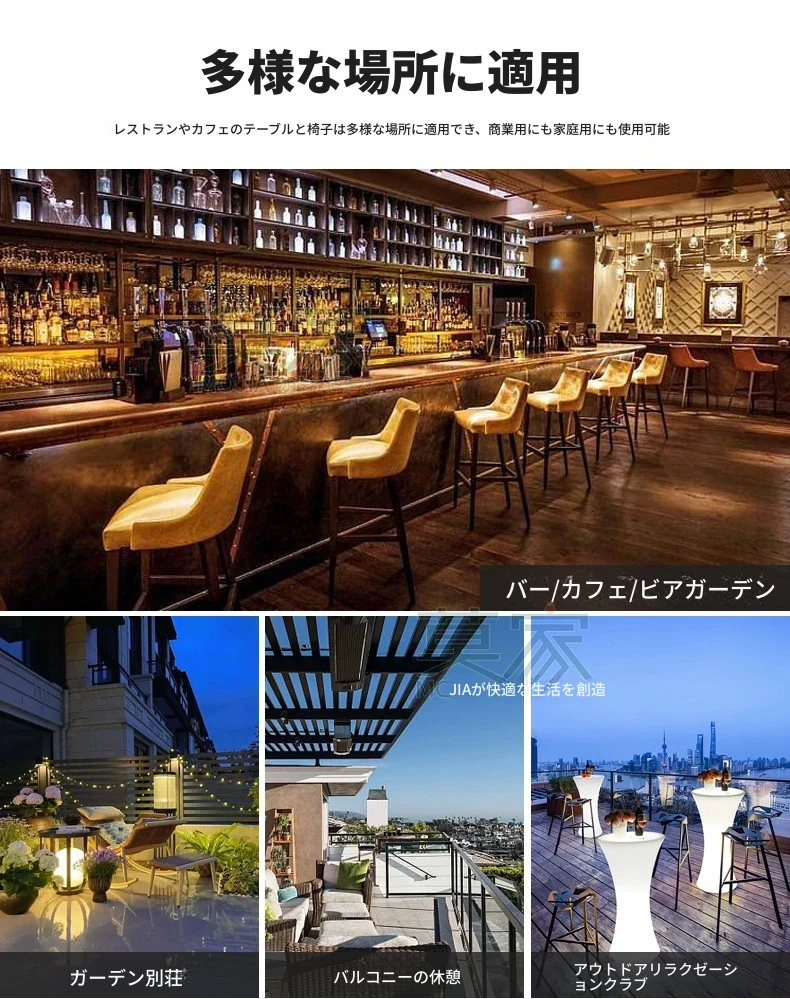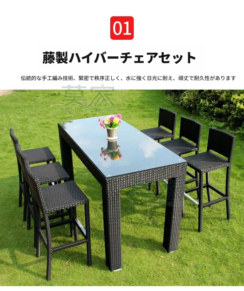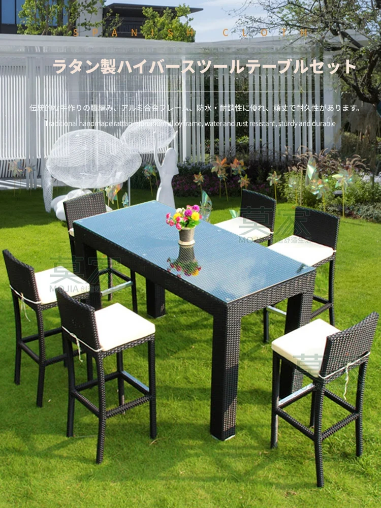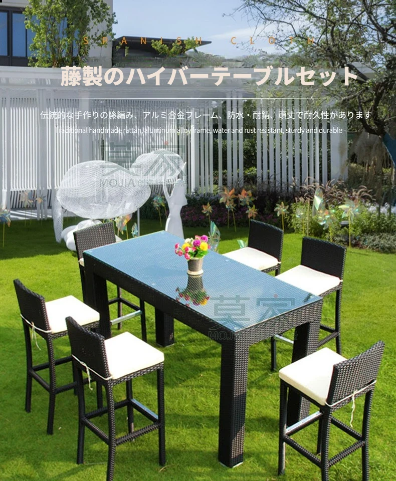 Aタイプ:6バーチェア+180CMバーカウンター長テーブル【アルミフレーム】