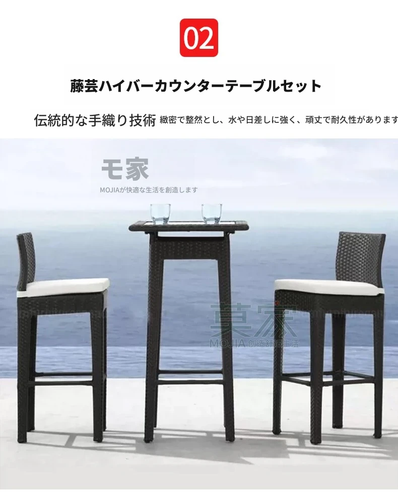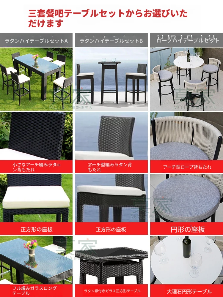 Bタイプ:2バーチェア+50CMバーカウンター角テーブル【アルミフレーム】