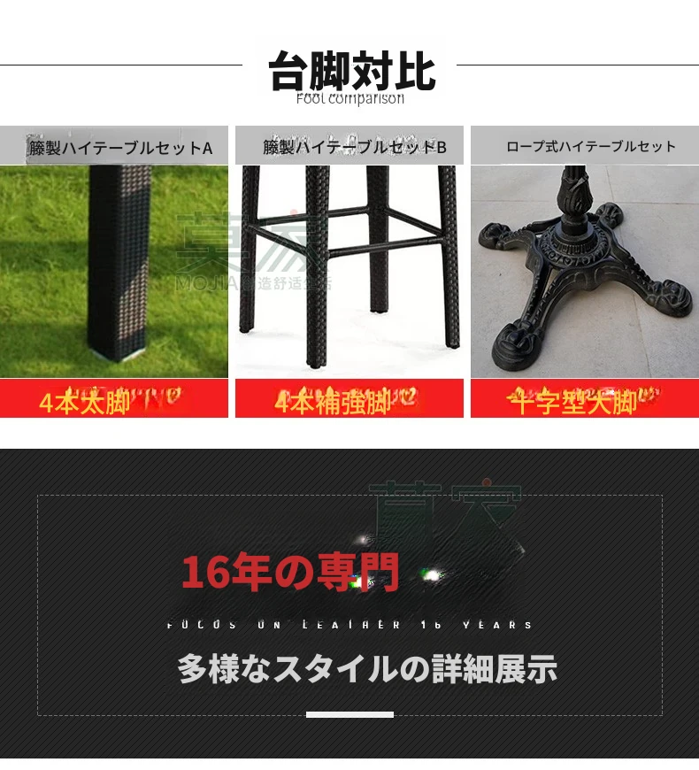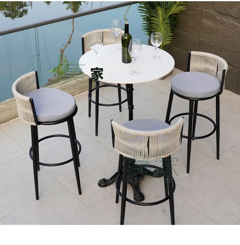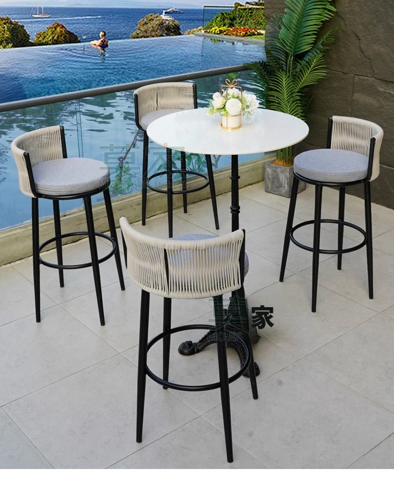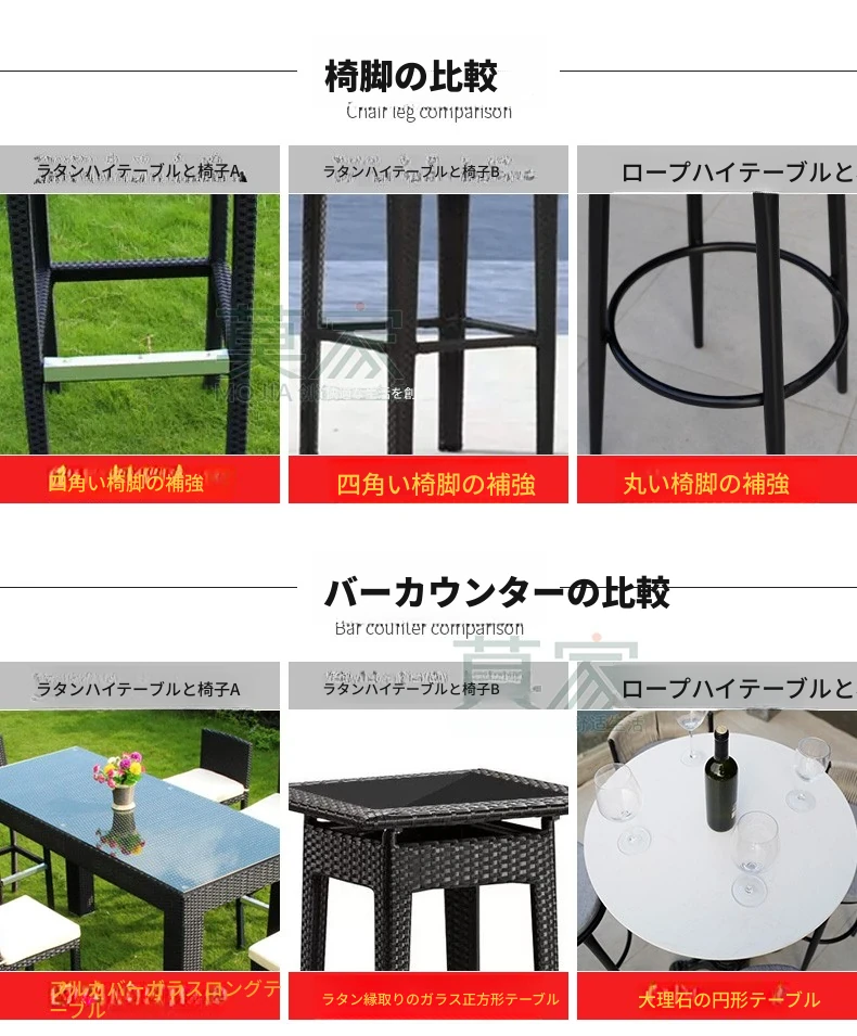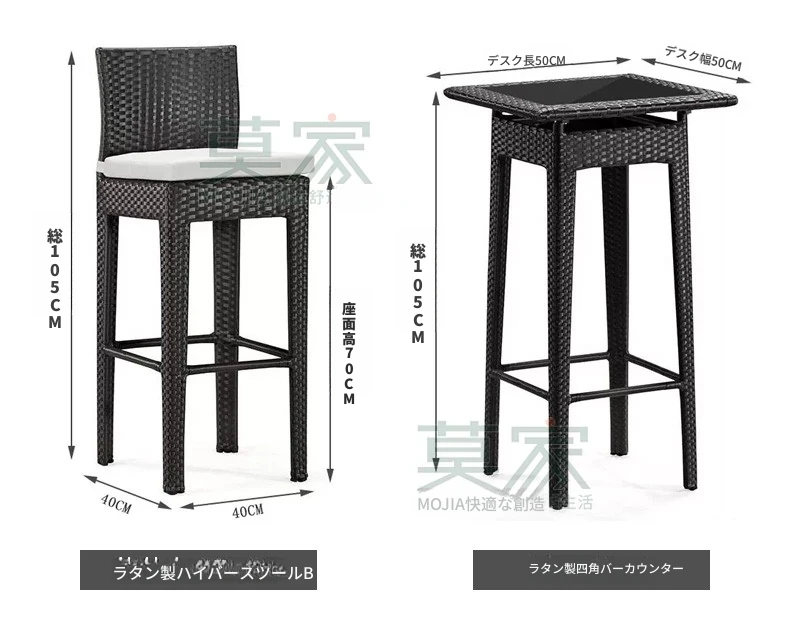 Bタイプ:4バーチェア+50CMバーカウンター角テーブル【アルミフレーム】