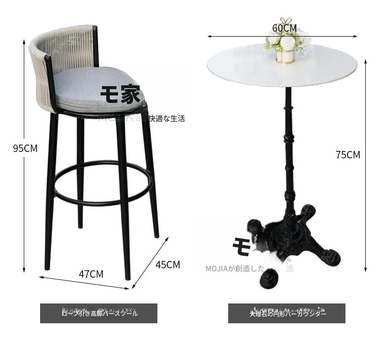 Cタイプ:2バーチェア+60CMバーカウンター丸テーブル【アルミフレーム】