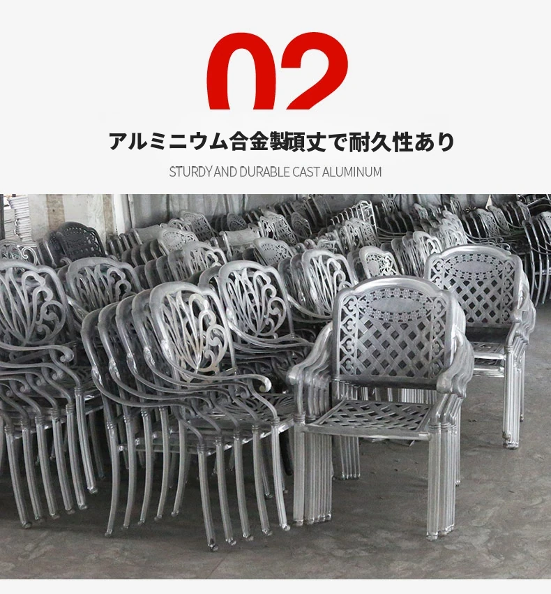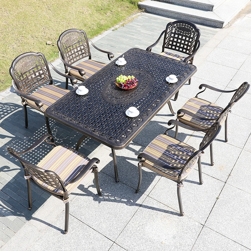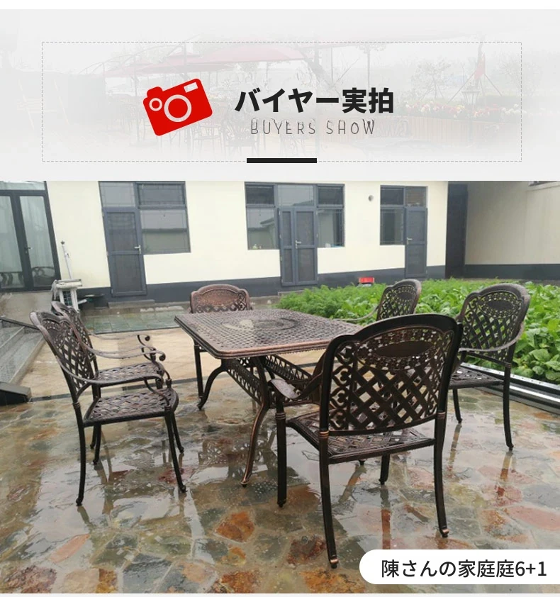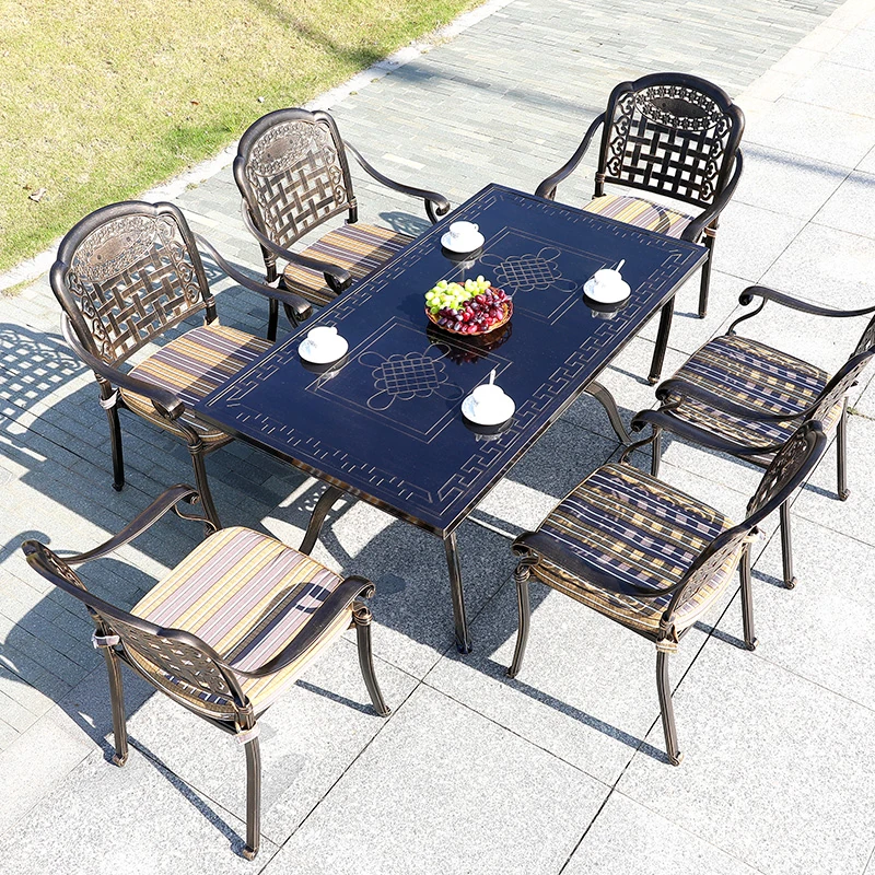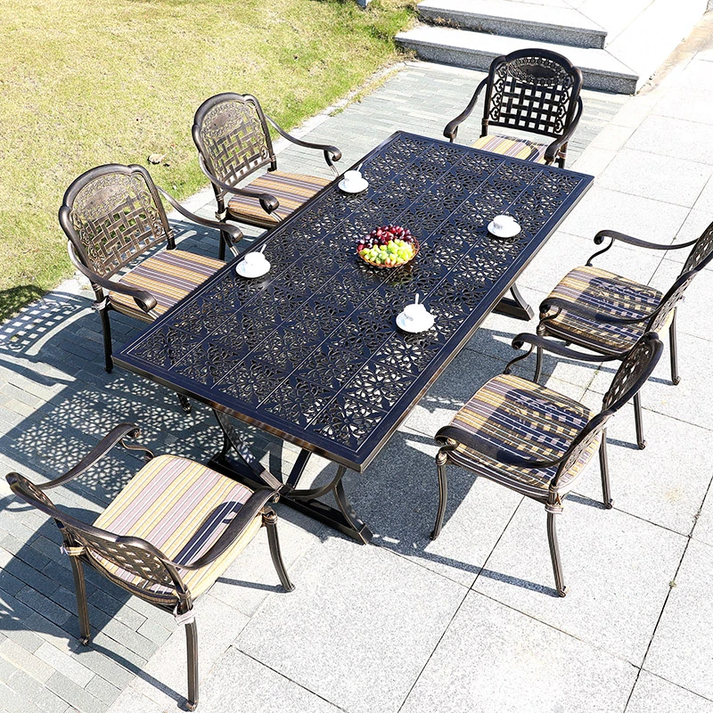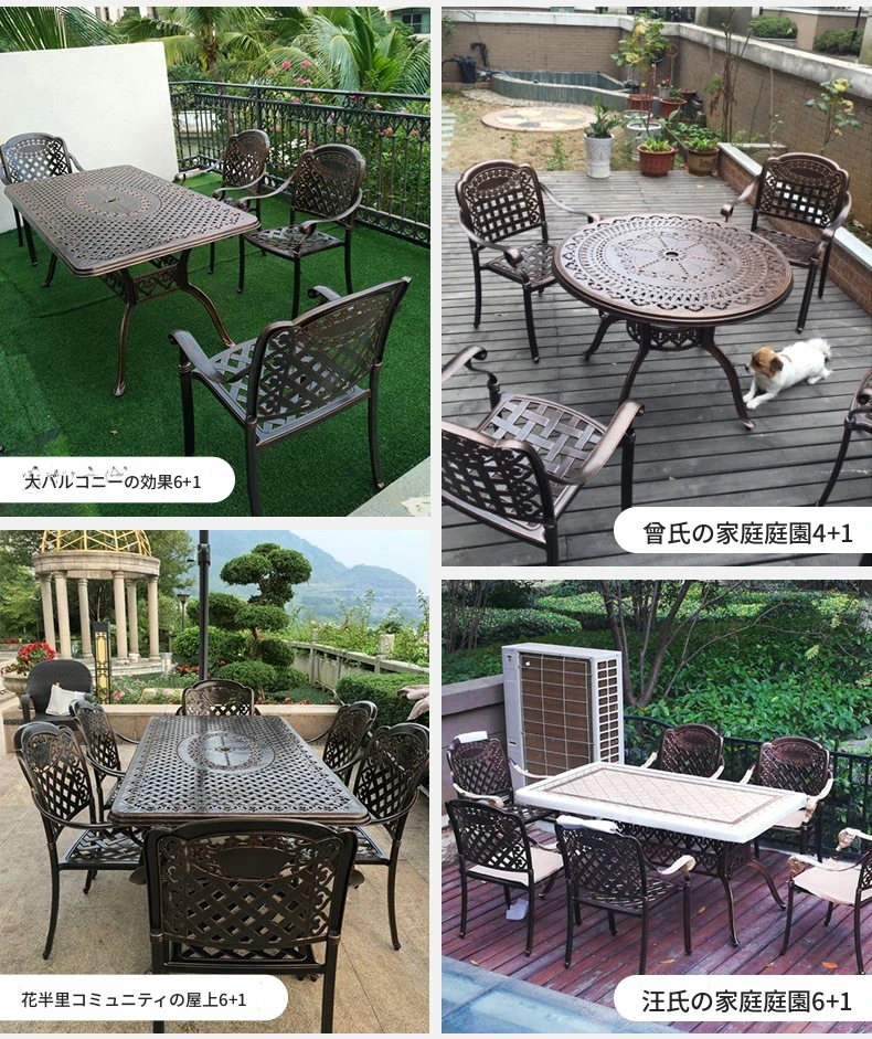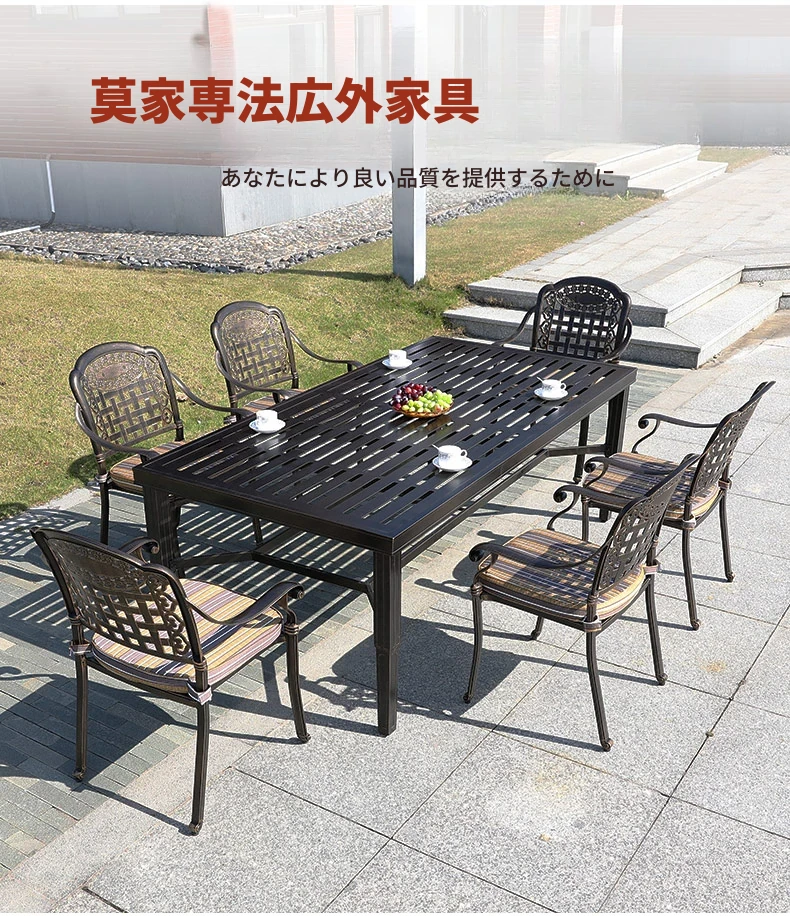 6+1【200*100CM透かし彫りアルミニウム製ロングテーブル付き】