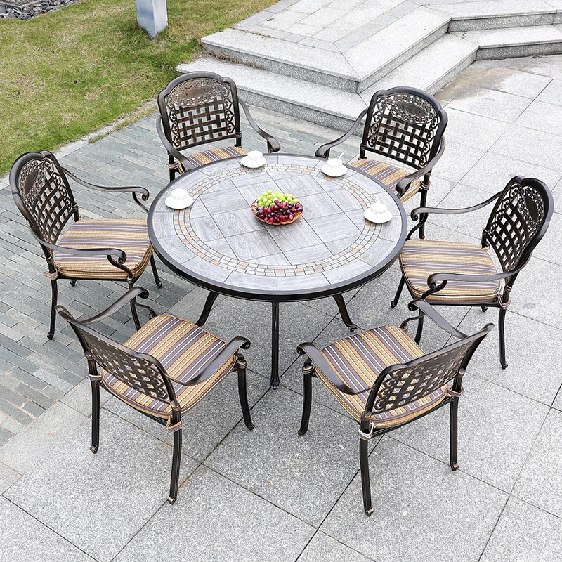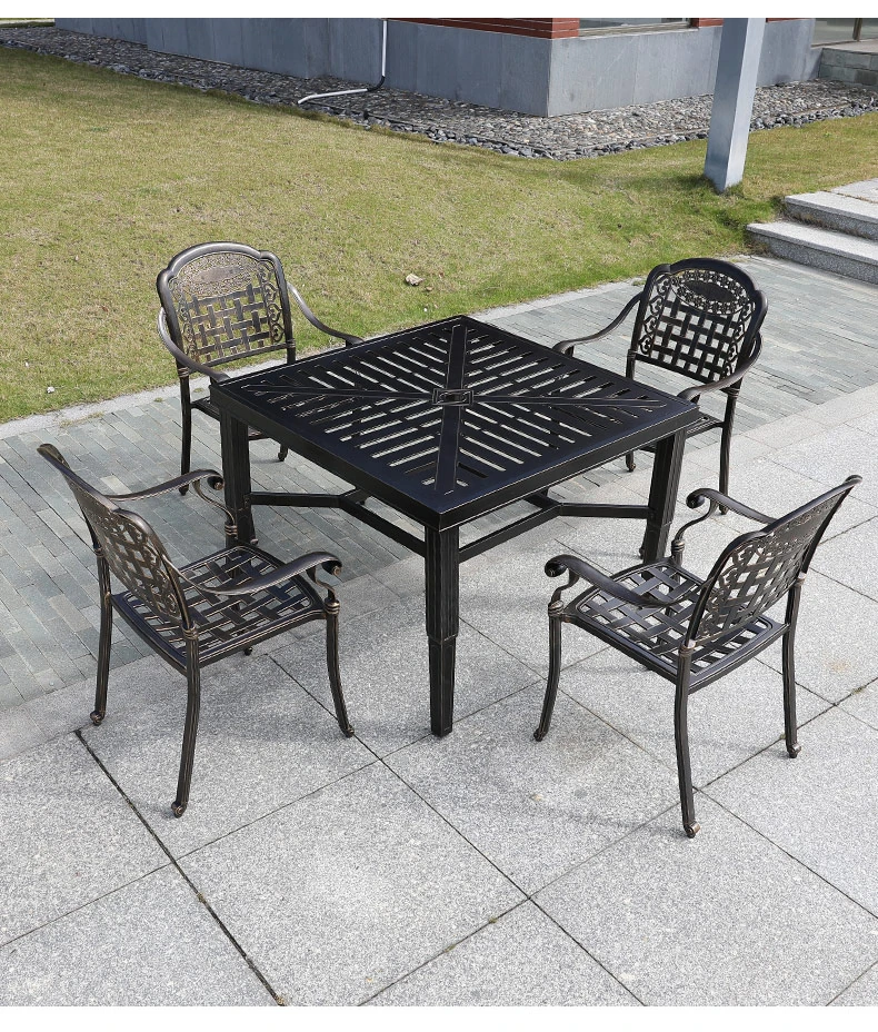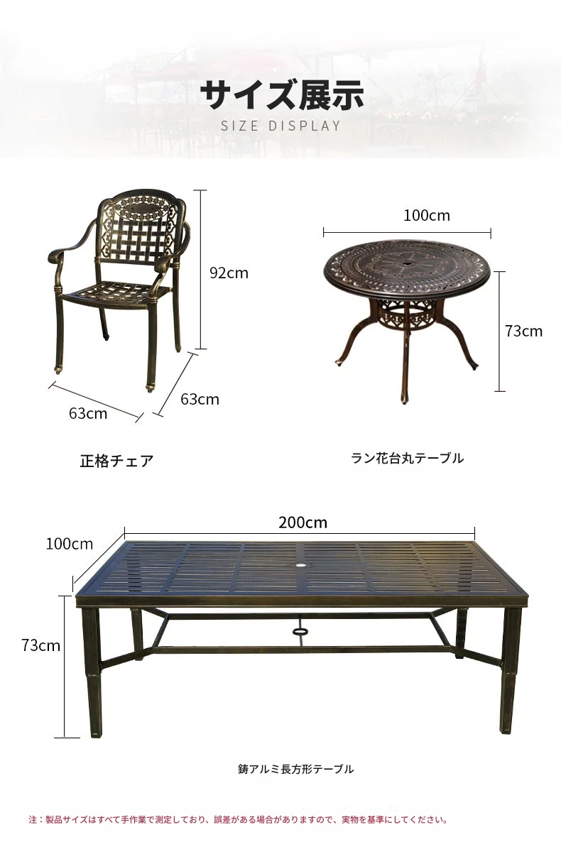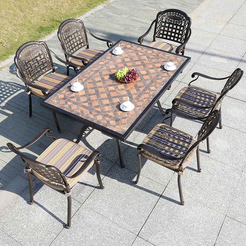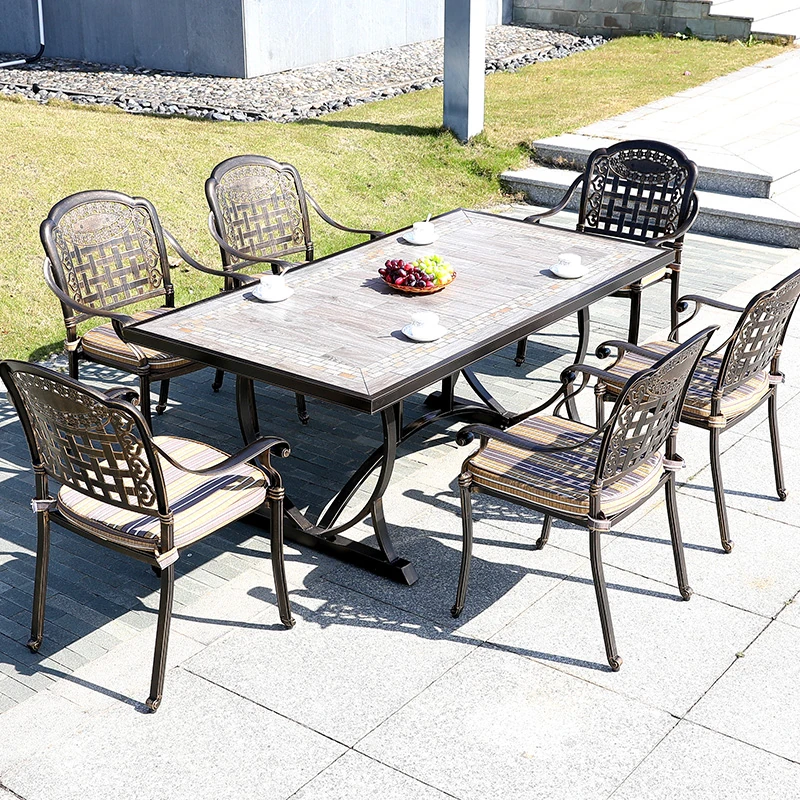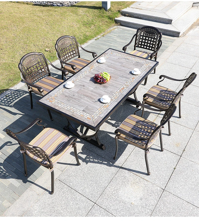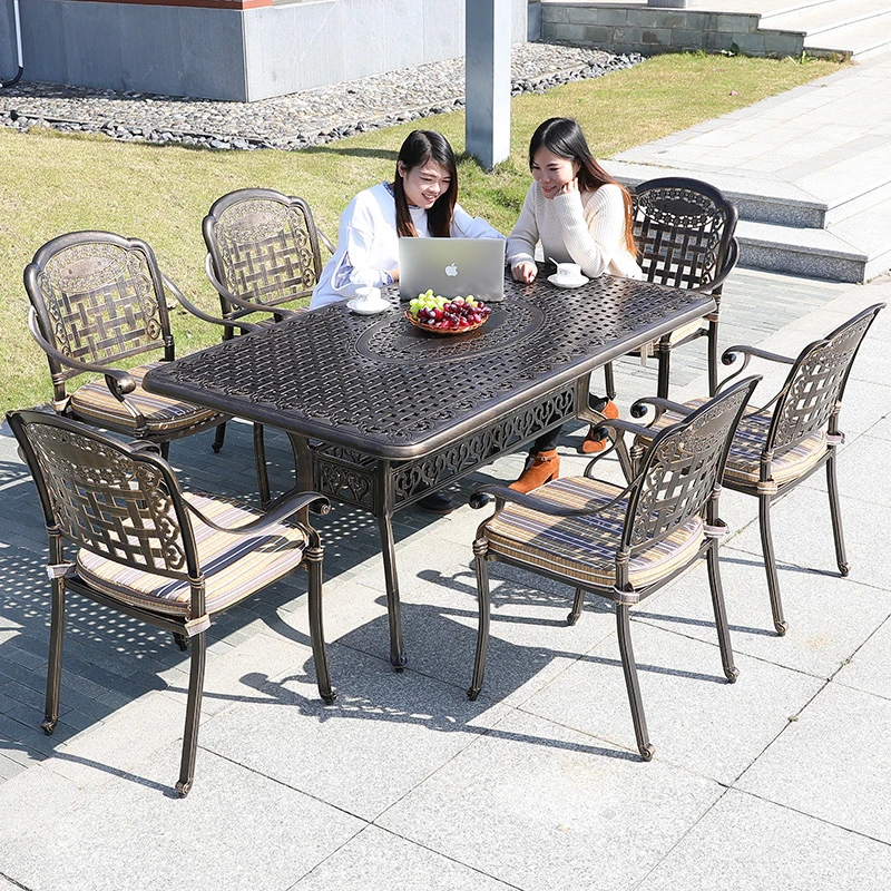 6+1【200*100CM透かし彫りアルミニウム製ロングテーブル付き】