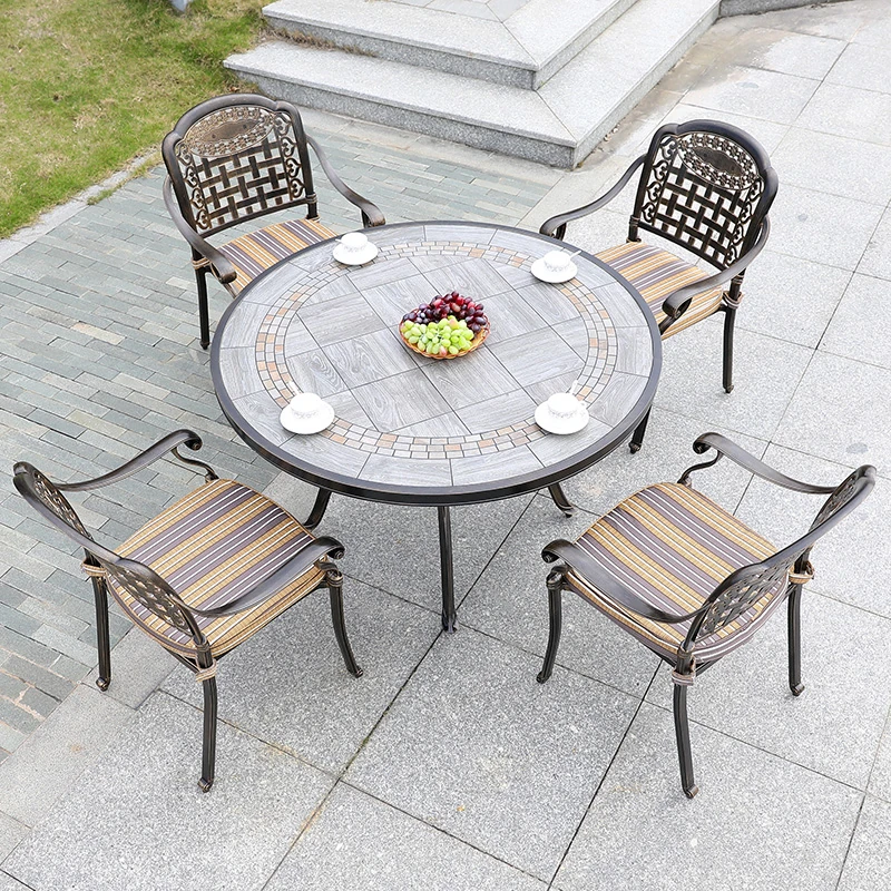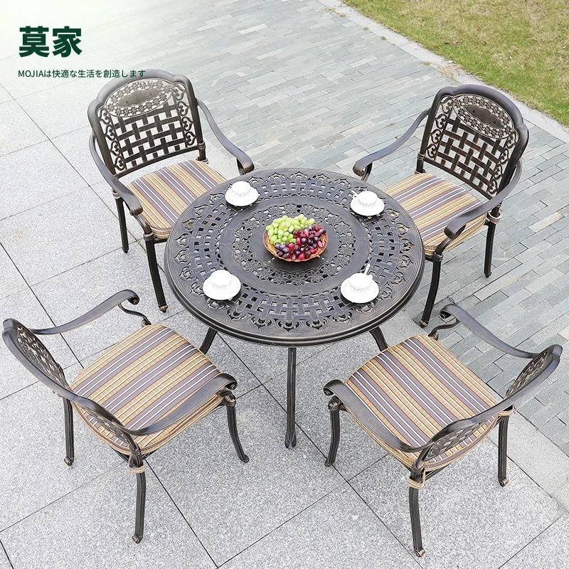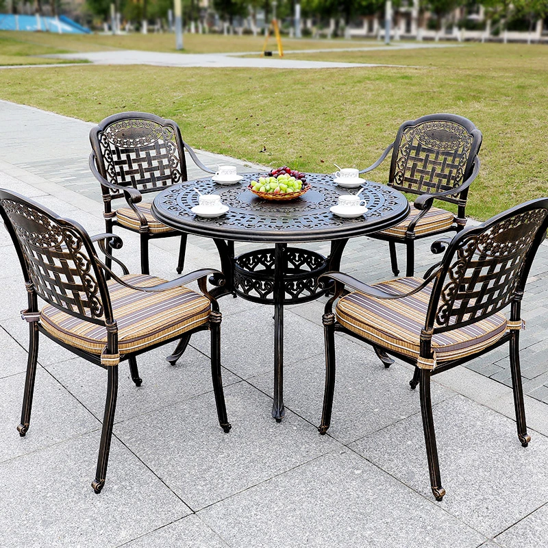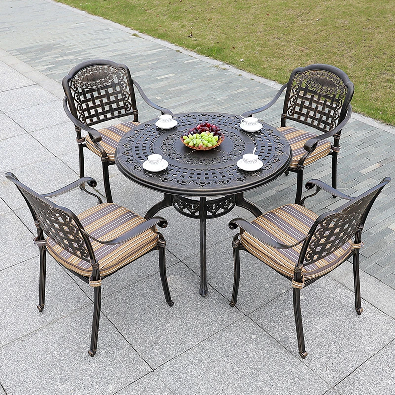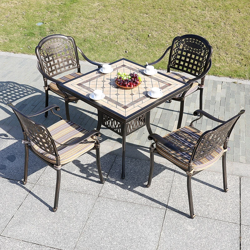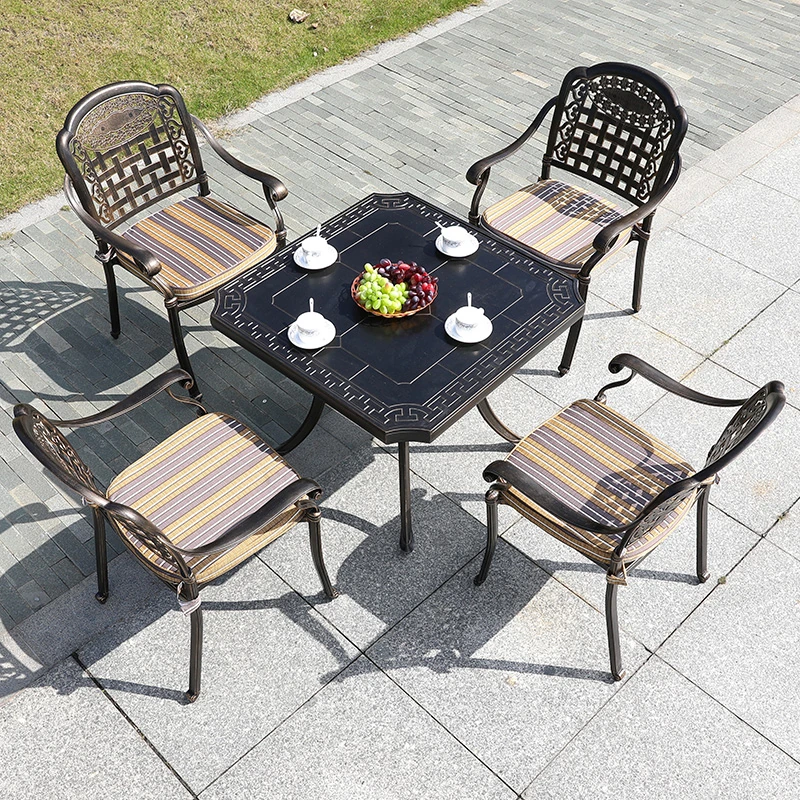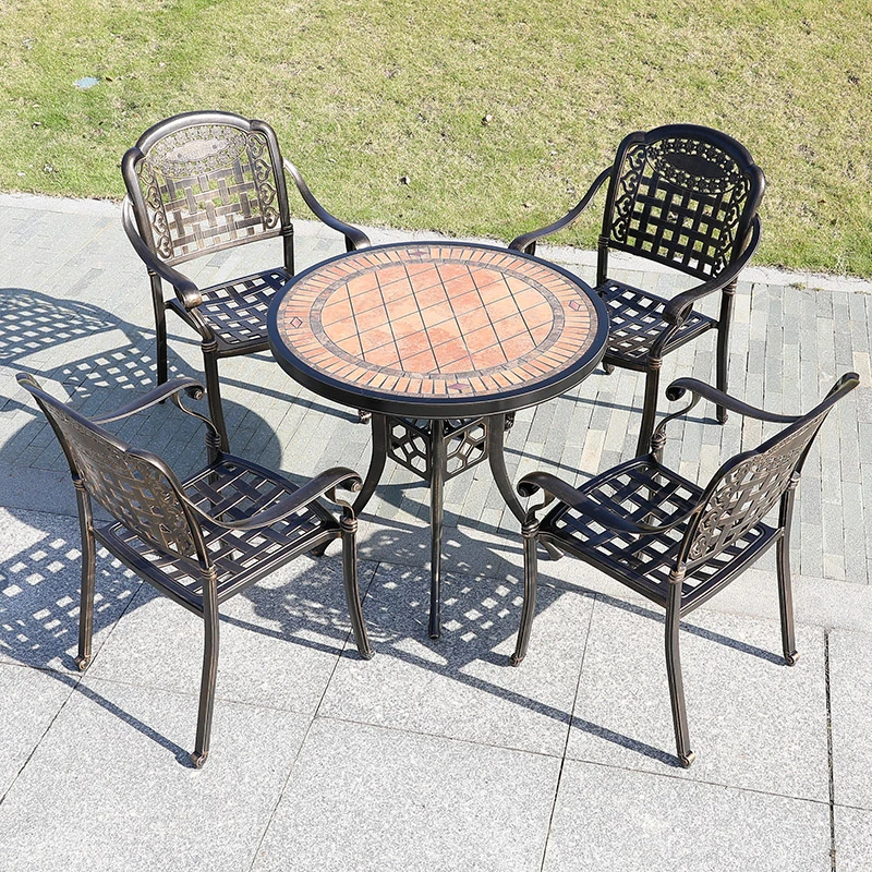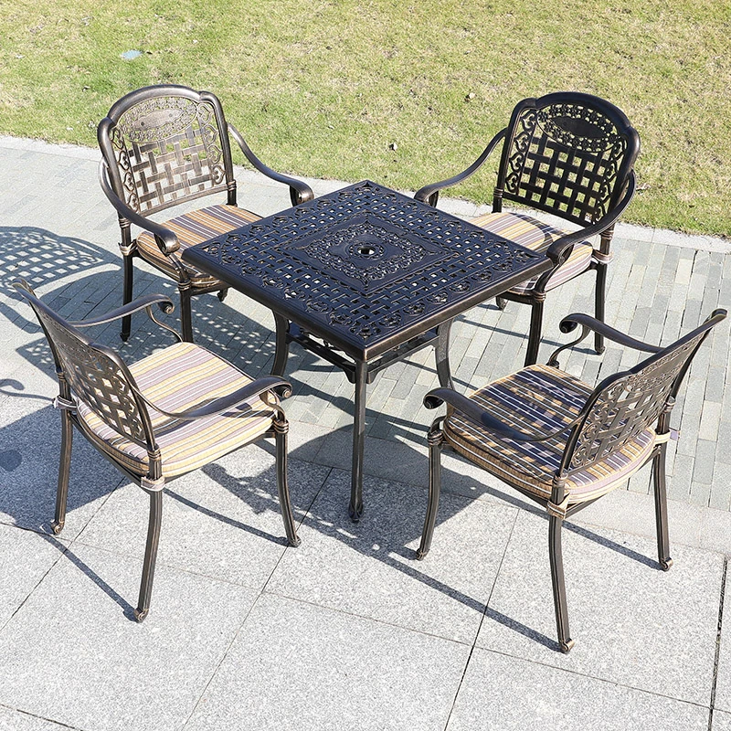 6+1【200*100CM透かし彫りアルミニウム製ロングテーブル付き】