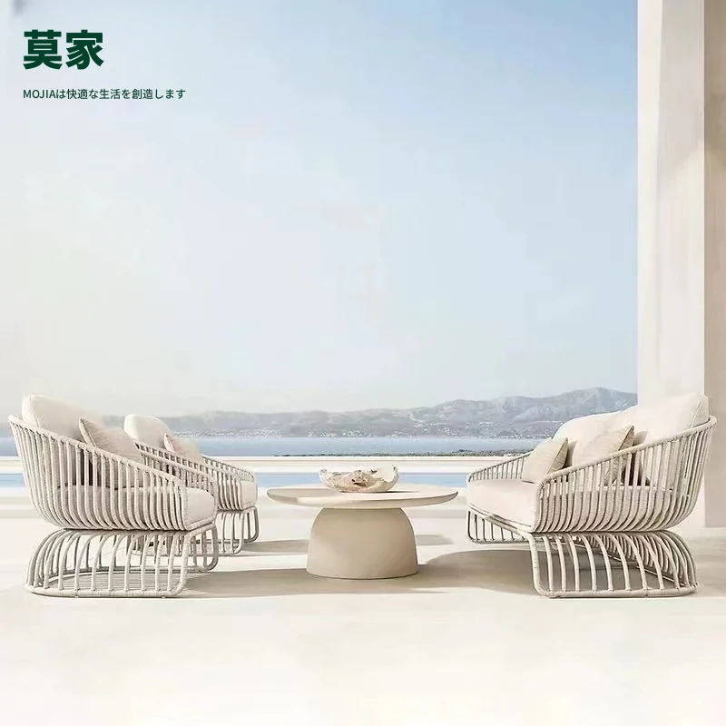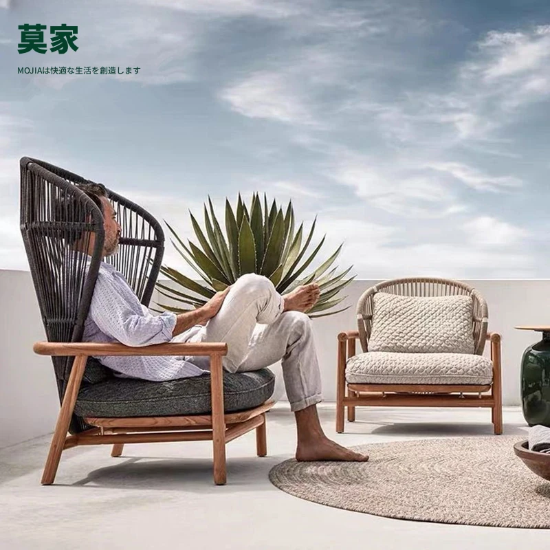 モ家北欧スタイルのアウトドアソファ|デザイナーホテル庭園用ラタンチェア|リラクゼーションに最適なクリエイティブ家具|別荘やガーデンにぴったりのスタイリッシュな選択!