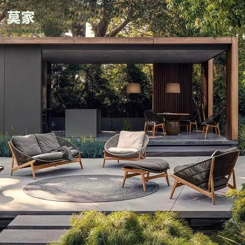モ家北欧スタイルのアウトドアソファー|庭やホテルのための高級クリエイティブなロープ編み家具|リラクゼーションを極めたヴィラ用チェア【おしゃれで快適な空間を演出】