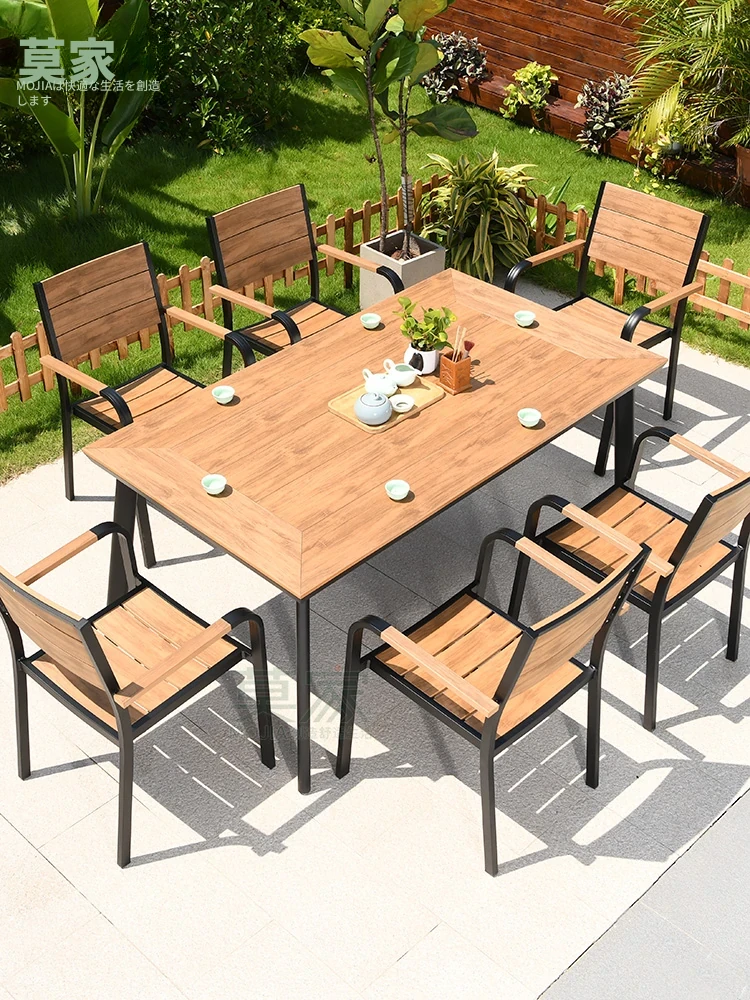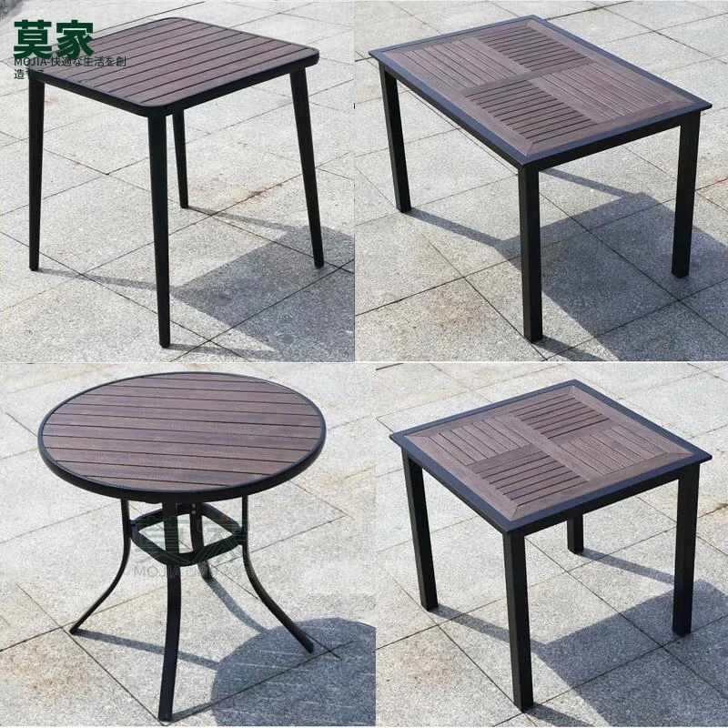 モ家のアウトドアプラスチックウッドテーブル|リラックス家具|庭やバルコニーにぴったりのオシャレな屋外用スクエア&ロングテーブル|人気の別荘スタイルで、友達や家族との楽しいひとときを演出します!