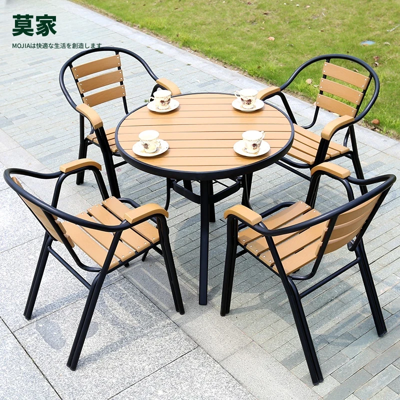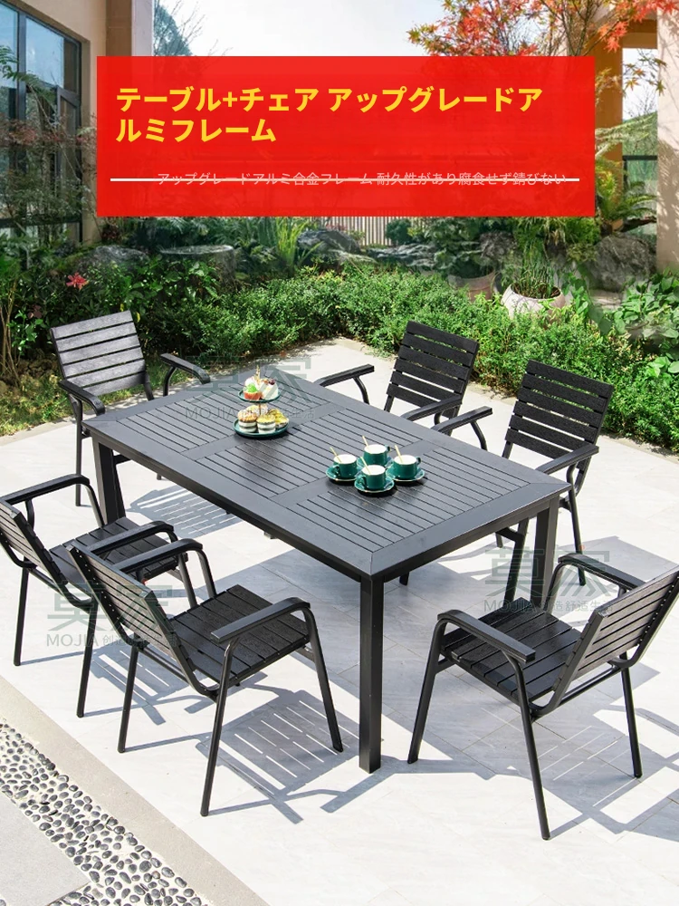 モ家アウトドアテーブル&チェアセット - 庭や別荘、ガーデン、テラス、バルコニーに最適なリラックス空間を提供!アルミ合金とプラスチックウッドを使用した耐久性抜群のデザイン。