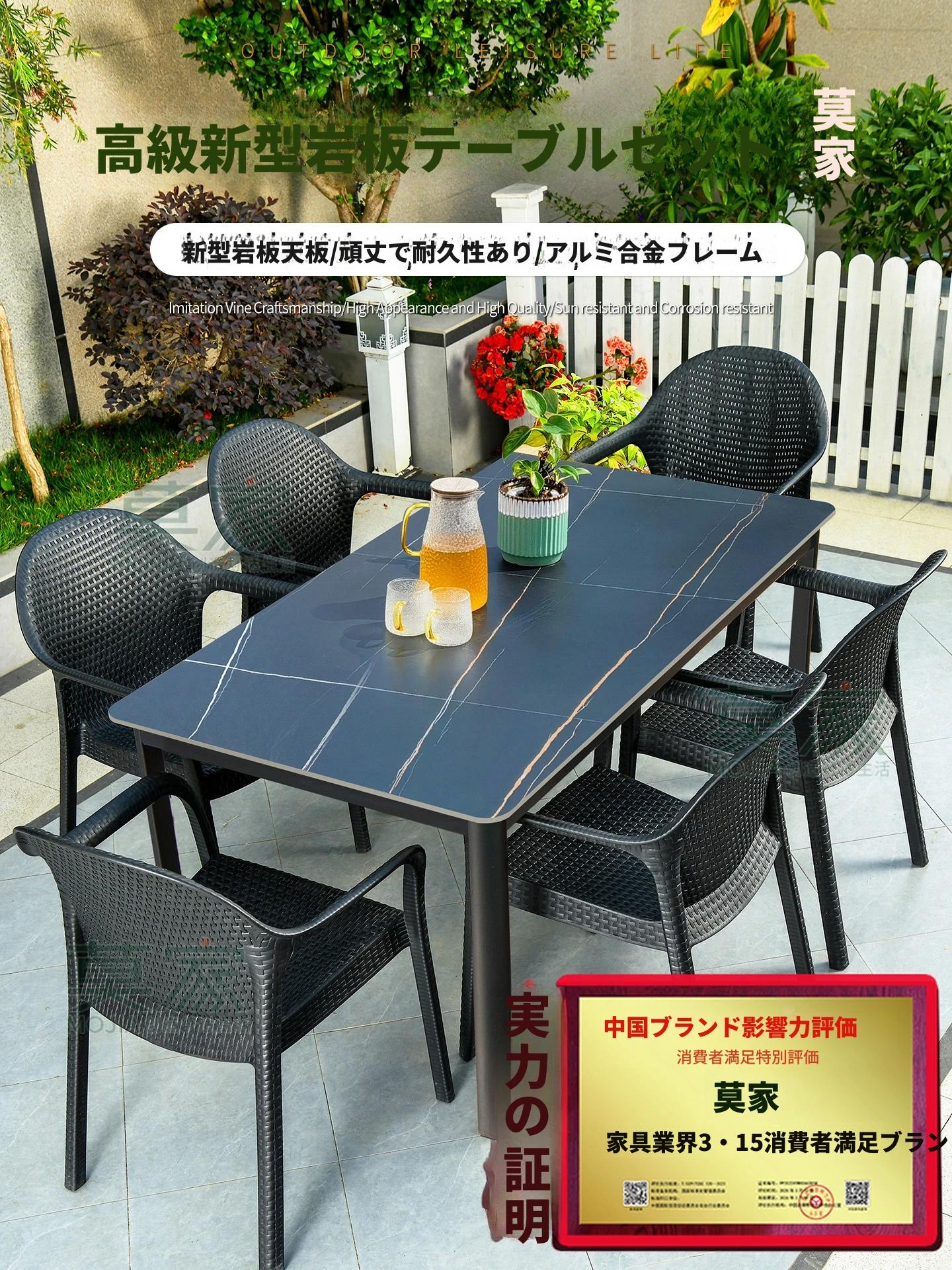 モー家アウトドアテーブル&チェアセット|庭やバルコニーに最適な防水・UVカット機能付き!リラックスしたひとときを提供する岩板デザインの屋外用ダイニングチェア。おしゃれで機能的なガーデンファニチャーで、素敵な時間を演出しましょう!