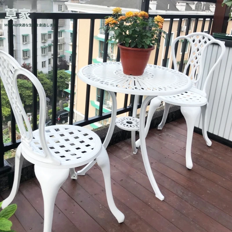 モ家のバルコニーテーブル&チェア3点セット|室内用・欧風デザインのクリエイティブな鋳鉄テーブルとチェア|リラックスできる小さなティーテーブル|アウトドアにも最適!
