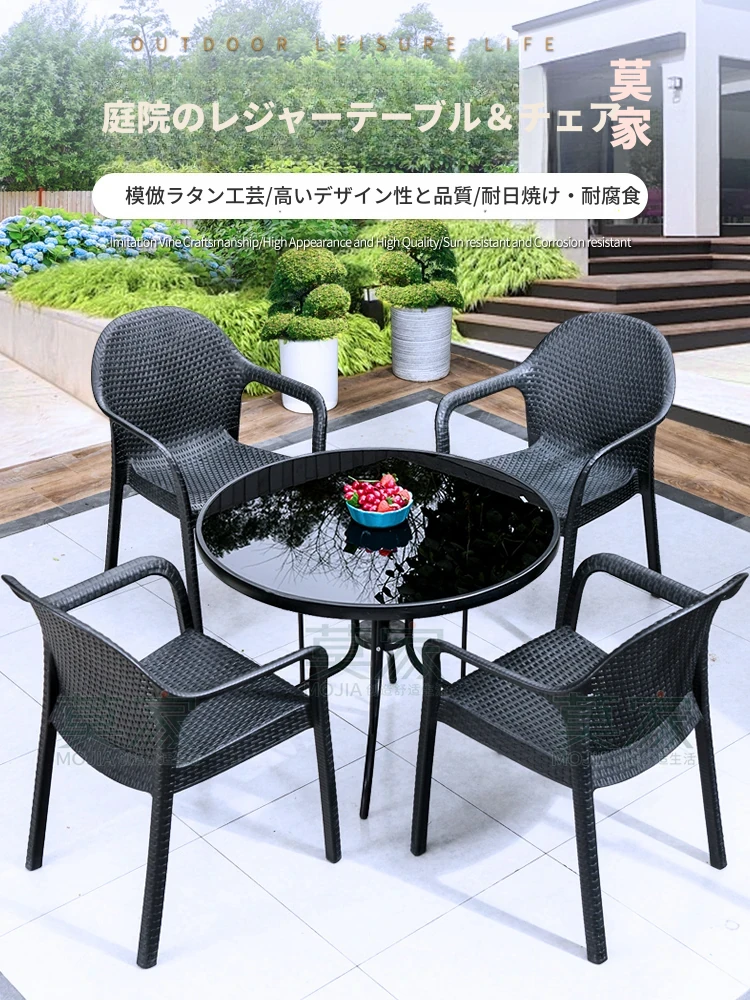 莫家アウトドアテーブルセット - 中華風ラタンチェア&ティーテーブルの屋外家具、庭やテラスにぴったりなスタイリッシュなデザイン!快適な座り心地で、リラックスしたひとときを演出します。