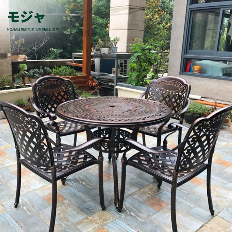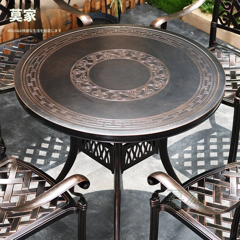 モ家アウトドアテーブル&チェアセット - ヴィラや庭、バルコニーに最適なアルミ合金製のリラックスティーセット。耐久性に優れた鋳造アルミニウムで、美しいデザインが特徴。快適な屋外ライフを楽しむための完璧なアイテム!